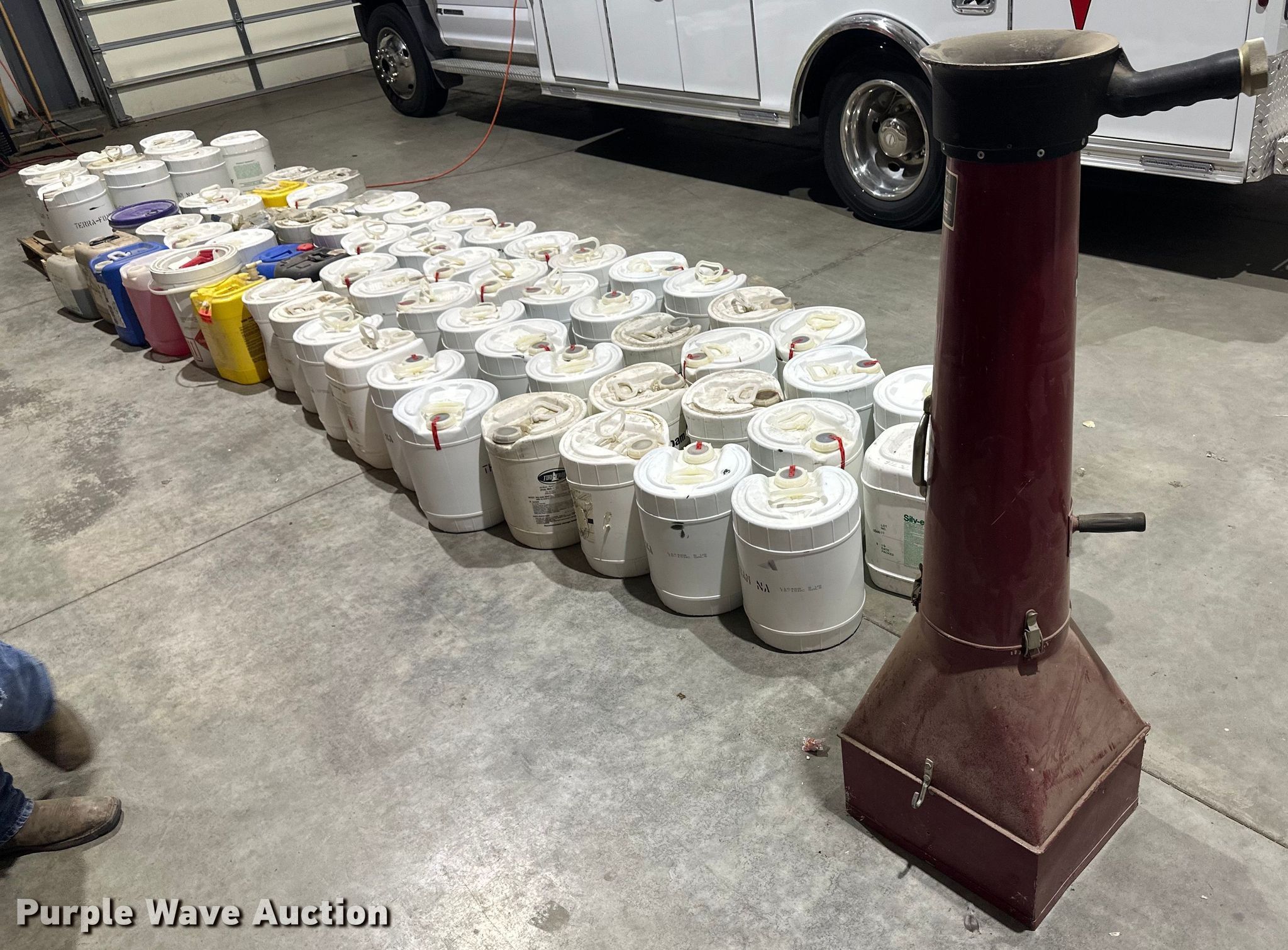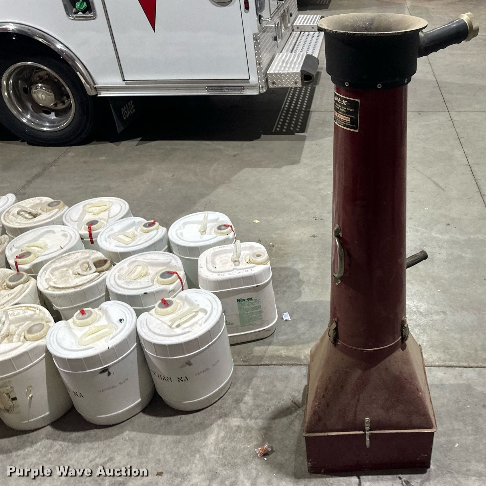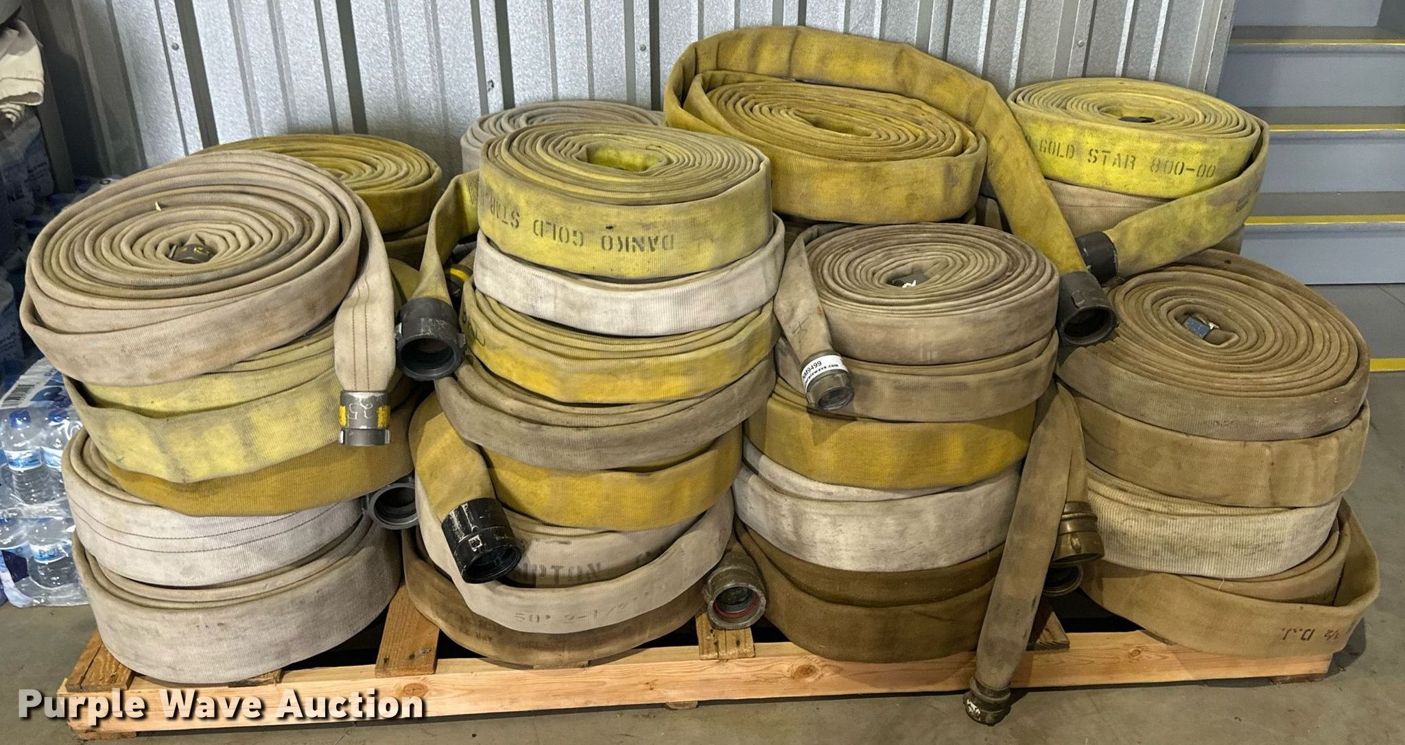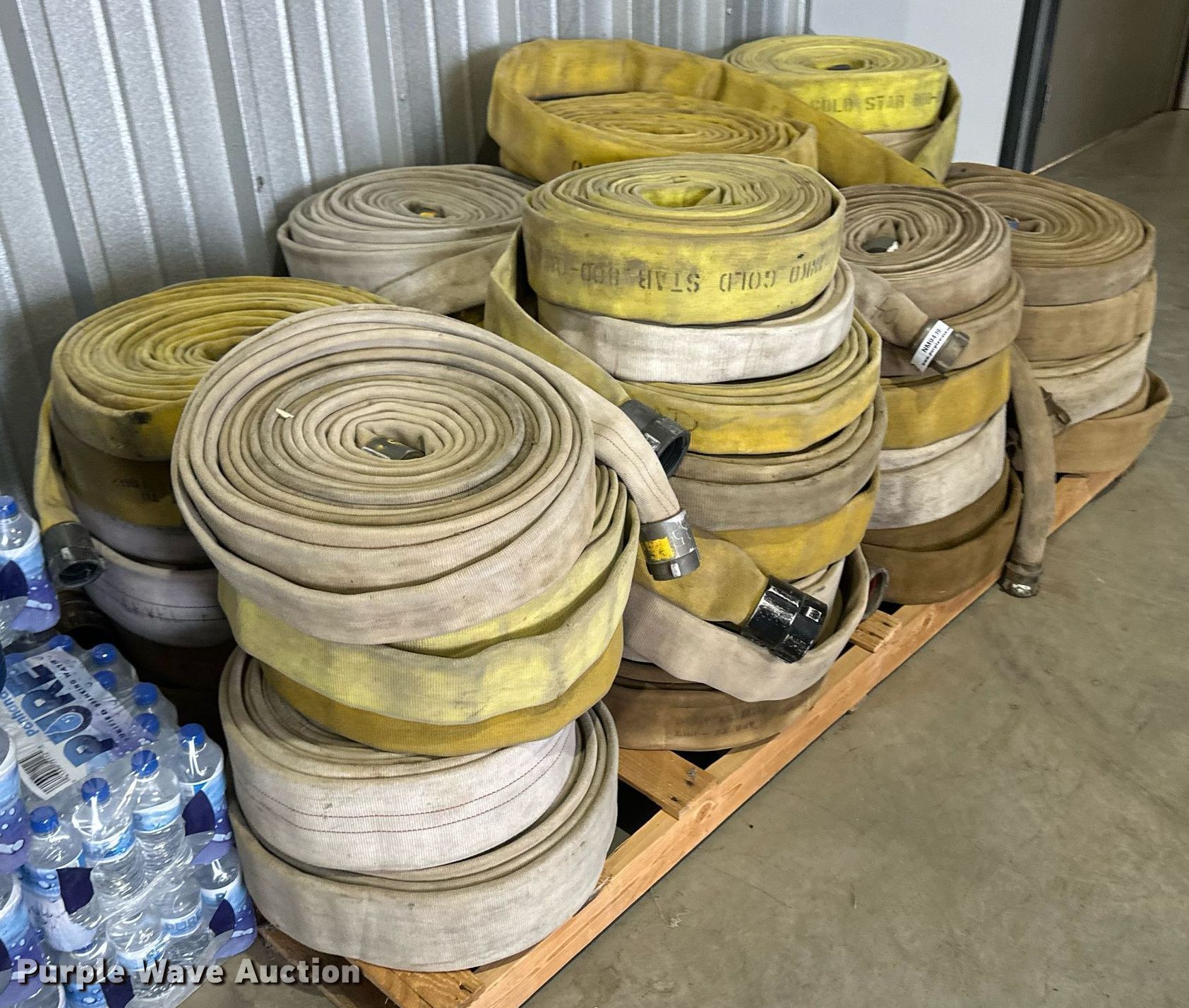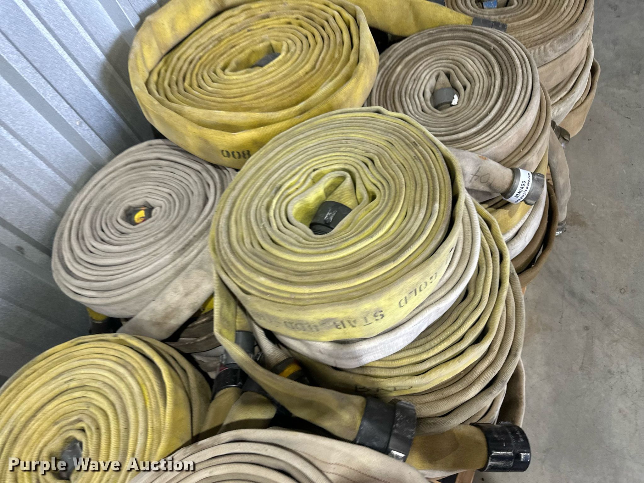 Purple Wave is selling a used Tools in Kansas. This item is a Fire fighting equipment with the following: Jet-X 1 1/2" high expansion foam nozzle, PSI: 35-250, Approx. 70 buckets expansion foam chemical, Approx. 35 fire hoses, 1 1/2" diameter, 2 1/2" diameter, 4" diameter