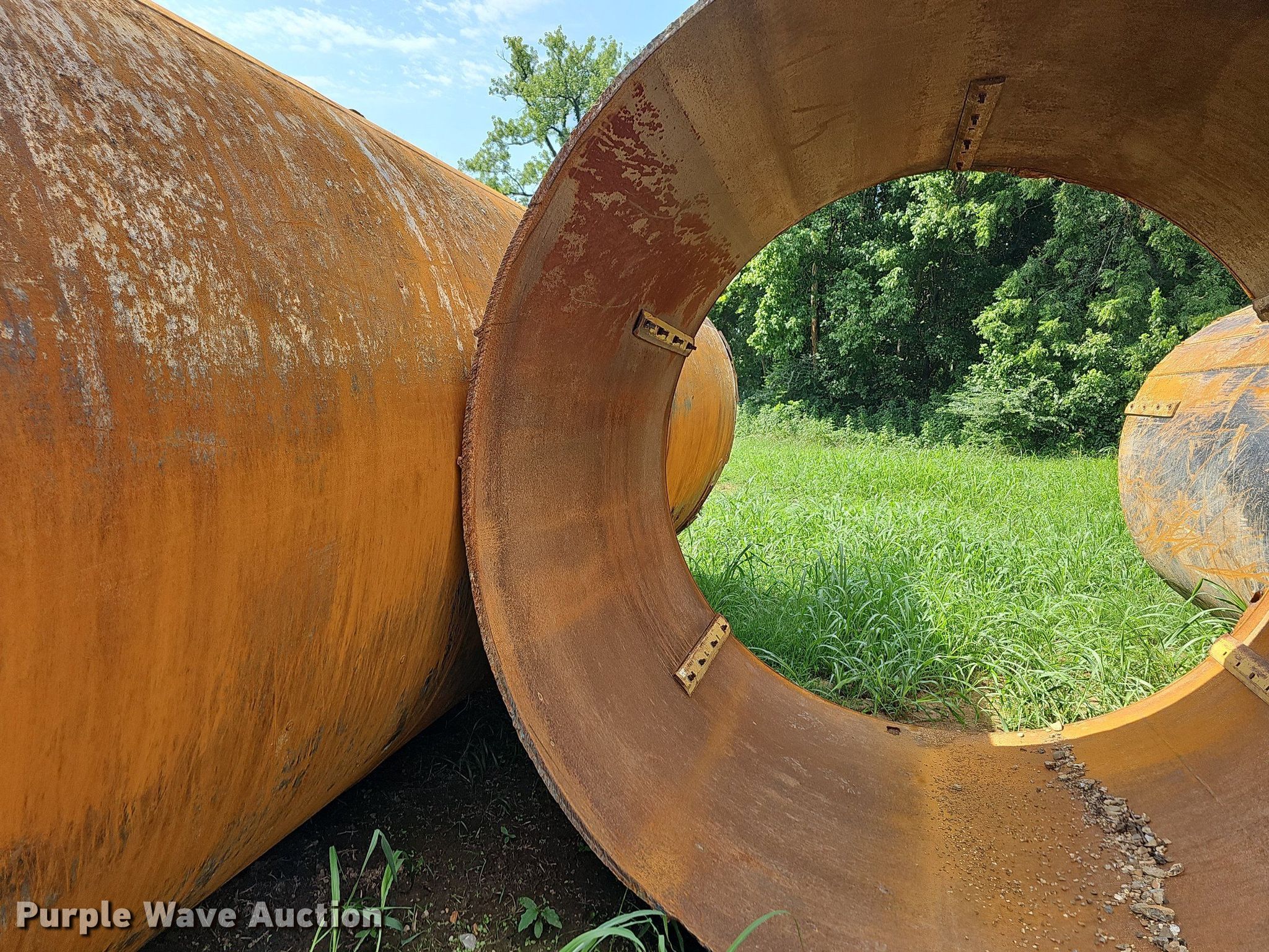Purple Wave is selling a used Pipe in Arkansas. This item is a (2) railcar tank car culverts with the following: 36' 6" L x 107" diameter, 7' 5" L x 107" diameter