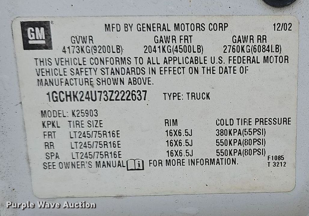 Purple Wave is selling a used 3/4 or 1 Ton Pickup or Van in Missouri. This item is a 2003 Chevrolet Silverado 2500HD pickup truck with the following: Miles: 189,191 on odometer, VIN: 1GCHK24U73Z222637