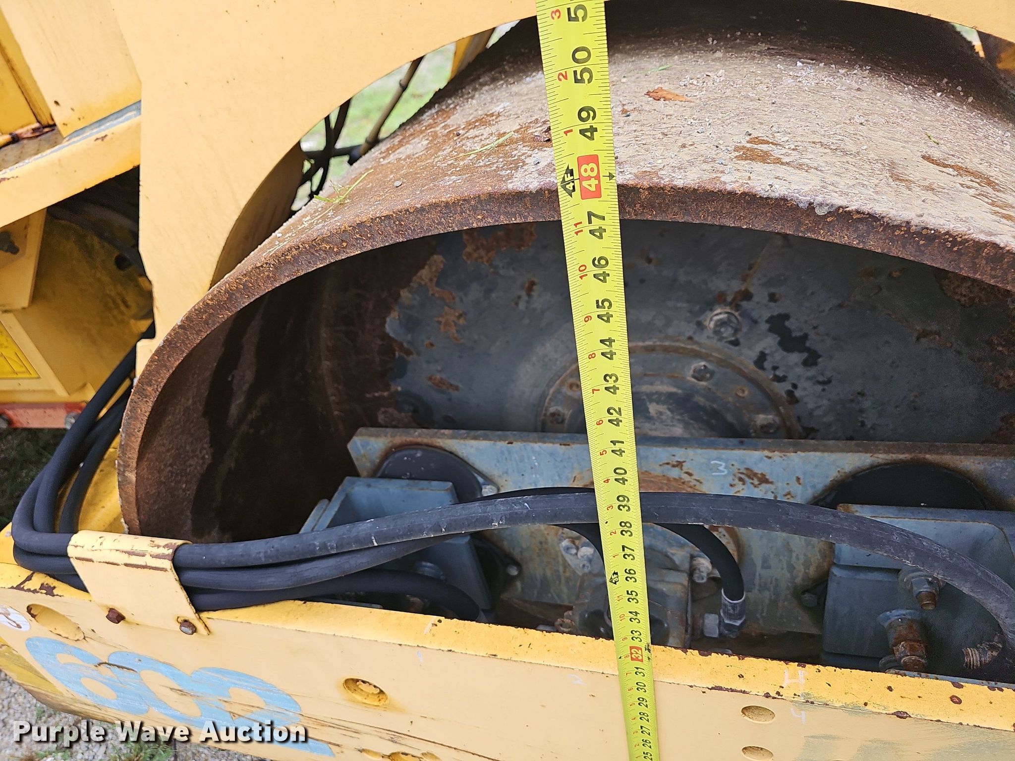 1996 Vibromax W602d single drum roller. Hours: 2,480 on meter, Serial: JKC8409700. Engine Cummins , Cylinders: 4, Fuel type: Diesel. Transmission Hydrostatic. Operators station OROPS. Features Drum: Smooth, Vibratory system: Single, Two speed, Front drum Width: 68", Diameter: 48", Drum scrapers: Front, Rear, Water spray applicator: Front. Tires Size: 13.6-38. Taney County, MO. 20058 Us Hwy 160. Kisse Mills, MO 65680
