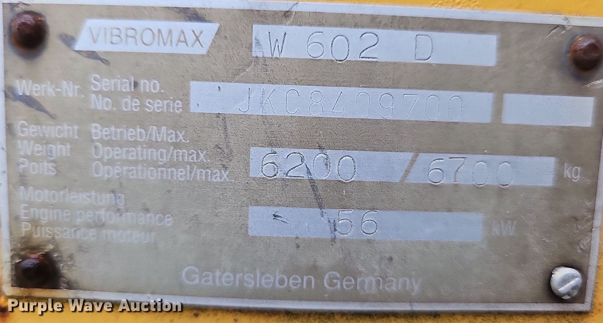 Purple Wave is selling a used Single Drum Roller Compactor in Missouri. This item is a 1996 Vibromax W602d single drum roller with the following: Hours: 2,480 on meter, Serial: JKC8409700