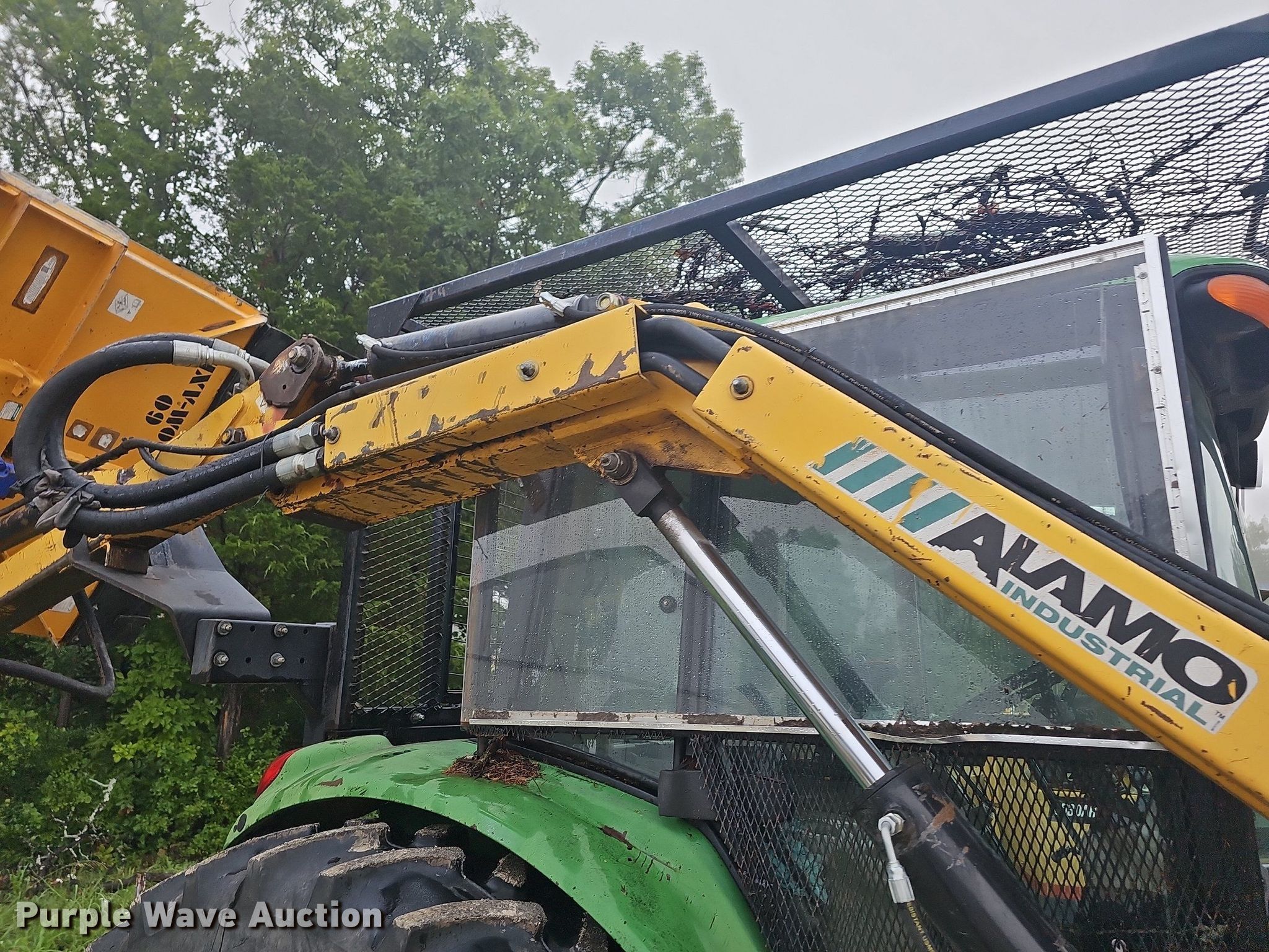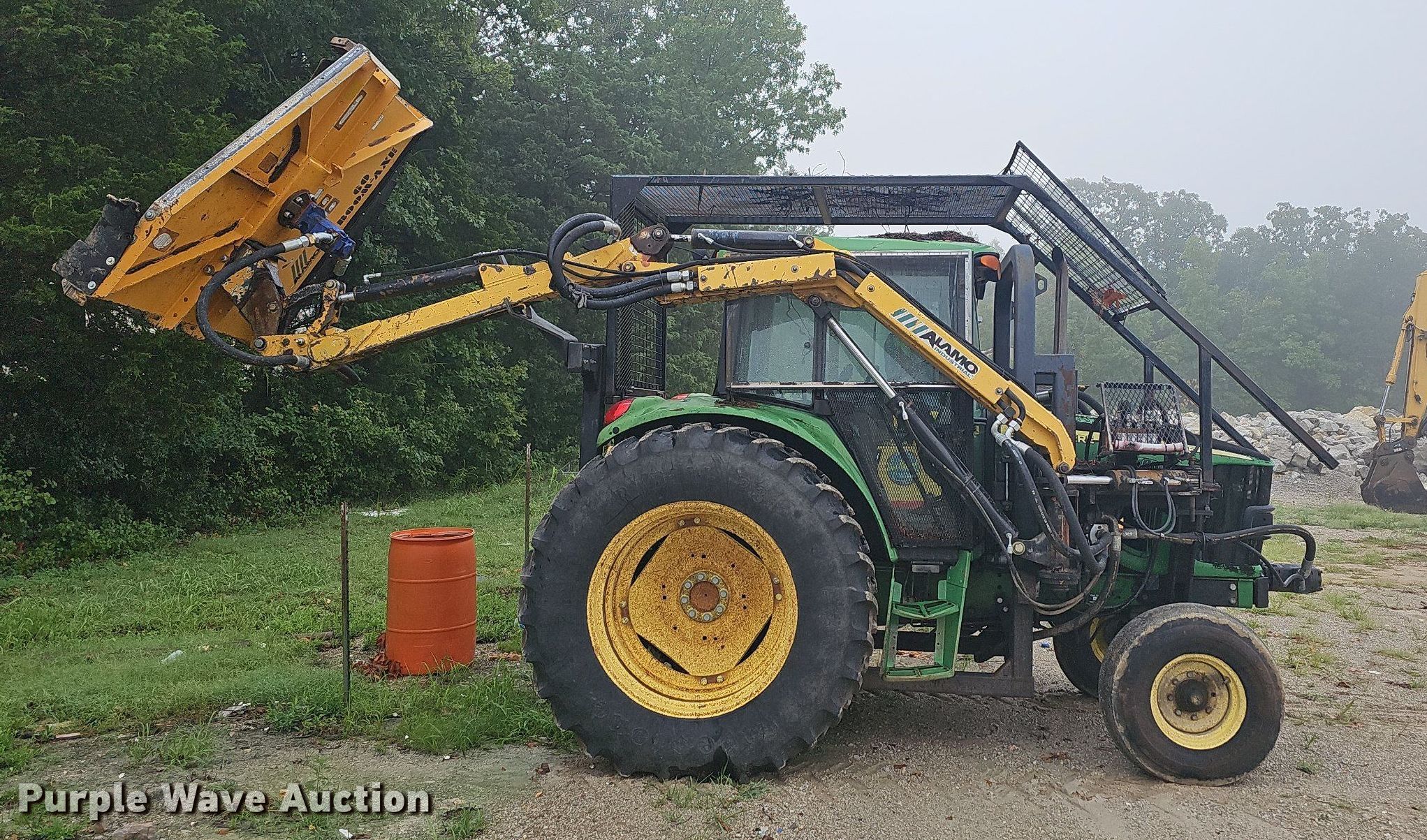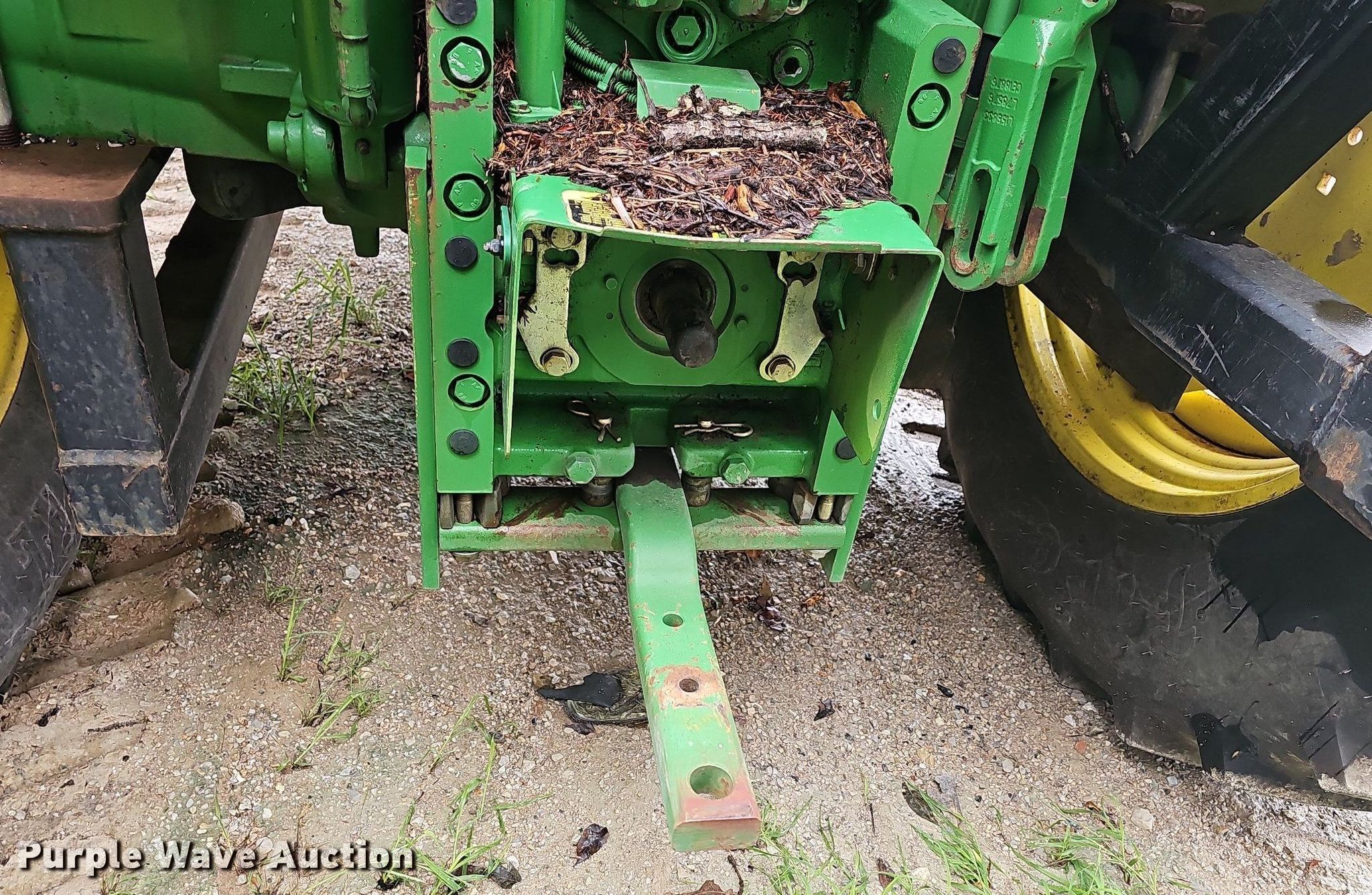2006 John Deere 6415 tractor. Hours: Unknown, Serial: L06415A477198. Engine John Deere, Cylinders: 4, Fuel type: Diesel. Transmission Synchro, 12F - 4R, Differential lock. Operators station AC, Heat. Features PTO: 540, Three point, Seven pin outlet, Hydraulic remote sets Rear: 1, Alamo side mount rotary Mower Width: 5'. Tires Front: 10.00-16, Rear: 18.4-38, Wheel weights: 1. Taney County, MO. 20058 Us Hwy 160. Kisse Mills, MO 65680