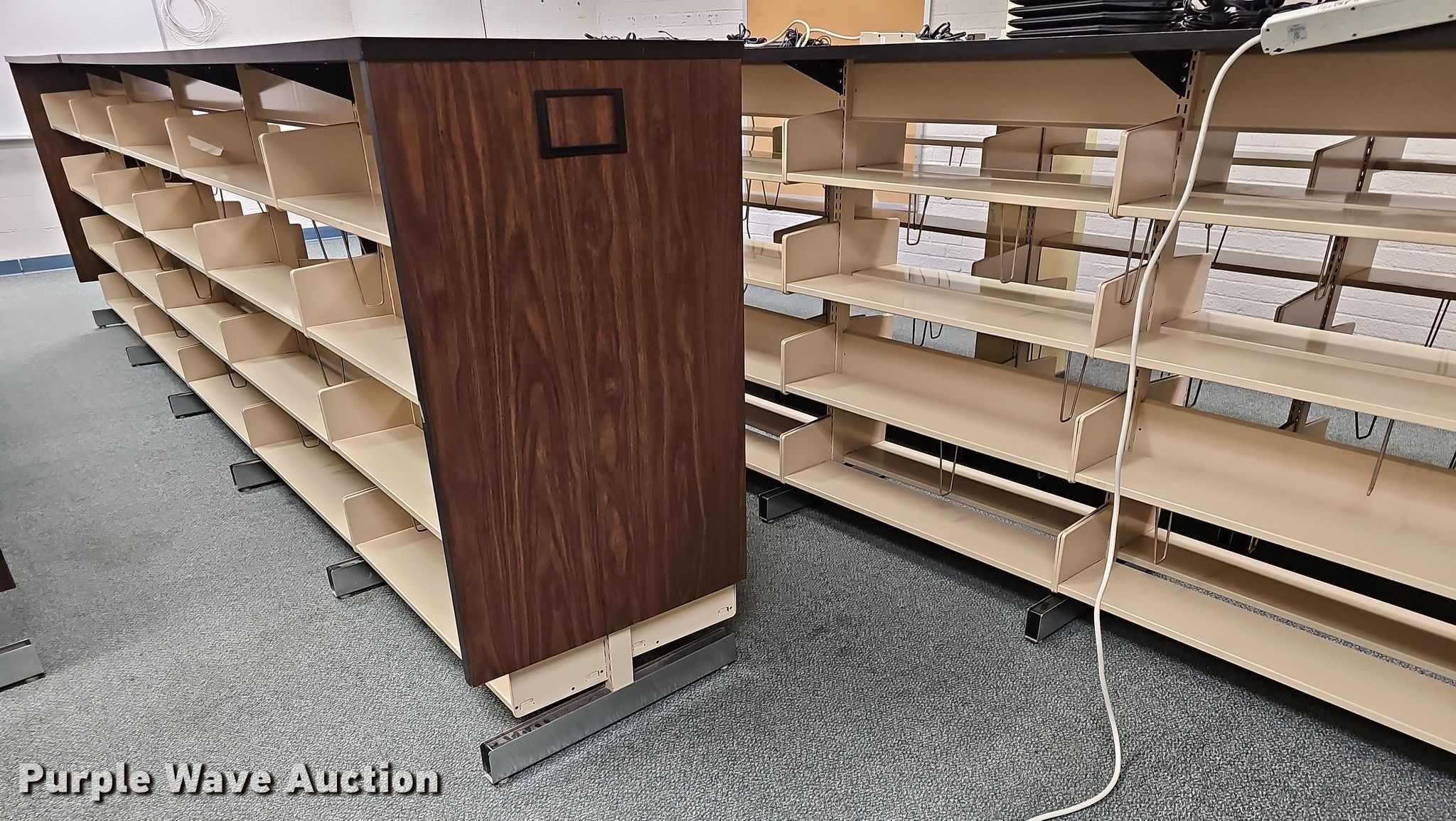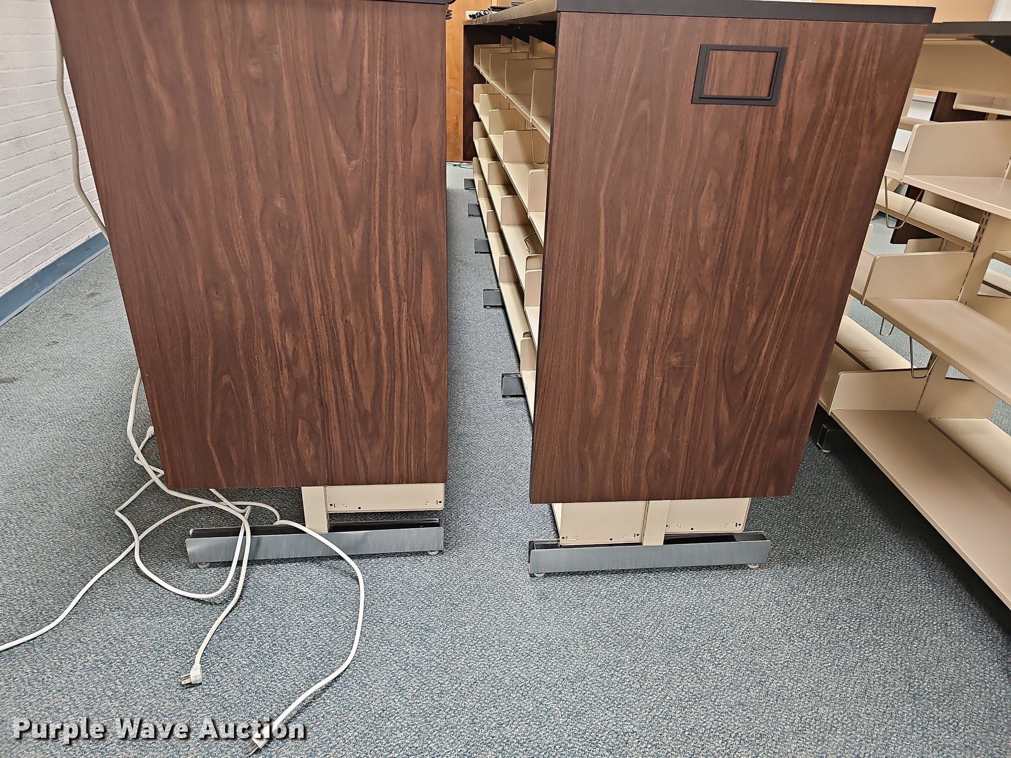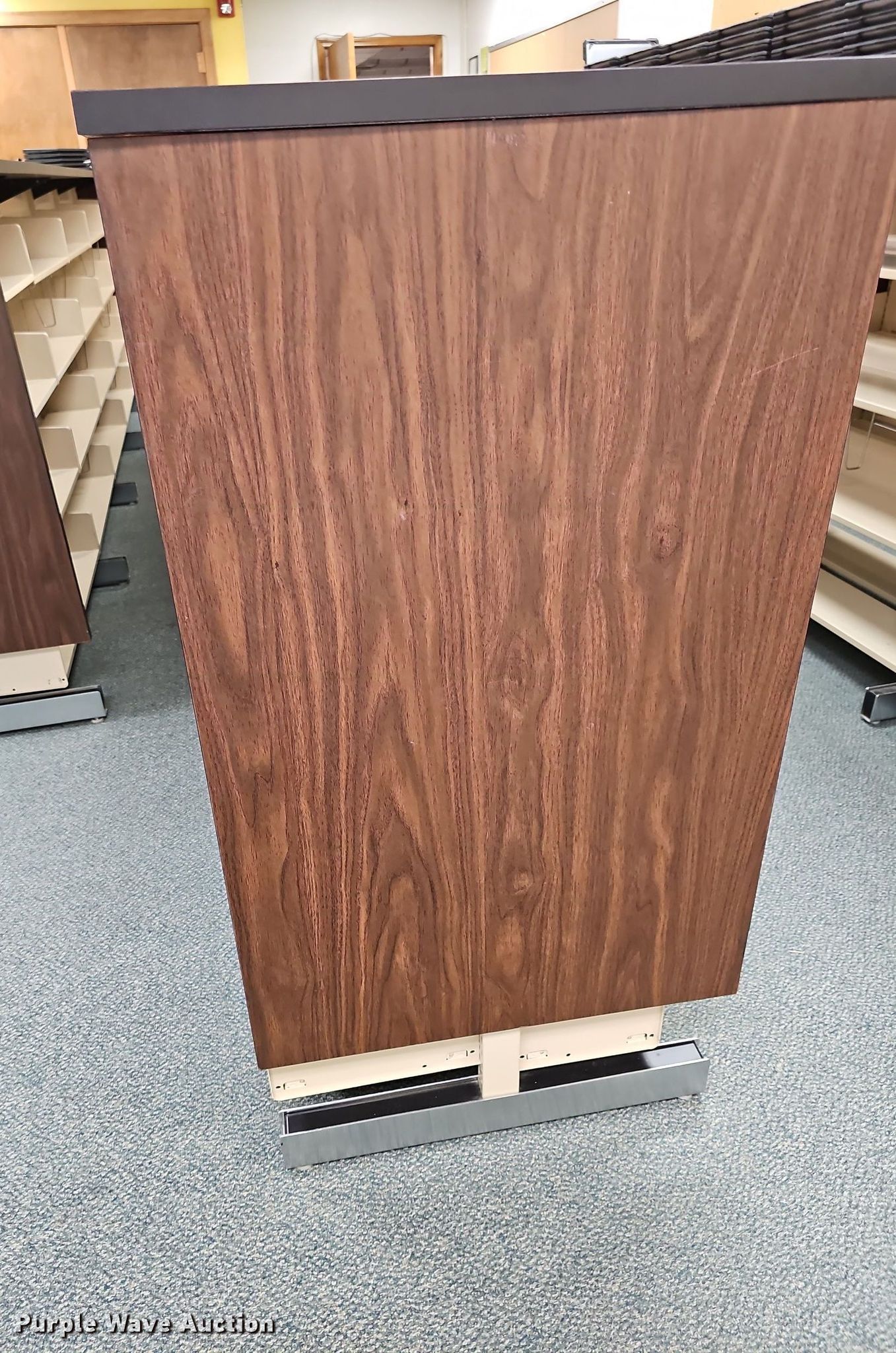 Purple Wave is selling a used Furniture in Kansas. This item is a (3) library bookshelves with the following: 15'3" x 26" x 49.5", Laptops not included