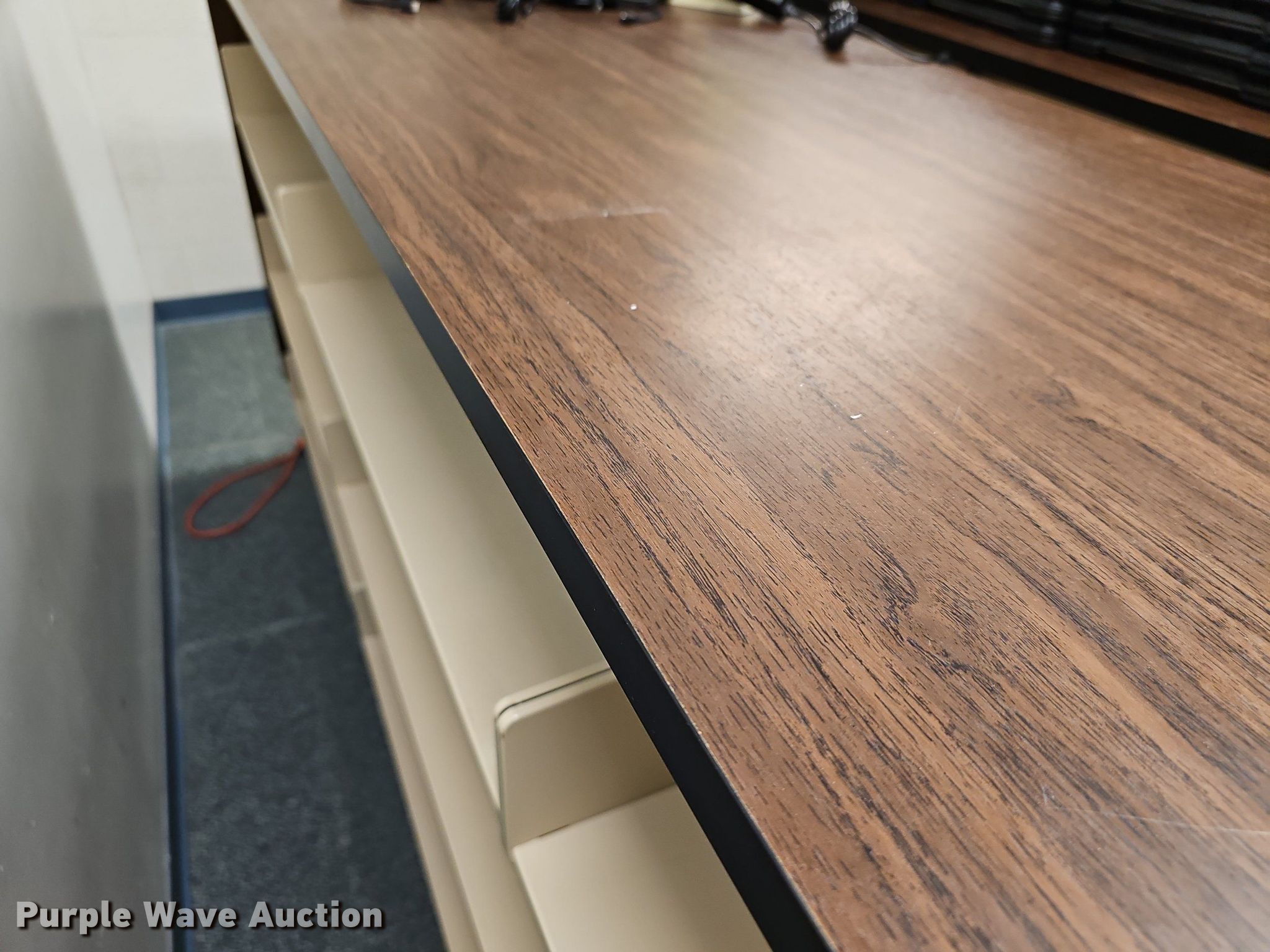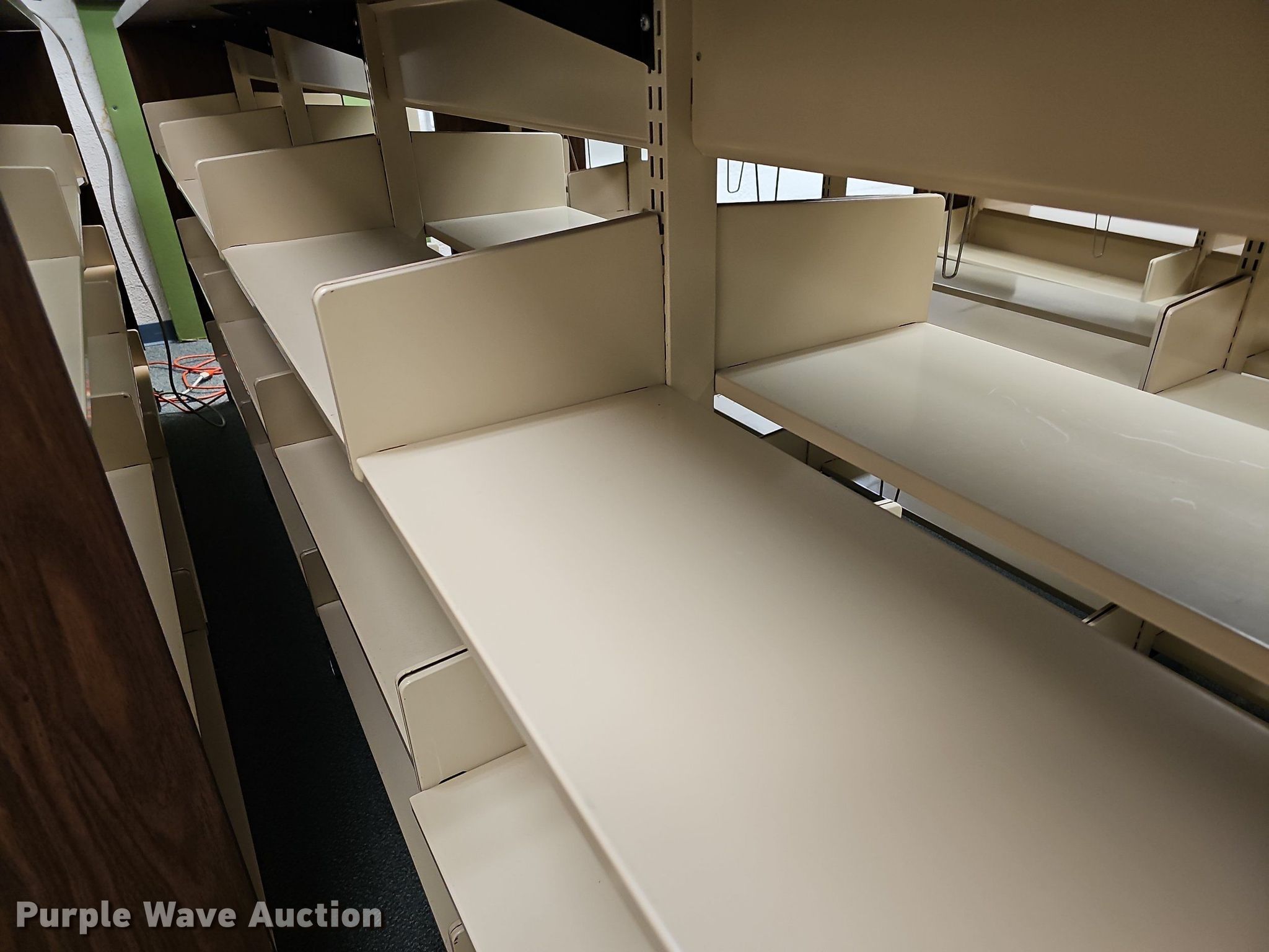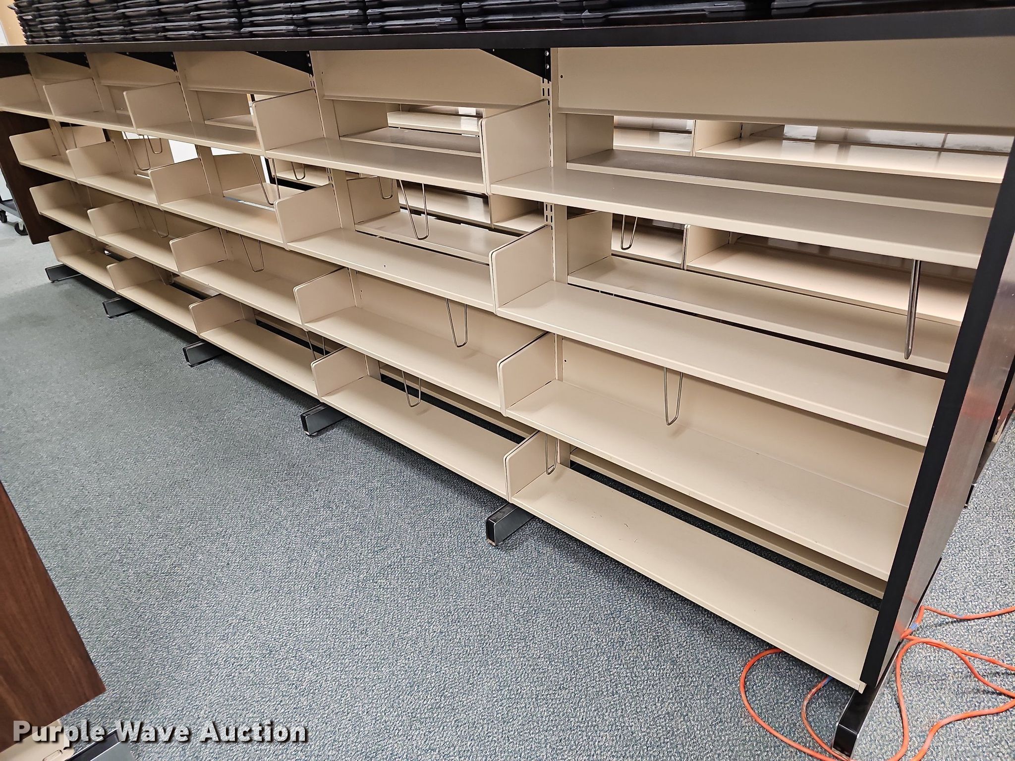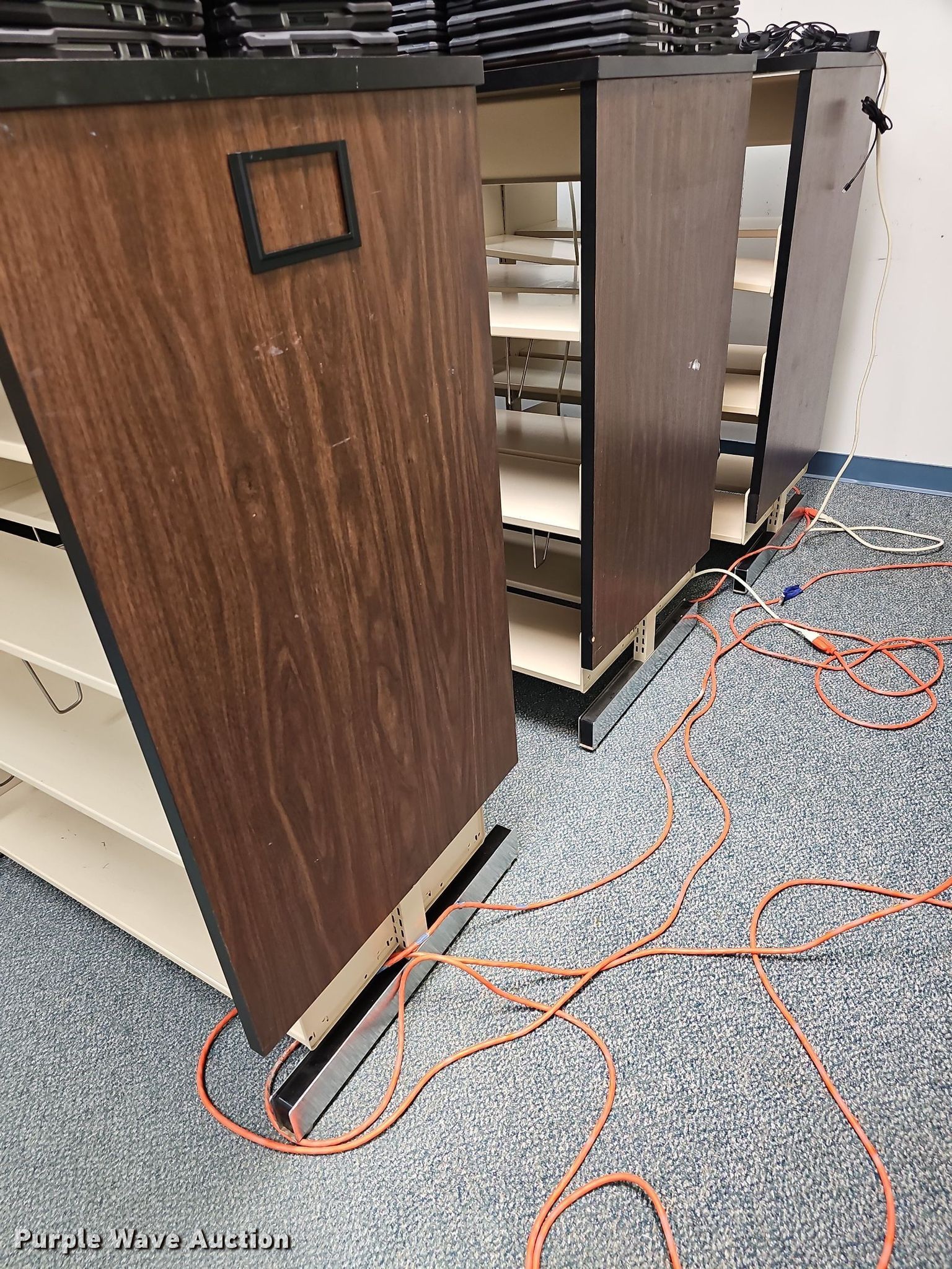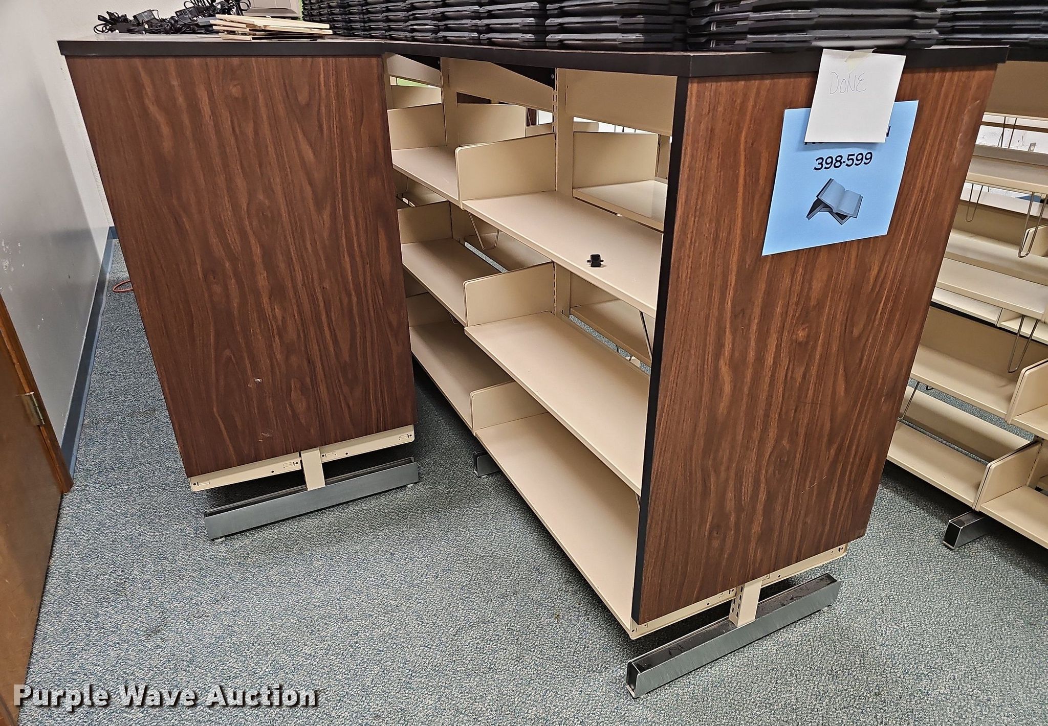 Purple Wave is selling a used Furniture in Kansas. This item is a (3) library bookshelves with the following: 15'3" x 26" x 49.5", 12'3" x 26" x 49.5", 9'6" x 26" x 49.5", Laptops not included