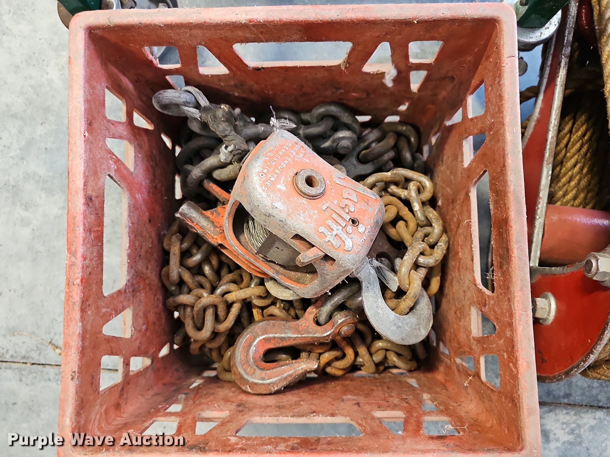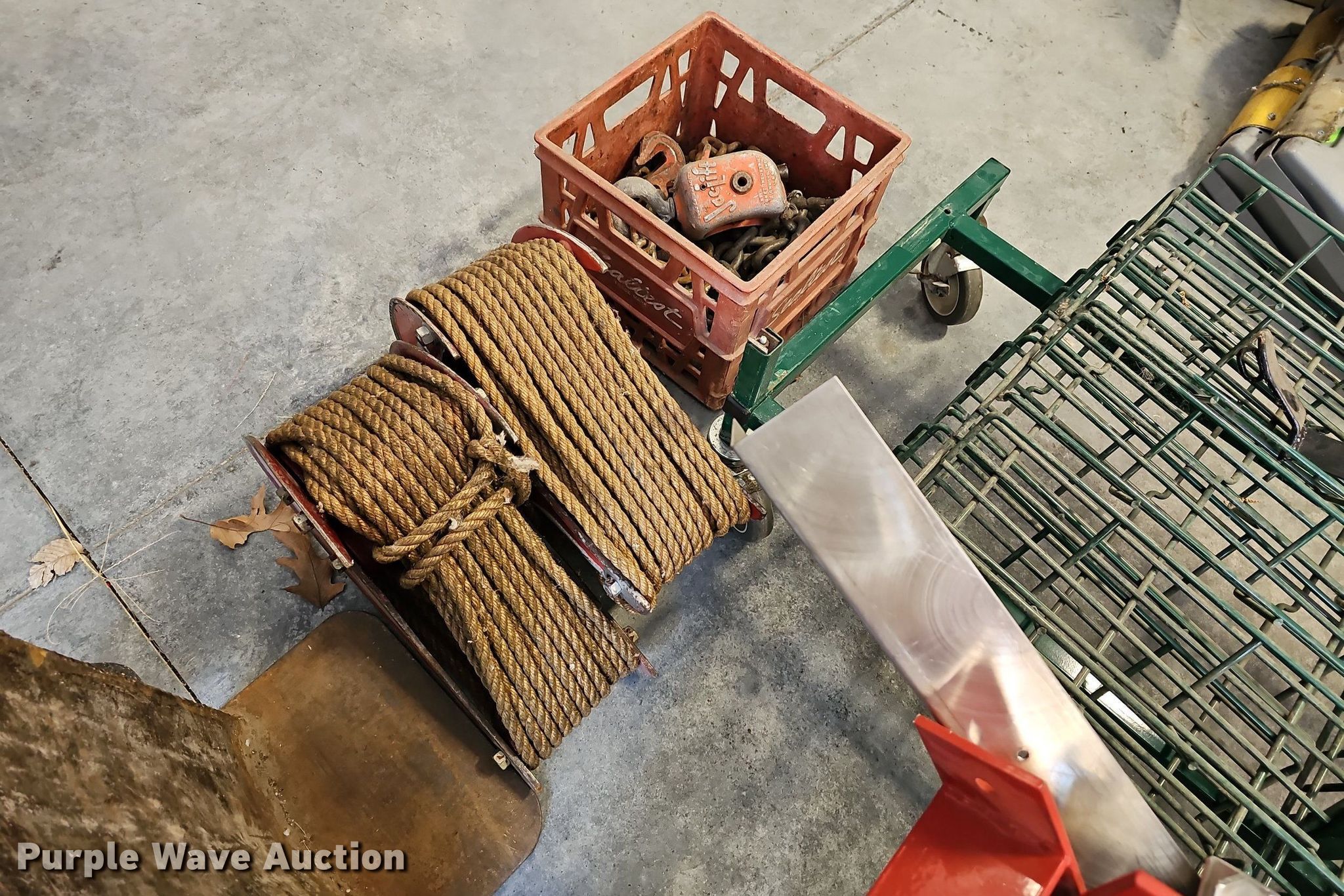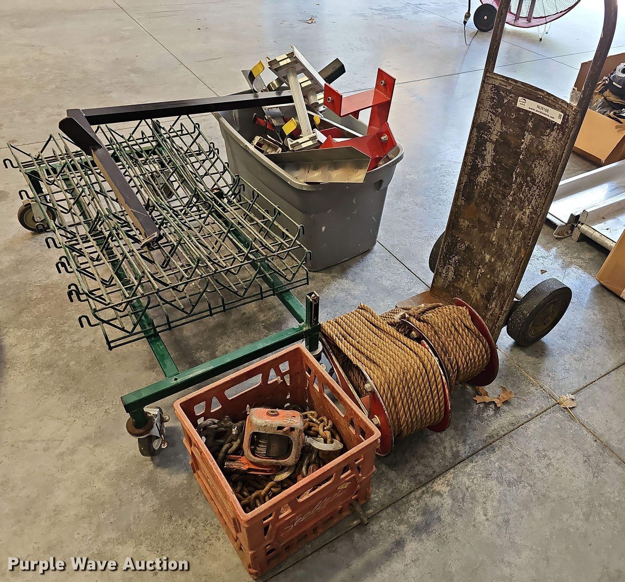 Purple Wave is selling a used Tools in Kansas. This item is a Tools with the following: Two wheel dolly, (2) rope winches, Jac-Lift winch, Mounting brackets, Storage cages