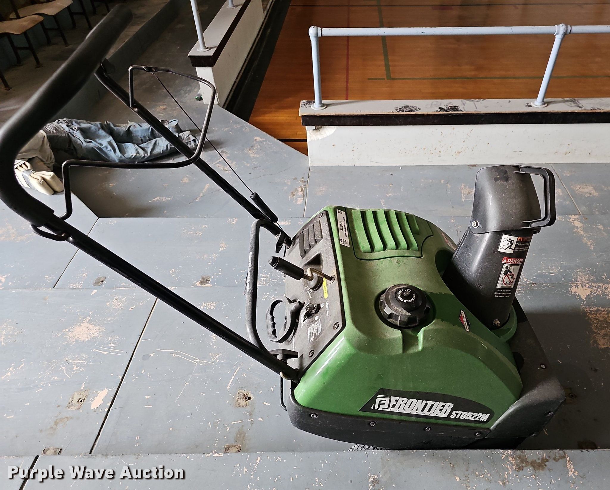 Purple Wave is selling a used Lawn and Garden in Kansas. This item is a 2007 Frontier ST0622M snow blower with the following: Briggs & Stratton gas engine, 22"W, Serial: MMST0522M700495