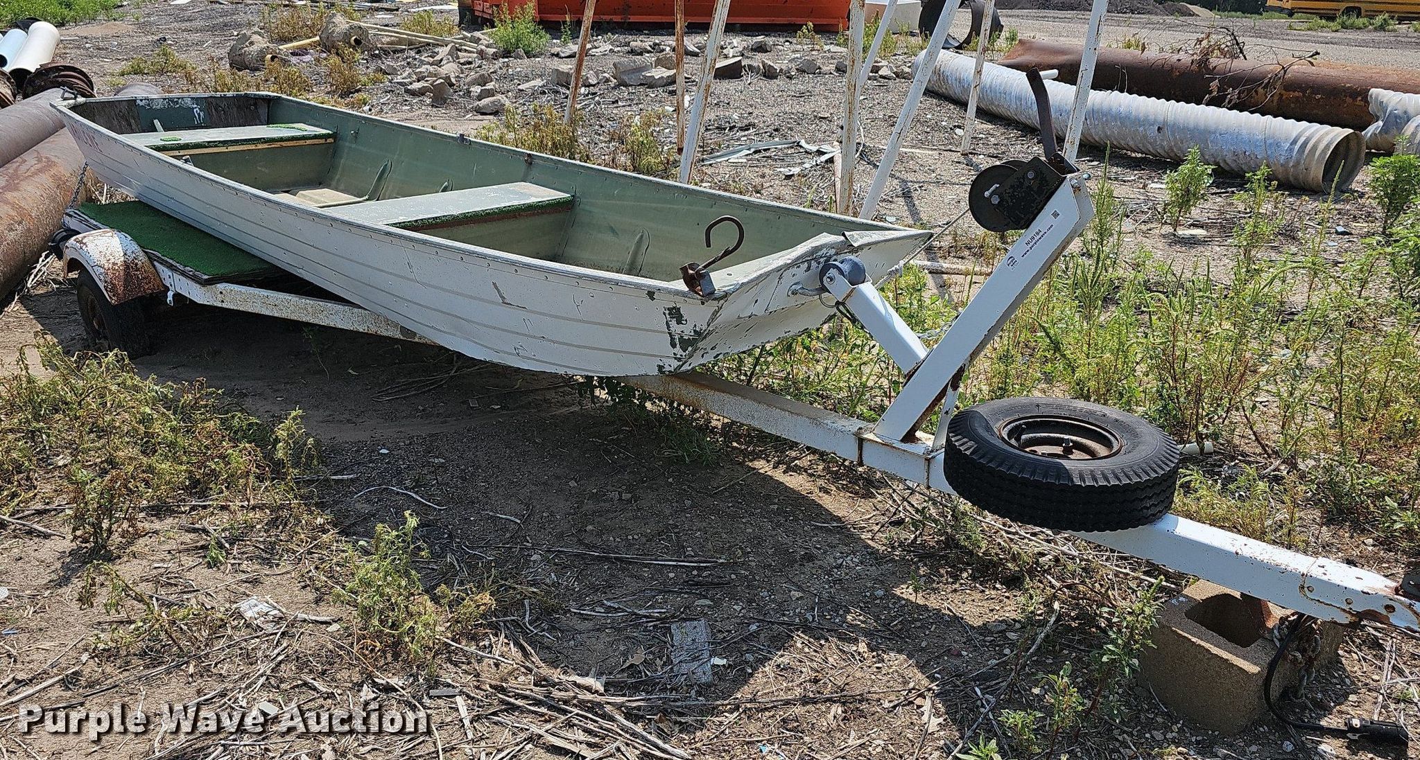 Ward jon boat. Length: 14', Hull ID: W51328. Trailer Overall length: 17', Ball hitch size: 1 7/8". Notes Flat tires, Tire off wheel. Transfer of ownership documentation will be a bill of sale. City of Abilene Parks & Recreation. Abilene, KS 67410