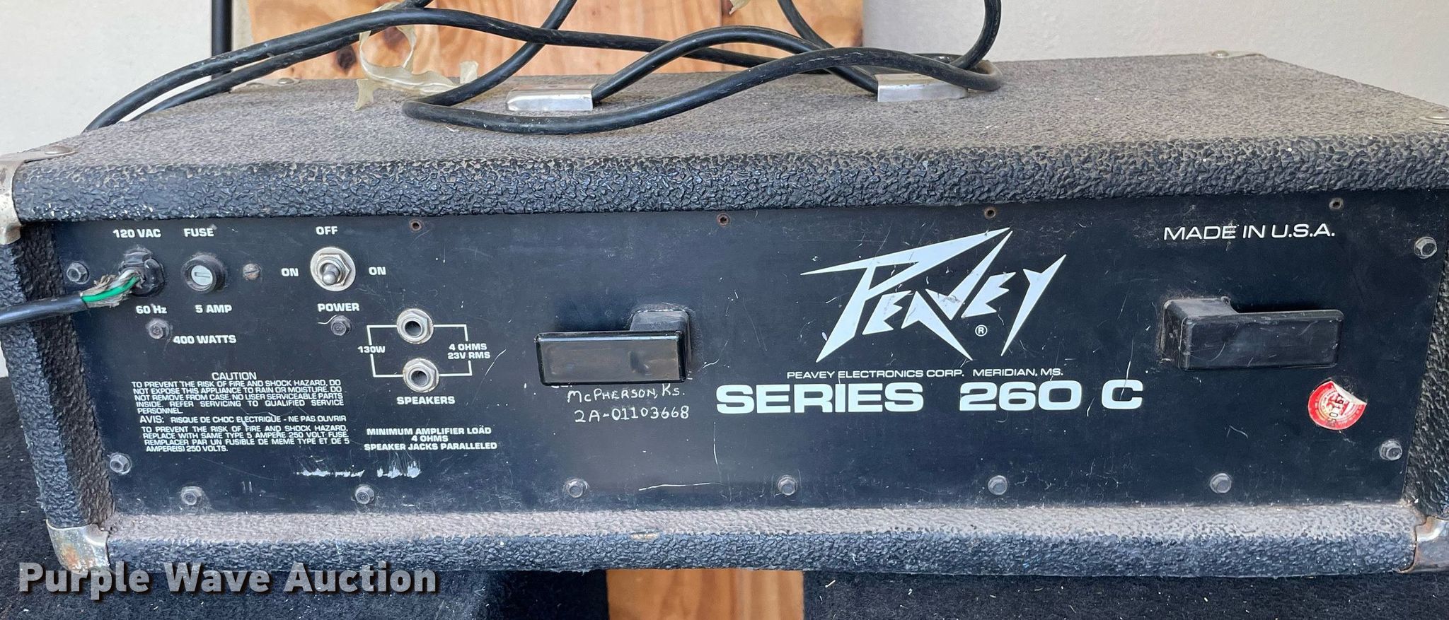 Purple Wave is selling a used Electronics in Kansas. This item is a Audio equipment with the following: (2) Peavy SP 2XT speakers, Peavey 260 Series monitor