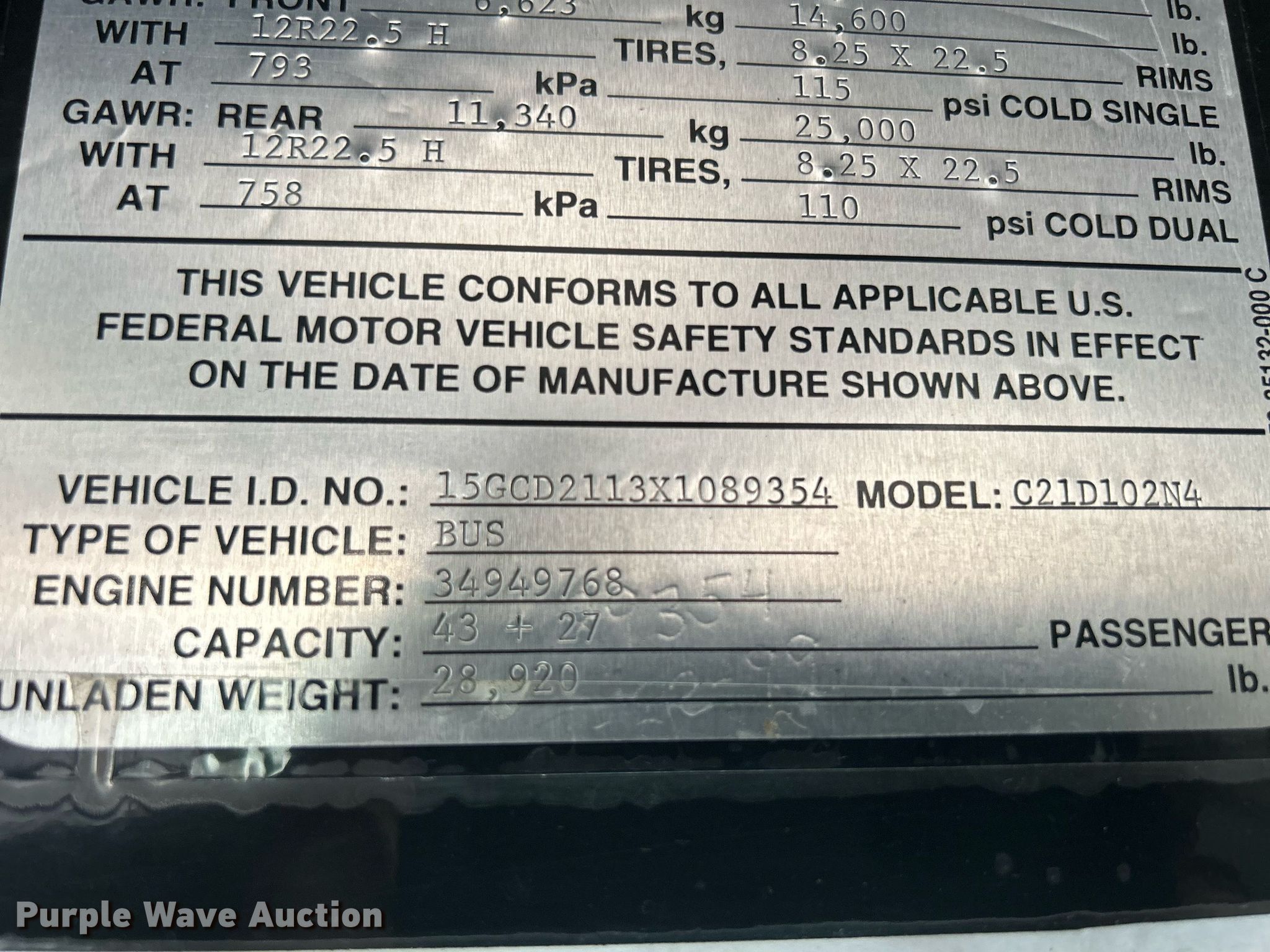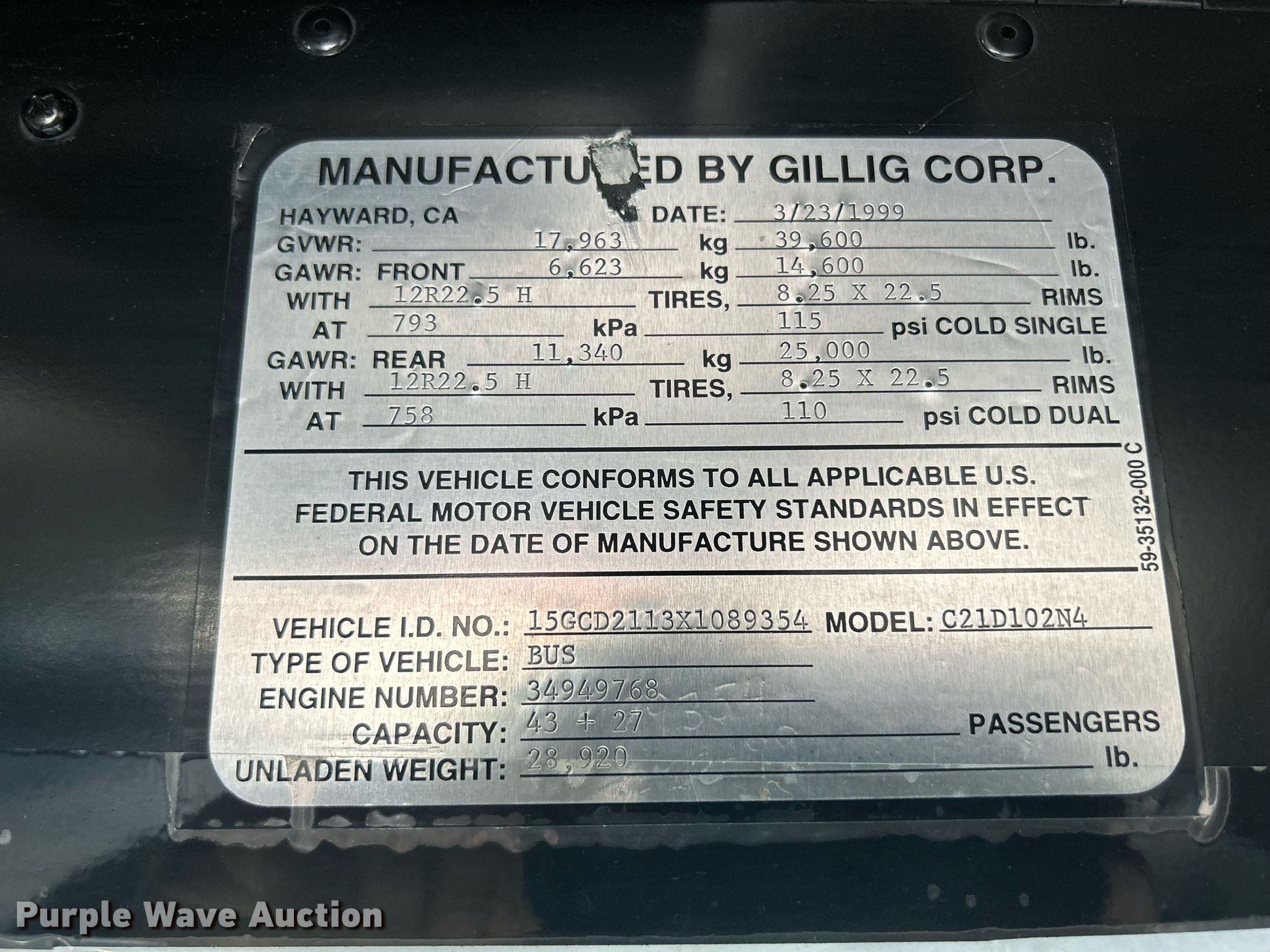 Purple Wave is selling a used Bus in Iowa. This item is a 1999 Gillig C12D102N4 bus with the following: Miles: Unknown, VIN: 15GCD2113X1089354