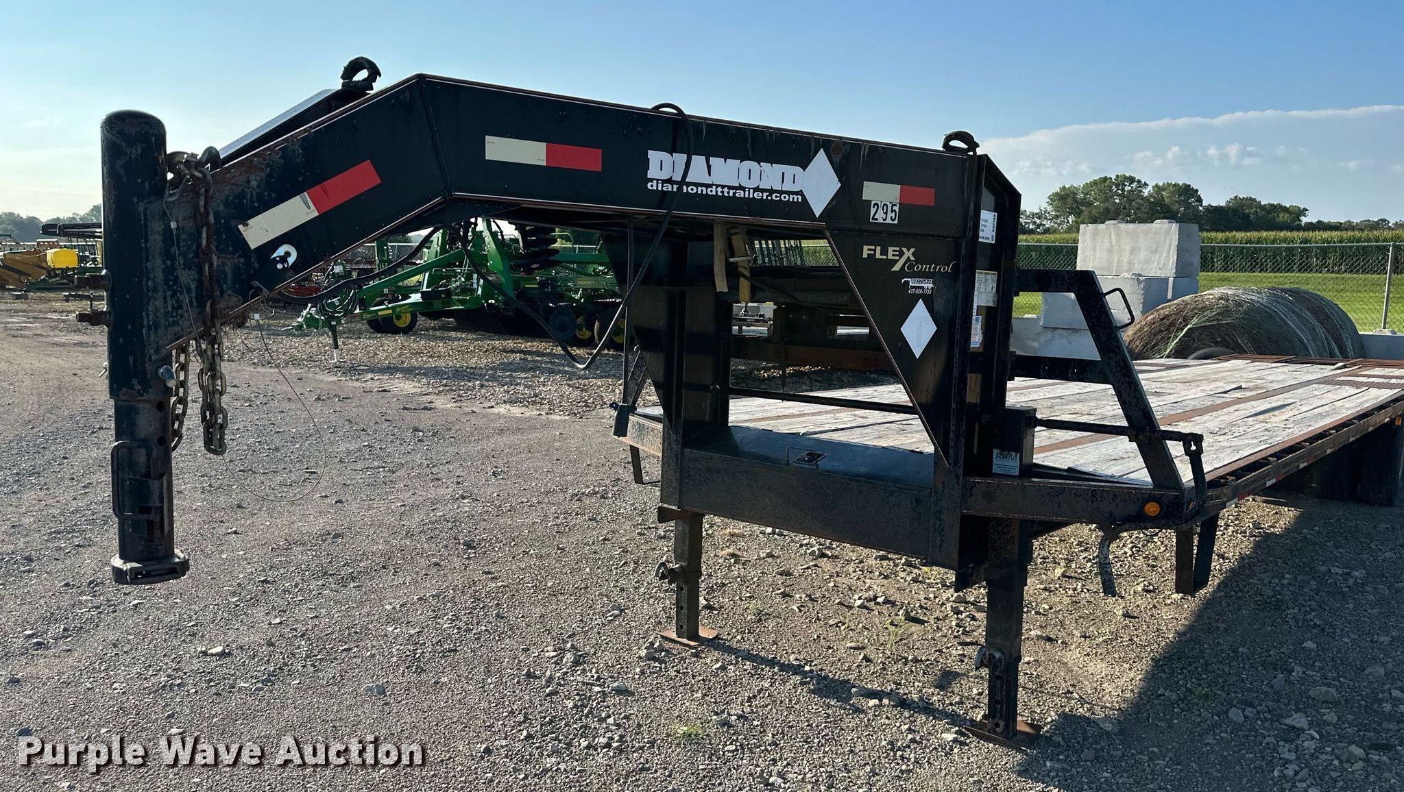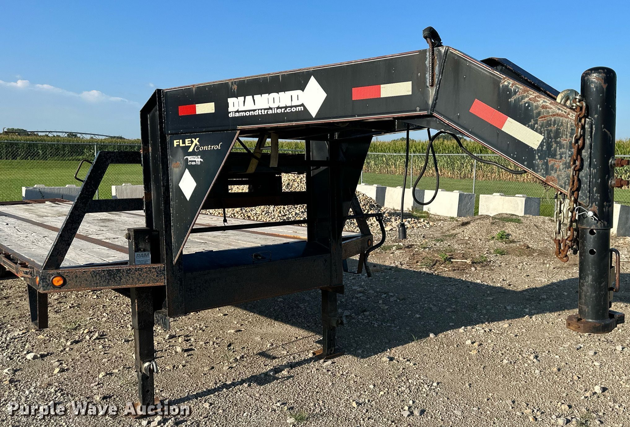 2013 Diamond T equipment trailer. VIN: 5FWFP3229DR015709. Dimensions Overall: 39' L x 102" W, Deck: 27' L x 102" W, Tail length: 5', Ramps: Manual Length: 5'. Features Deck type: Wood. Chassis Hitch: Gooseneck, Ball hitch: 2 5/16", Landing gear: Dual, Suspension: Spring, Brakes: Electric, Axles: Tandem, GAWR: 10,000 lbs. Tires Steel wheels, Size: 235/85R16. Missouri title. Title distribution may be delayed up to 30 days from verification of funds. Heritage Tractor. 2701 US-24. Topeka, KS 66618