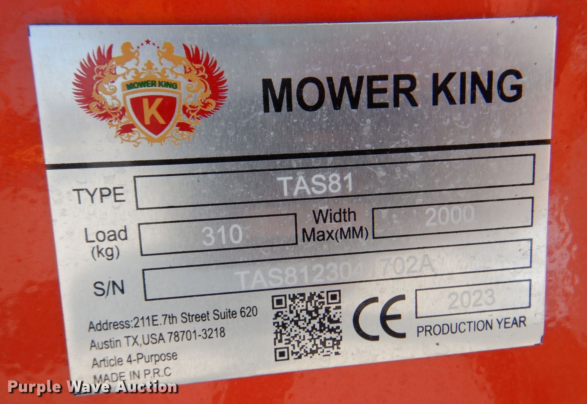Purple Wave is selling a used Ag Equip. Other in Nebraska. This item is a 2023 Mower King TAS81 tiller with the following: Serial: TAS8123041702A, Width: 72", PTO: 540, Hitch: Three point, Unused