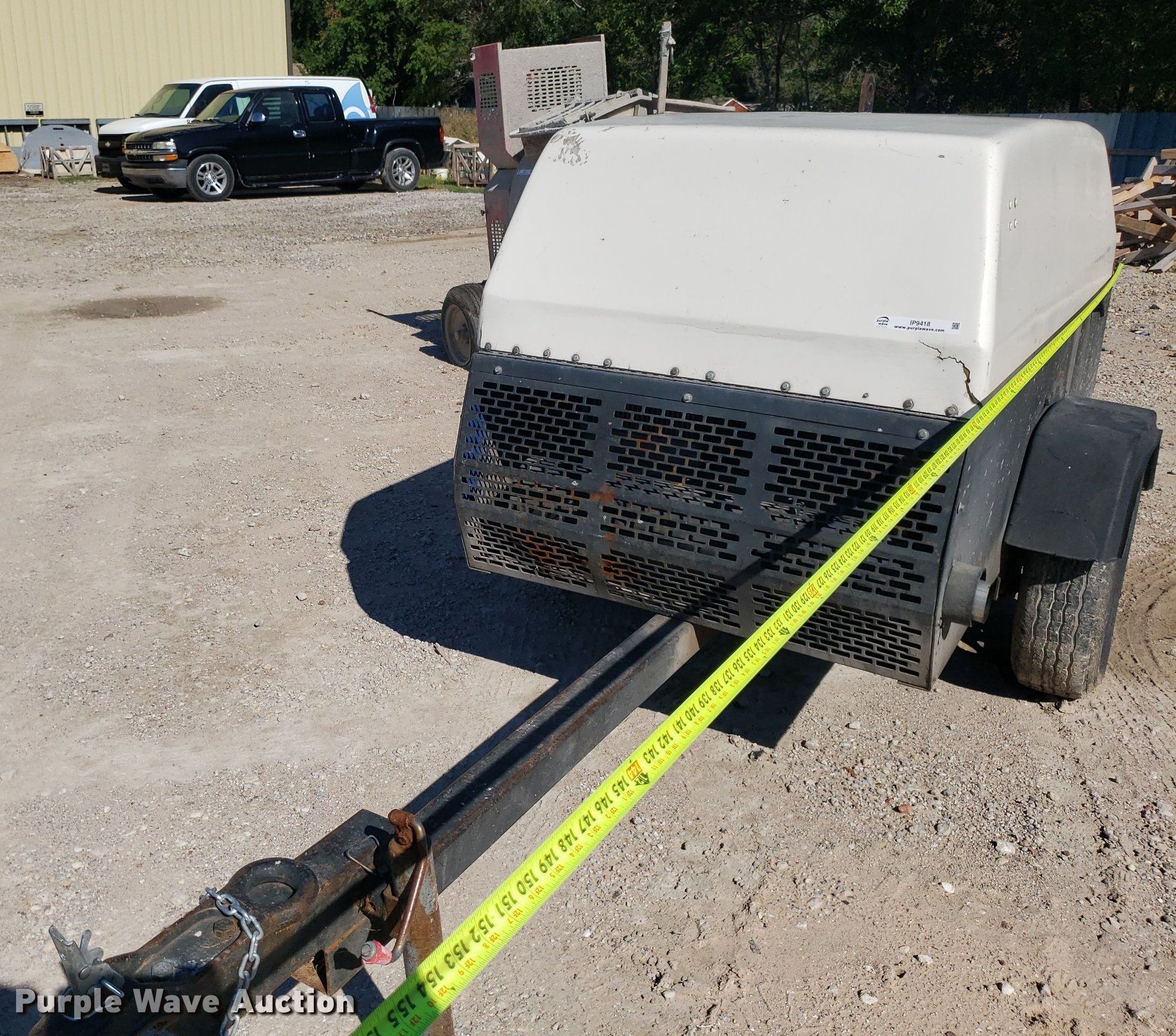 Grimmer Schmidt air compressor. Hours: 2,987 on meter. Engine Cummins B3.3, Serial: 68029556, Cylinders: 4, Fuel type: Diesel, HP: 65. Features Air compressor CFM: 2,300, PSI: 185. Trailer 13' L x 43" W, Ball hitch size: 2", Suspension: Spring, Axles: Single, Tire size: 205/75R15. This is worksite support equipment and will not come with a title. Transfer of ownership documentation will be a bill of sale. Goode Pool and Spa. 4320 West Central Avenue. Wichita, KS 67212