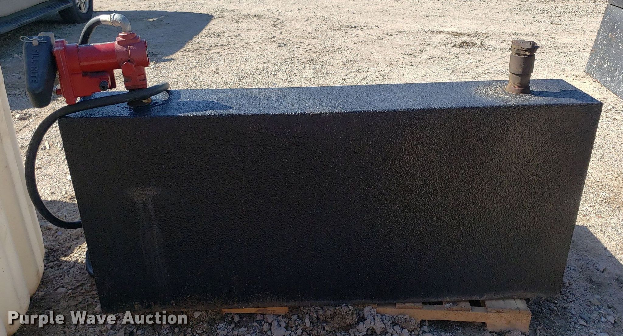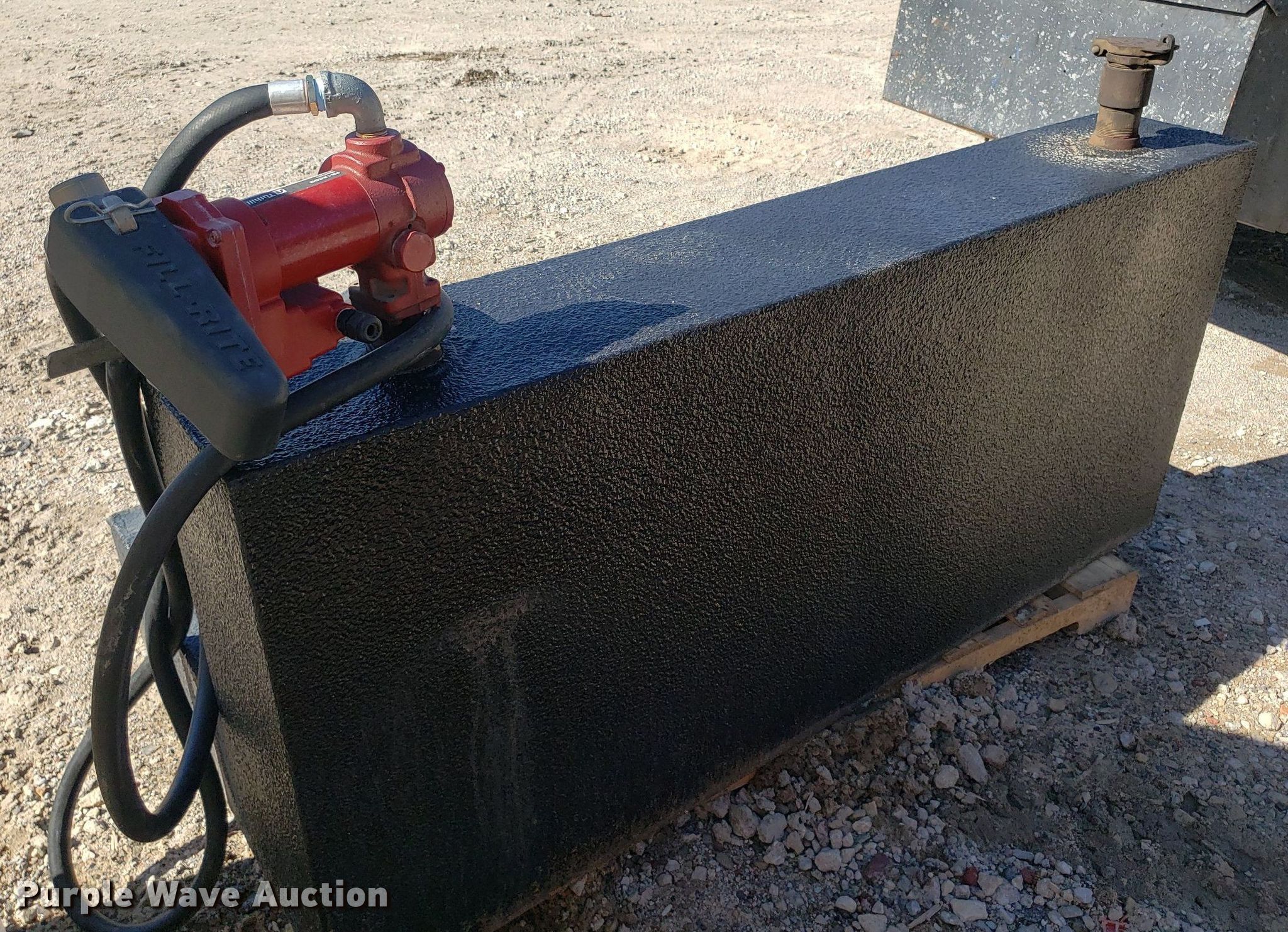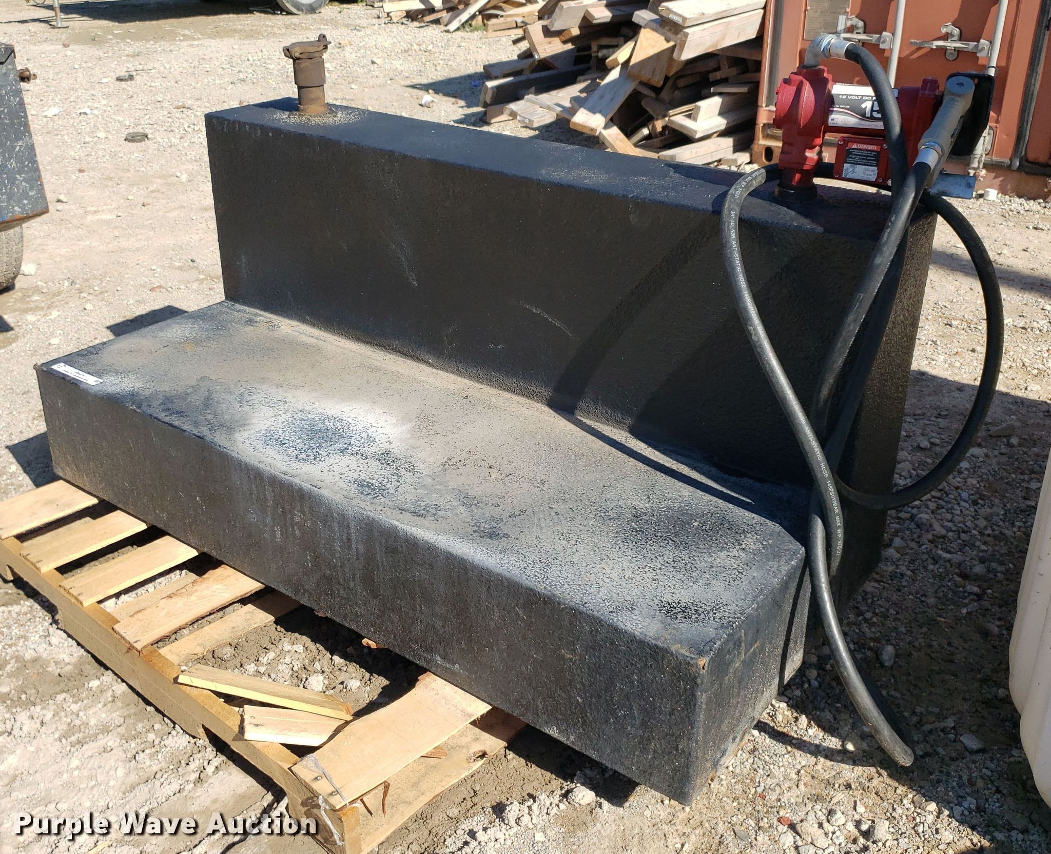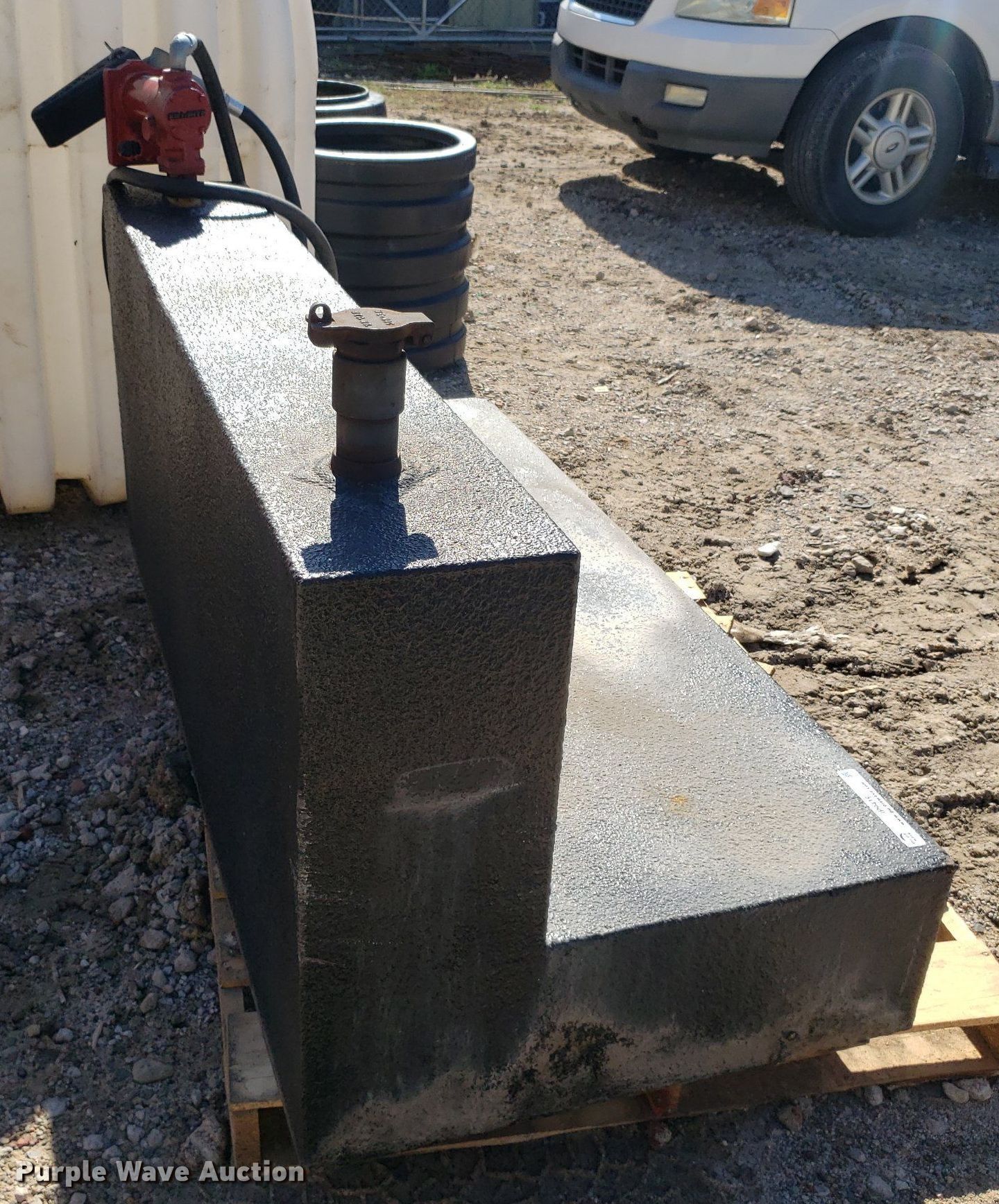 Purple Wave is selling a used Automotive Parts or Acces. in Kansas. This item is a Automotive accessories with the following: L-shaped fuel tank, Capacity: 100 gallons, 63" x 30", Fill-Rite pump, Volts: 12, GPM: 15,, Toolbox, 48" L x 40" W x 11" H