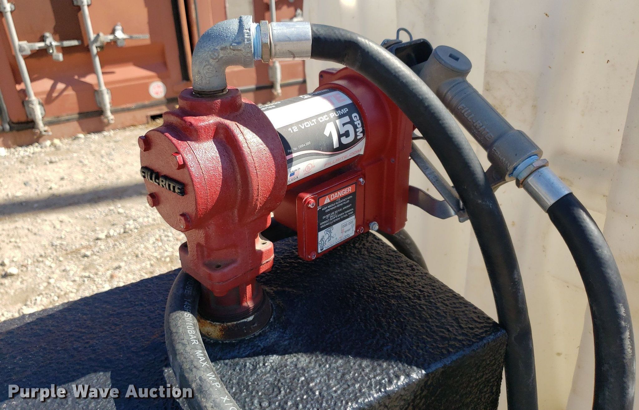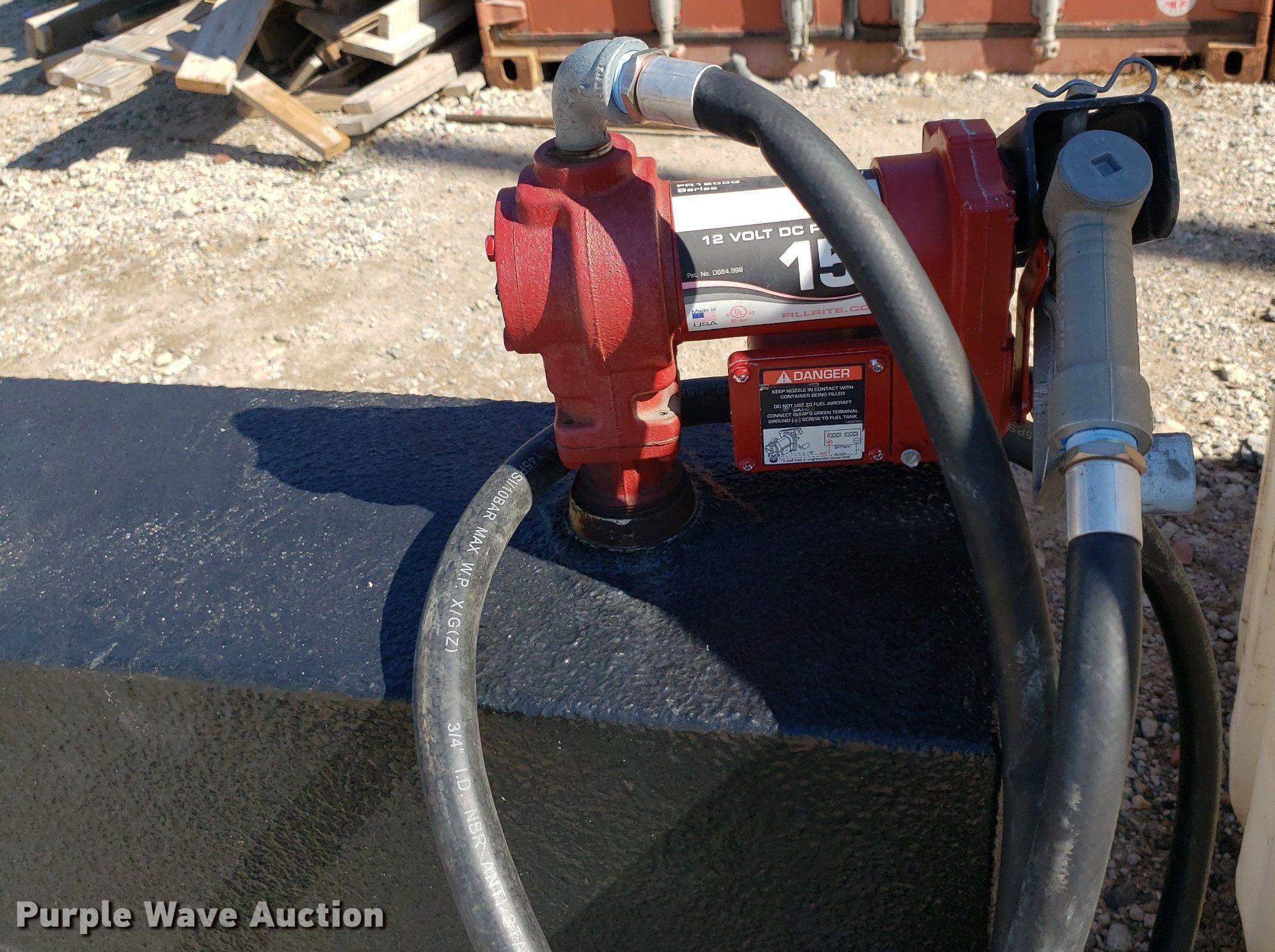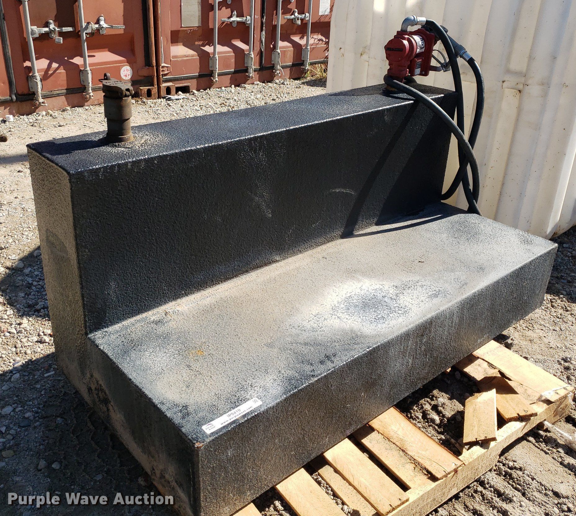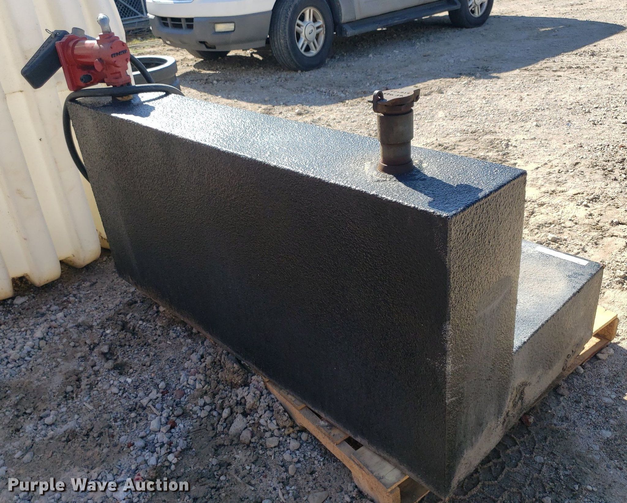 Purple Wave is selling a used Automotive Parts or Acces. in Kansas. This item is a Automotive accessories with the following: L-shaped fuel tank, Capacity: 100 gallons, 63" x 30", Fill-Rite pump, Volts: 12, GPM: 15,, Toolbox, 48" L x 40" W x 11" H