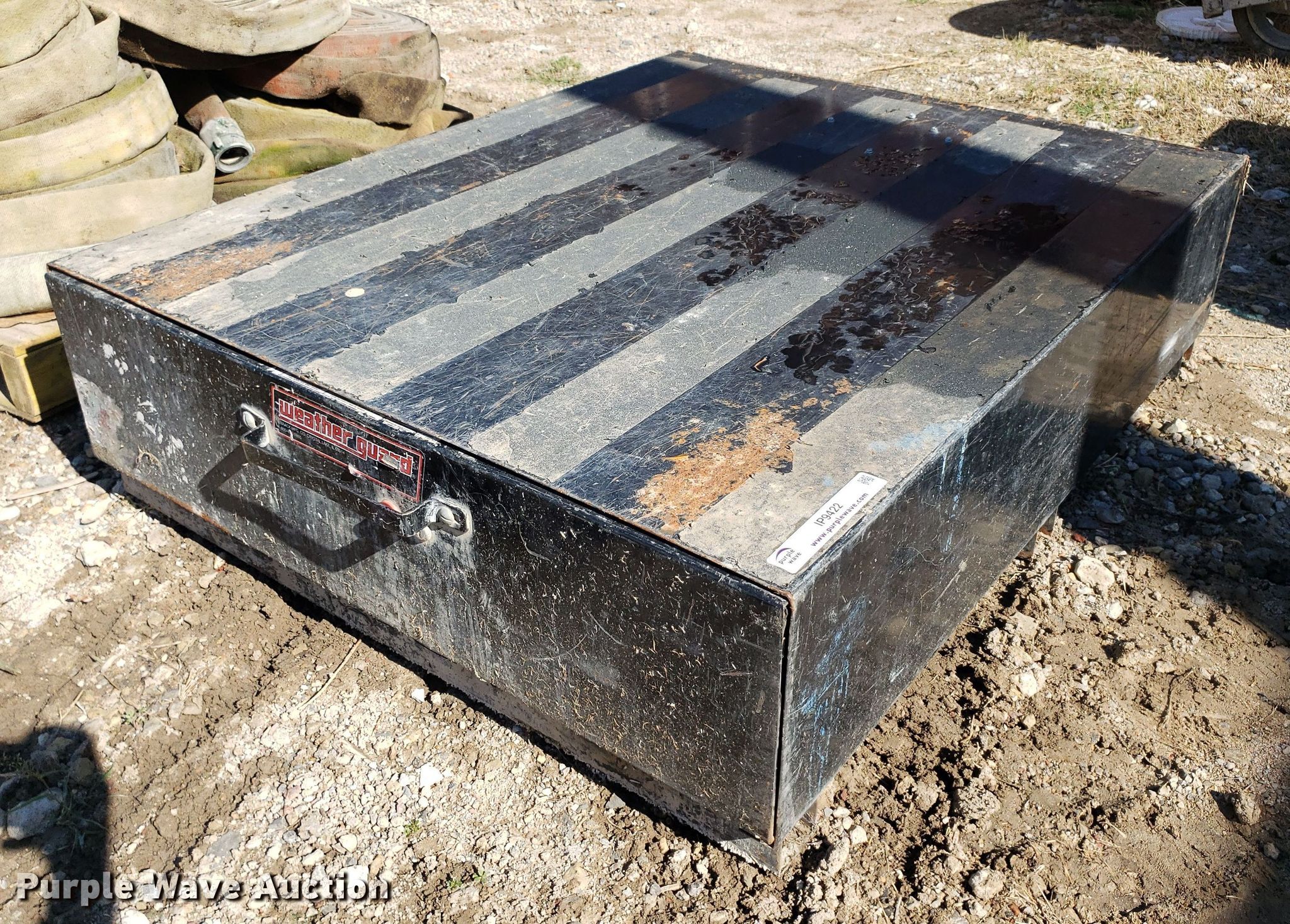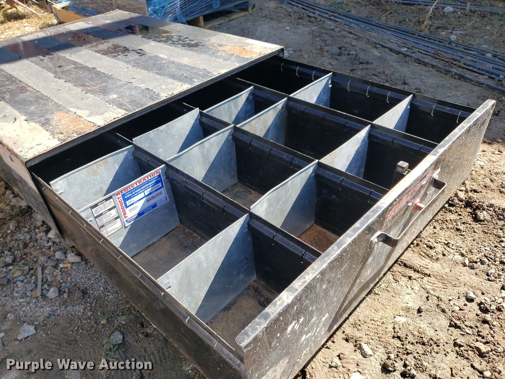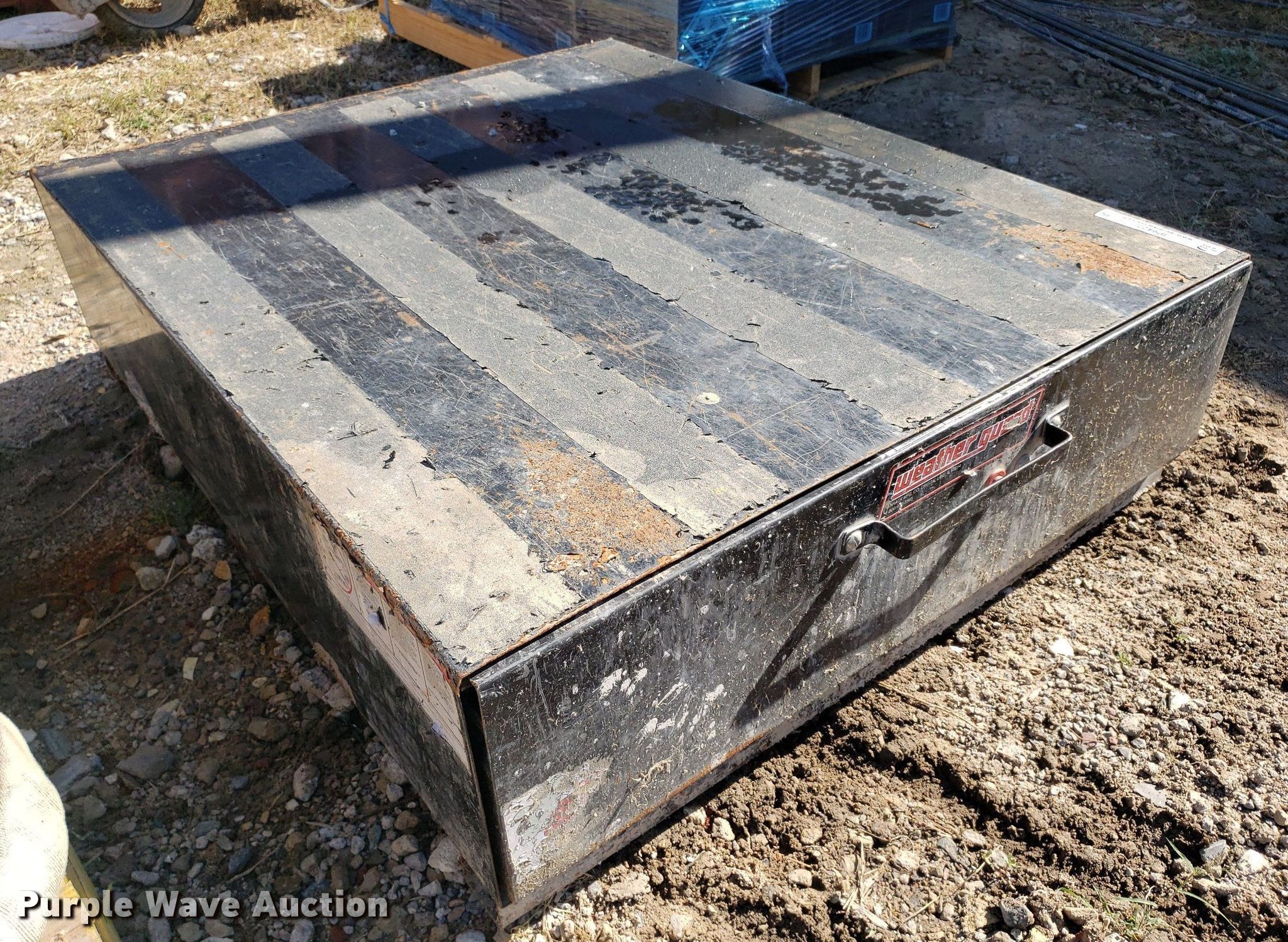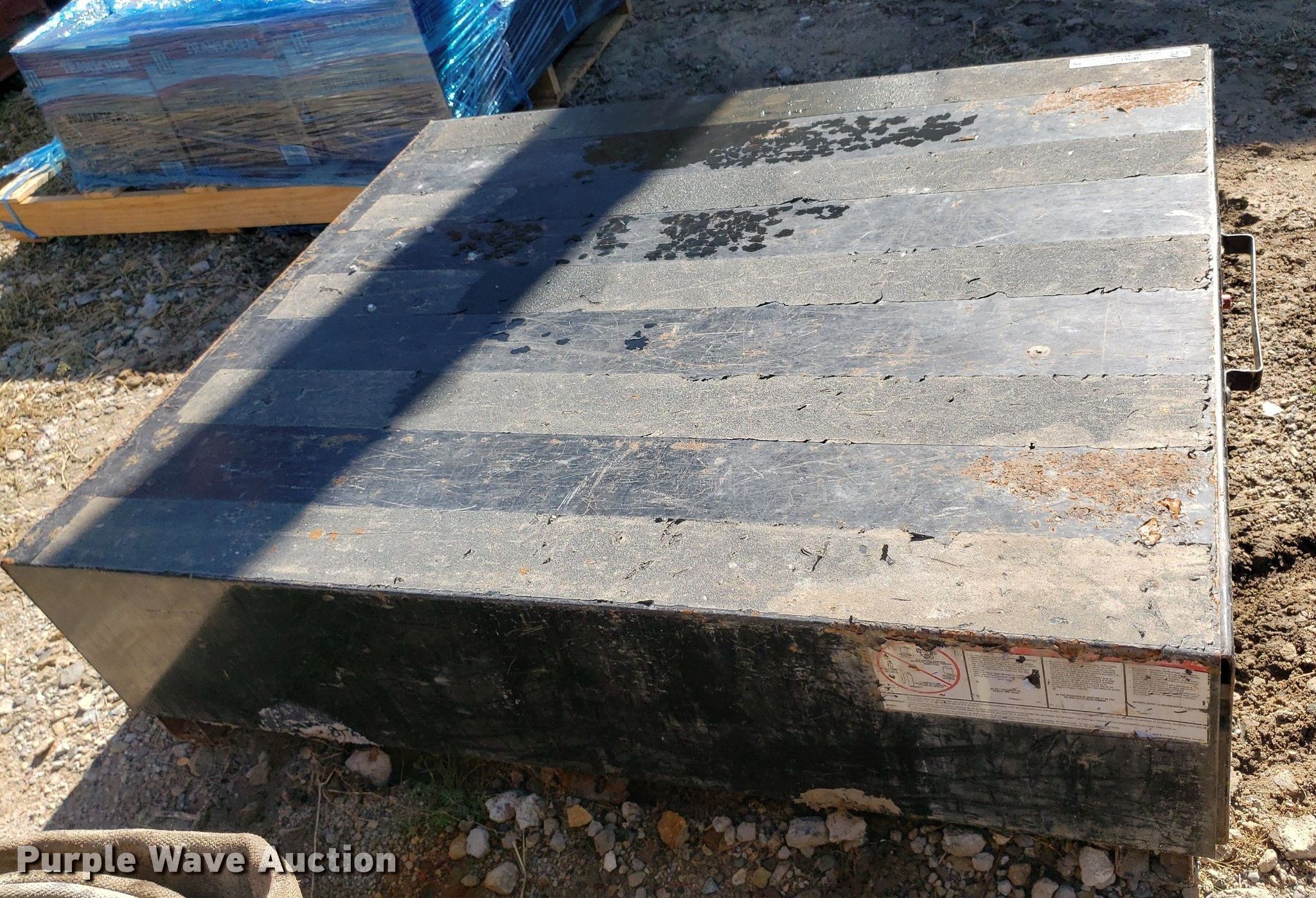 Purple Wave is selling a used Automotive Parts or Acces. in Kansas. This item is a Automotive accessories with the following: L-shaped fuel tank, Capacity: 100 gallons, 63" x 30", Fill-Rite pump, Volts: 12, GPM: 15,, Toolbox, 48" L x 40" W x 11" H