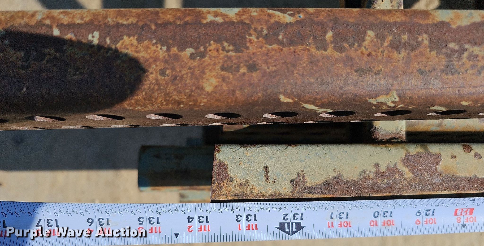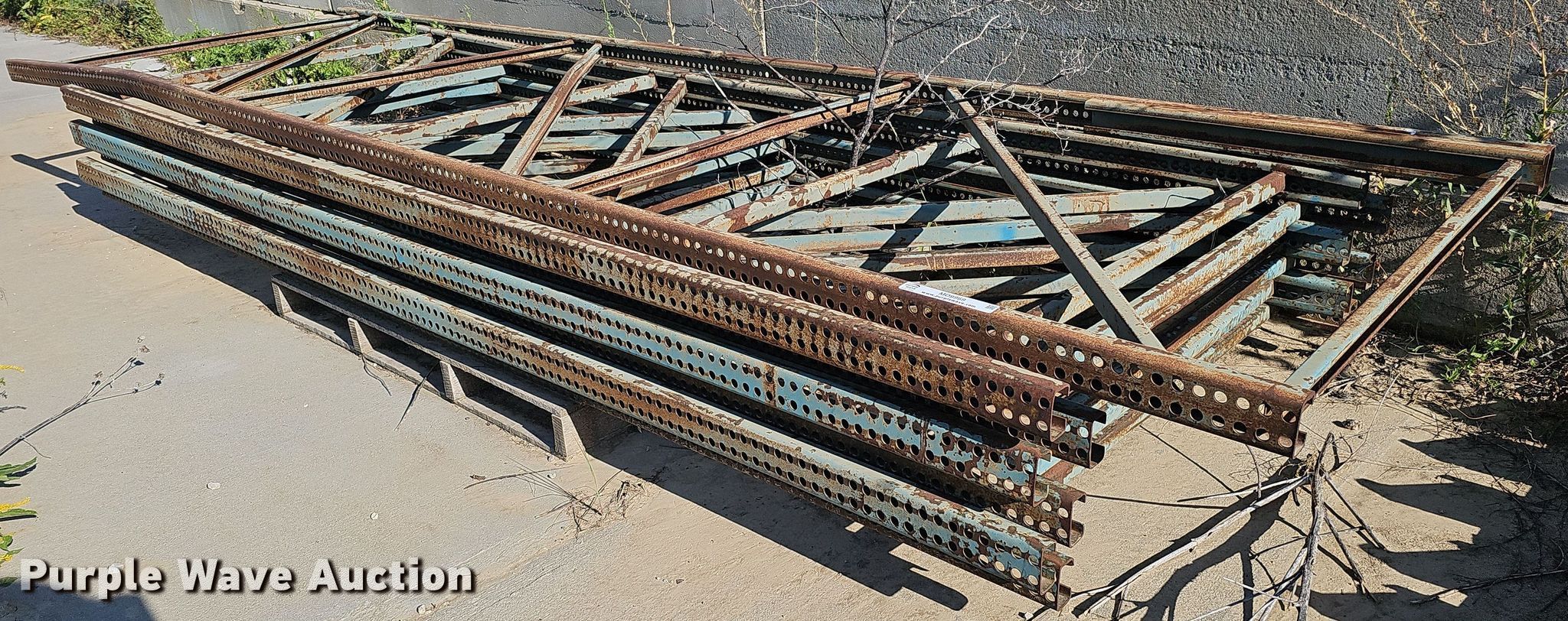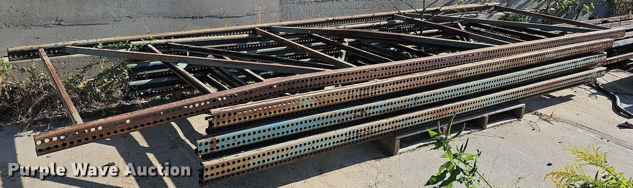Purple Wave is selling a used Pallet Racking in Nebraska. This item is a Approximately 7 pallet racking supports with the following: 11' H x 48" W