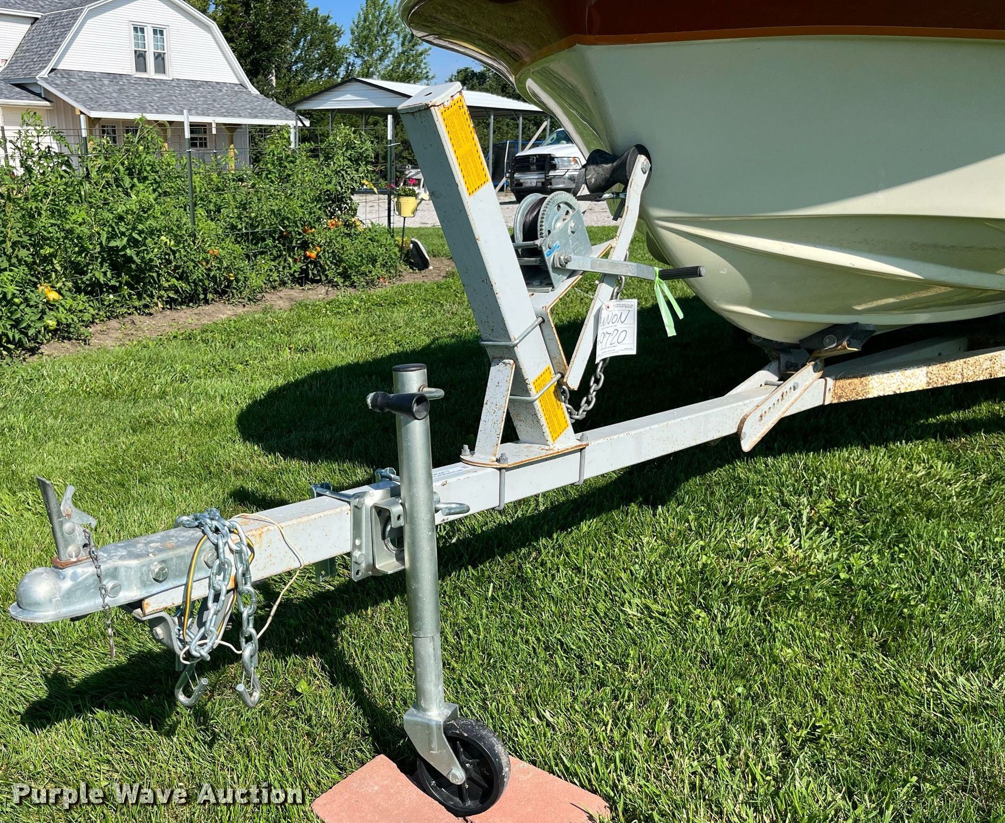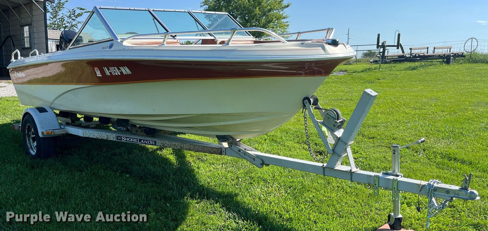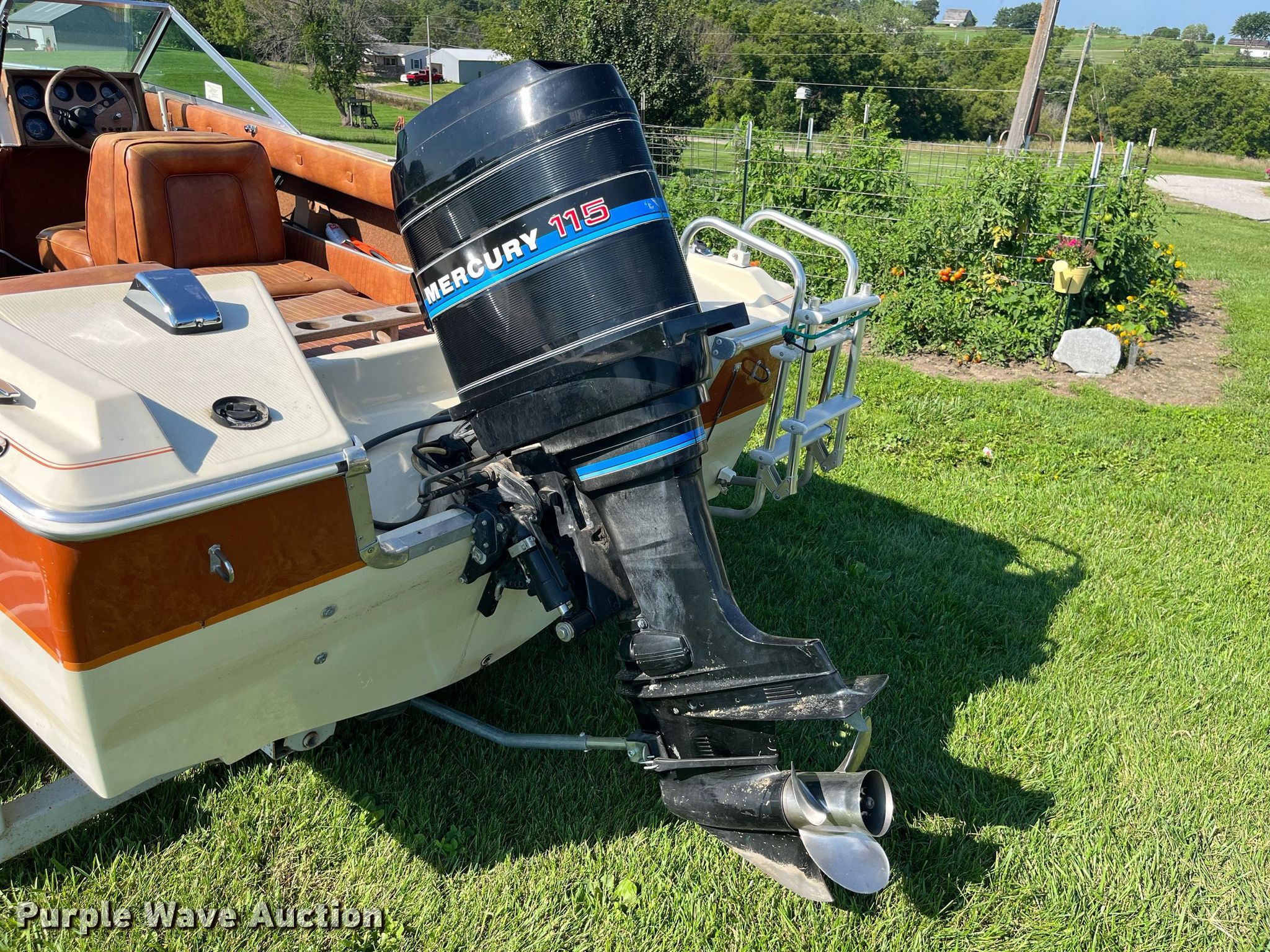 1982 MarkTwain Mark 175 boat. Length: 17' 3", Hull ID: MTM24002M82A. Engine Engine type: Outboard, Mercury, Cylinders: 6, Fuel type: Gas, HP: 115, Outdrive Propeller: Stainless steel. Operators station Capacity Person: 6, 900 lbs. Trailer ShoreLandr , VIN: 1MDBCDS14HM297827, Overall length: 19.5', Overall width: 96", Ball hitch size: 2", Axles: Single, Tire size: 205/75R14. Boat: Iowa title. Title distribution may be delayed up to 14 days from verification of funds. Trailer: Transfer of ownership documentation will be a bill of sale. 1202 North Hayes Street. Mount Ayr, IA 50854