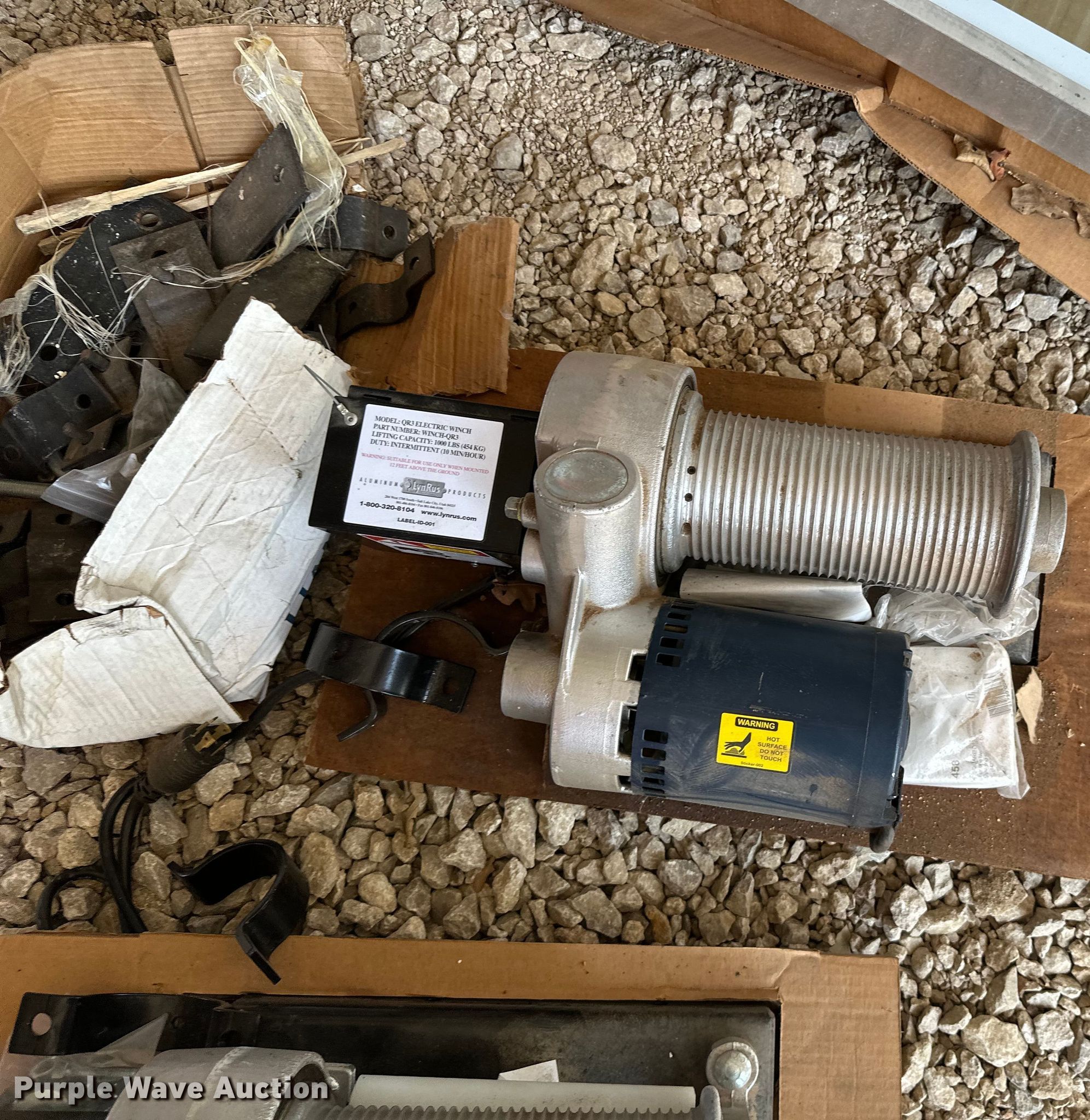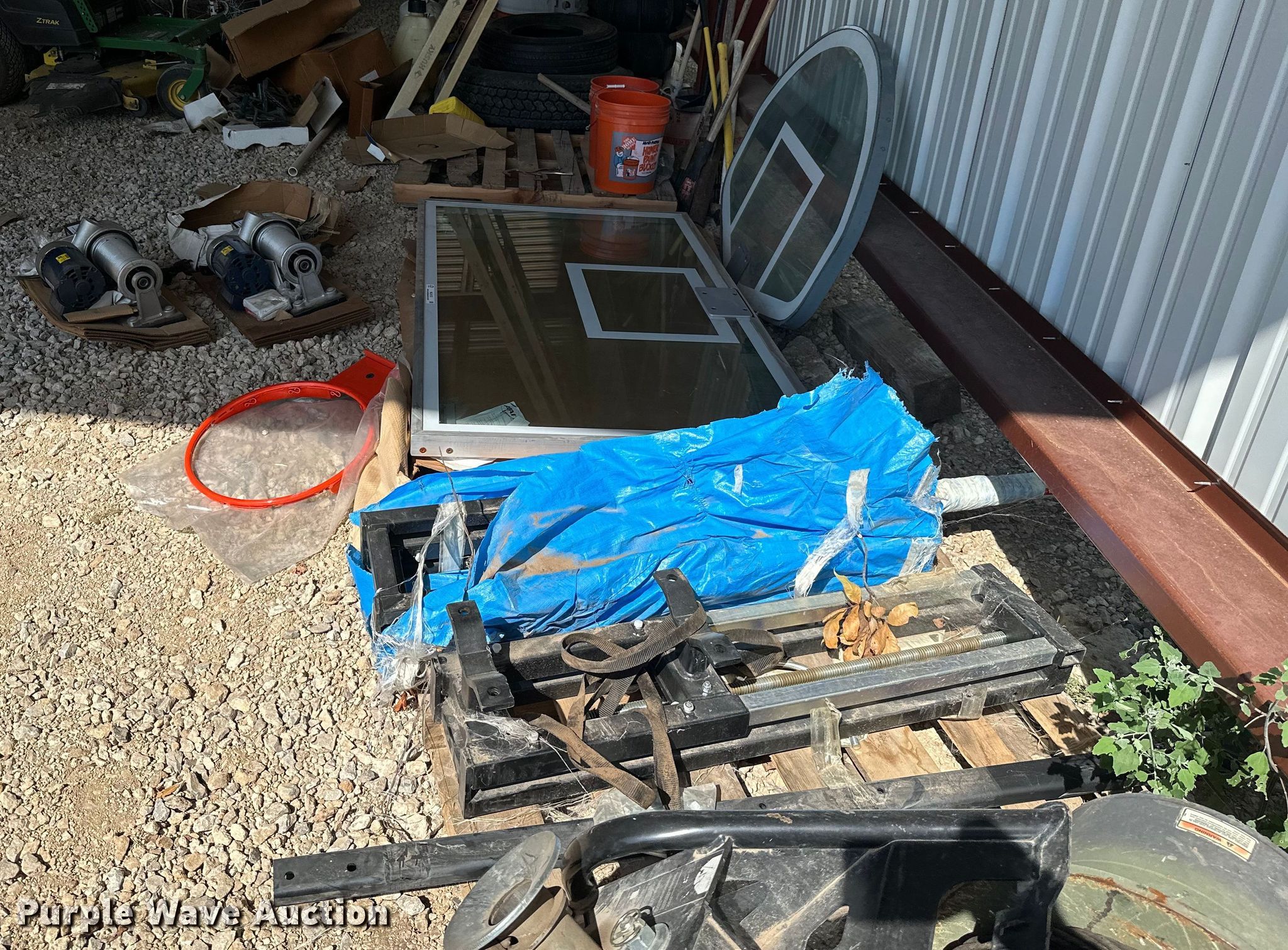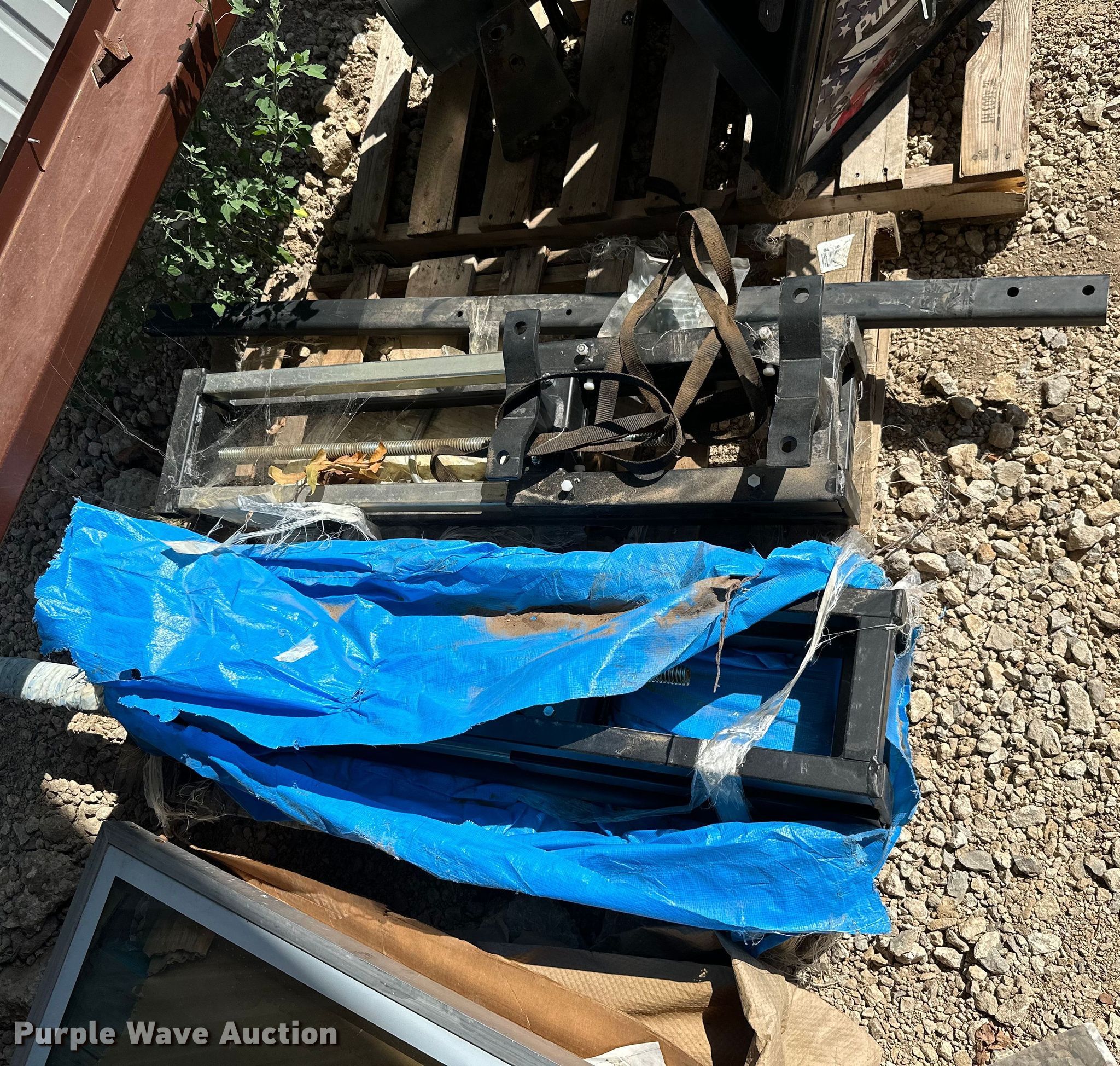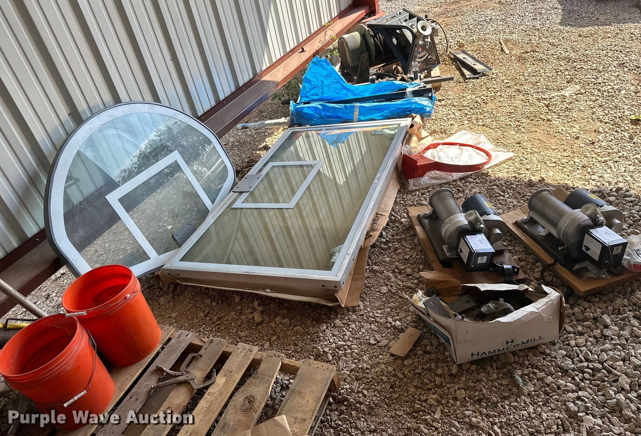 Purple Wave is selling a used Sporting Goods in Kansas. This item is a Sporting goods with the following: Basketball goal parts, Rim, (2) backboards, (2) mounting brackets, Hardware, (2) LynRus winches, Maximum capacity: 1,000 lbs, Unused