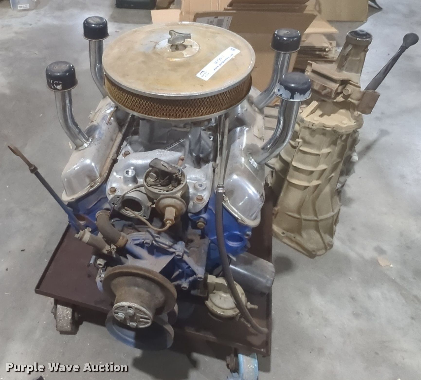 Purple Wave is selling a used Engine in Oklahoma. This item is a Ford engine with the following: Displacement: 289 C.I.D., Cylinders: 8, Fuel type: Gas, Transmission, Manual, Speeds: 5