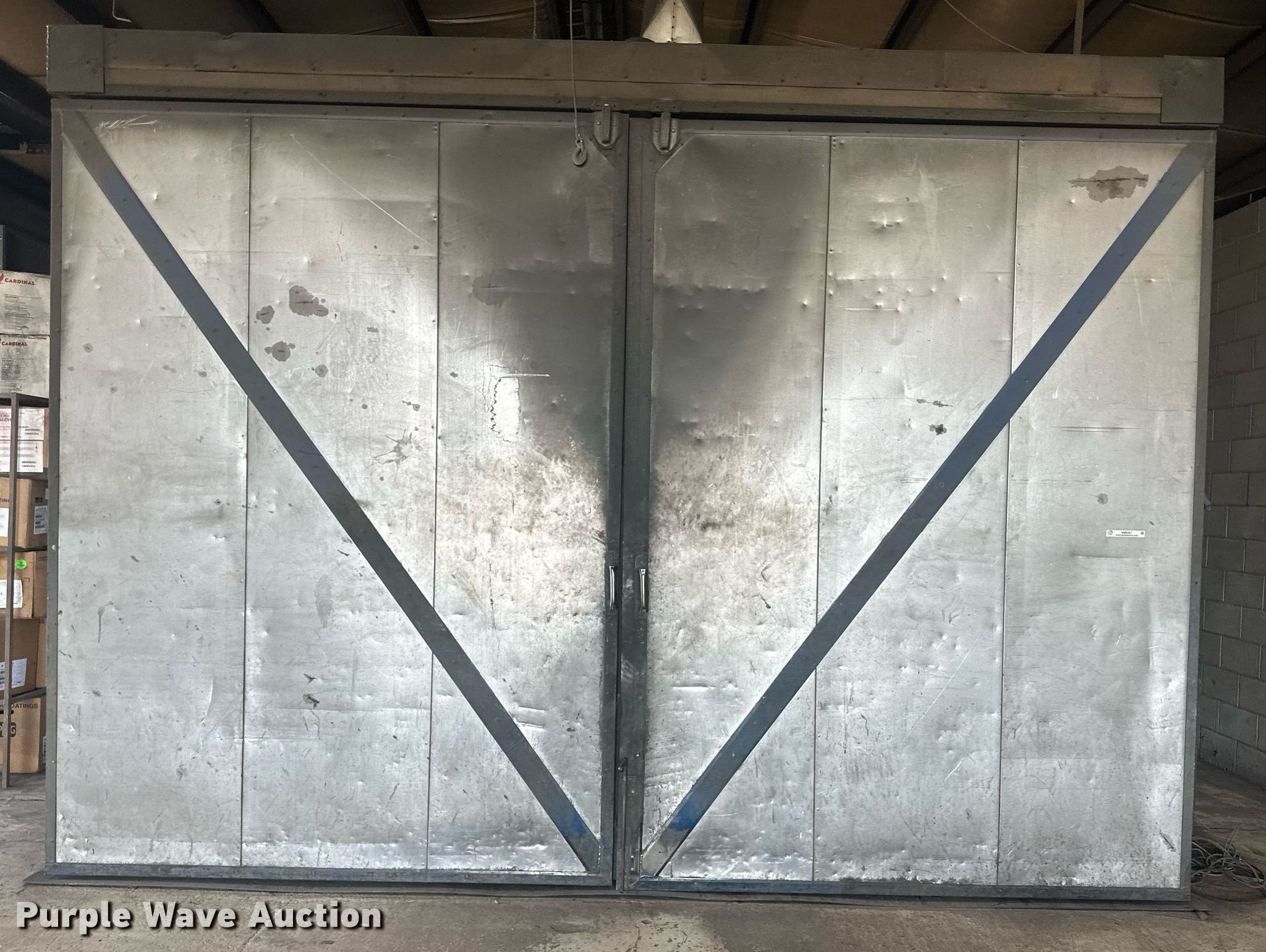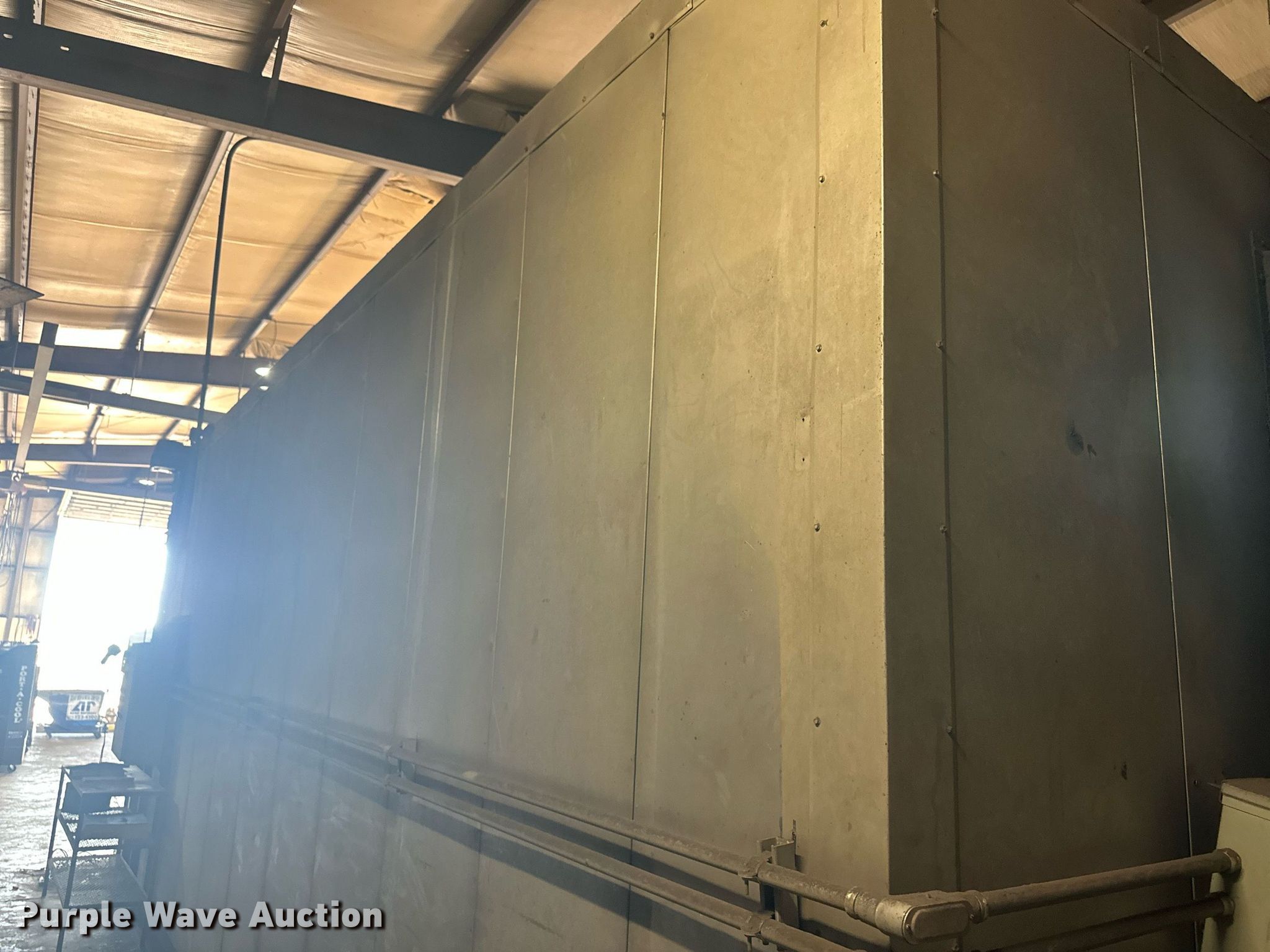 Powder coat oven. Dimensions: 31'L x 15'W x 11'H, Oven: 26'L, Exhaust duct work not included, Disconnected from utilities. Buckshot MFG. Sublette, KS 67877