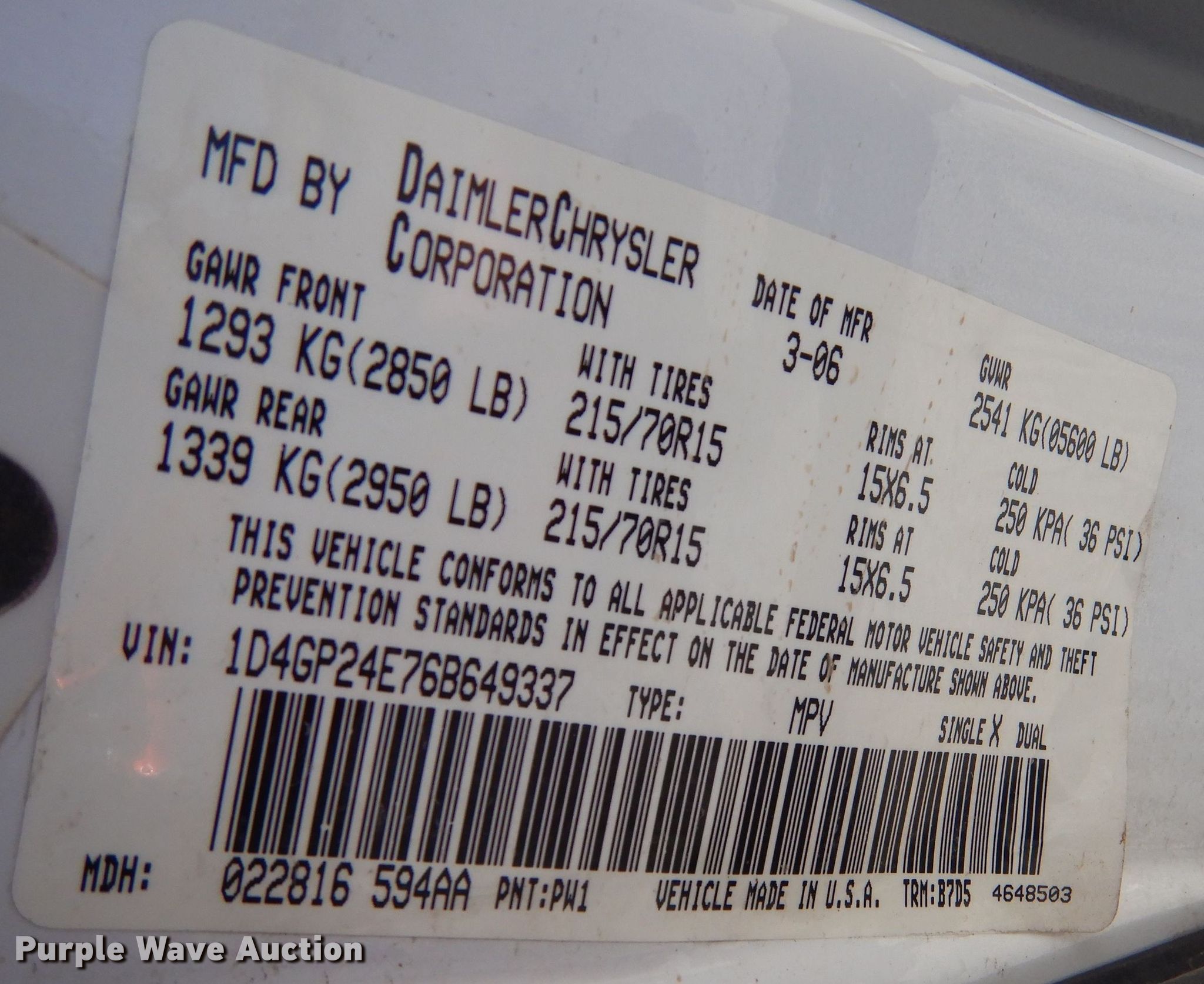- VIN: 1D4GP24E76B649337
