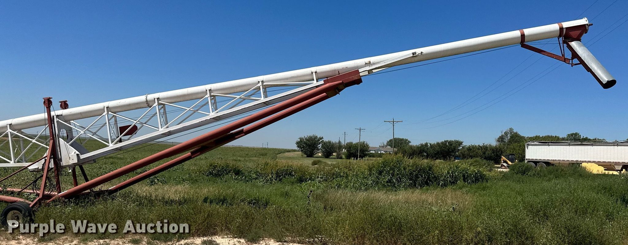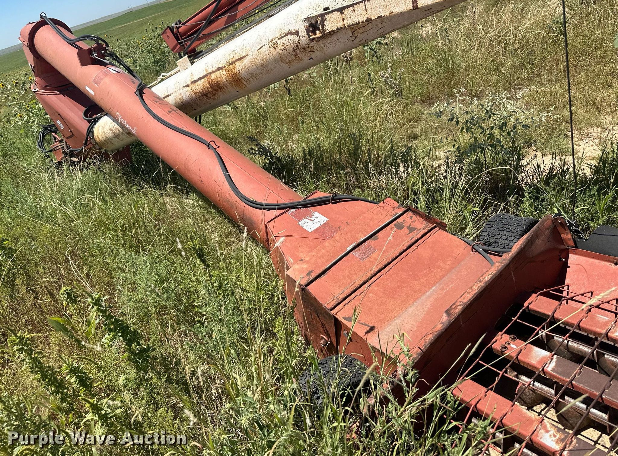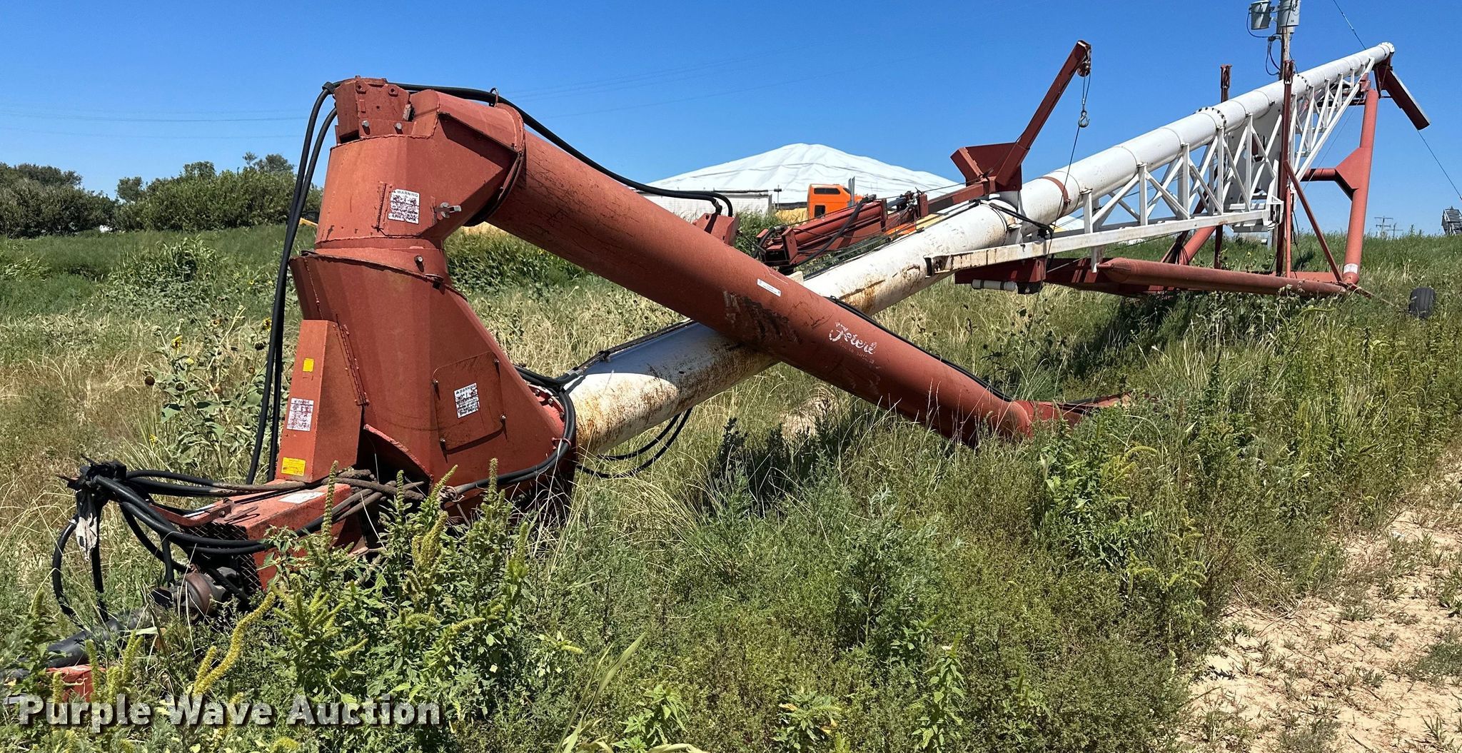 Purple Wave is selling a used Auger or Conveyor in Kansas. This item is a Feterl auger with the following: Length: 100', Diameter: 14", Lift: Hydraulic, Swing-out hopper, PTO: 1 3/4" 1000