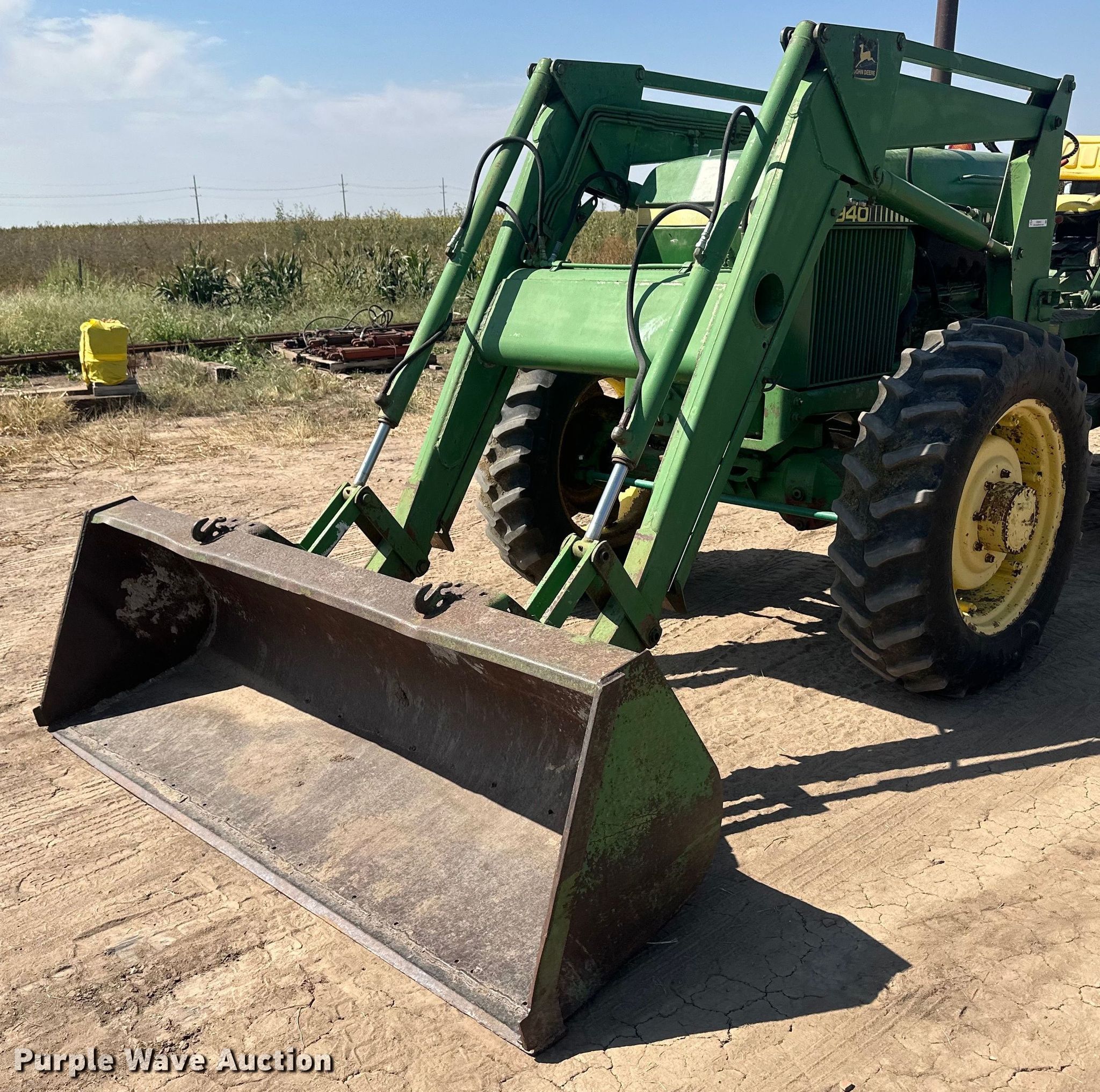John Deere 260 loader. Serial: L0260002081W. Features Quick attach, Bucket width: 86". Notes Tractor not included. Plains, KS 67869