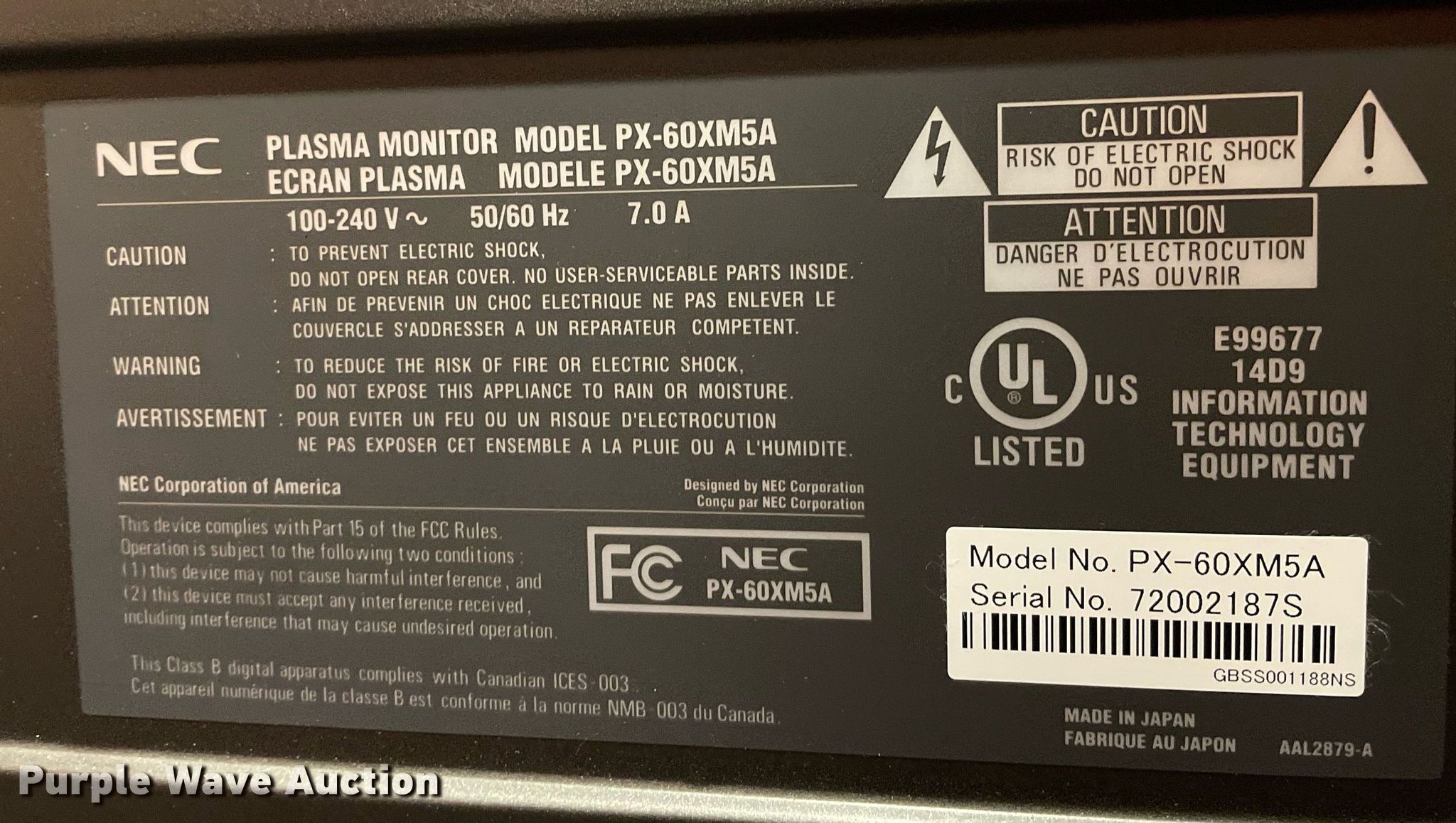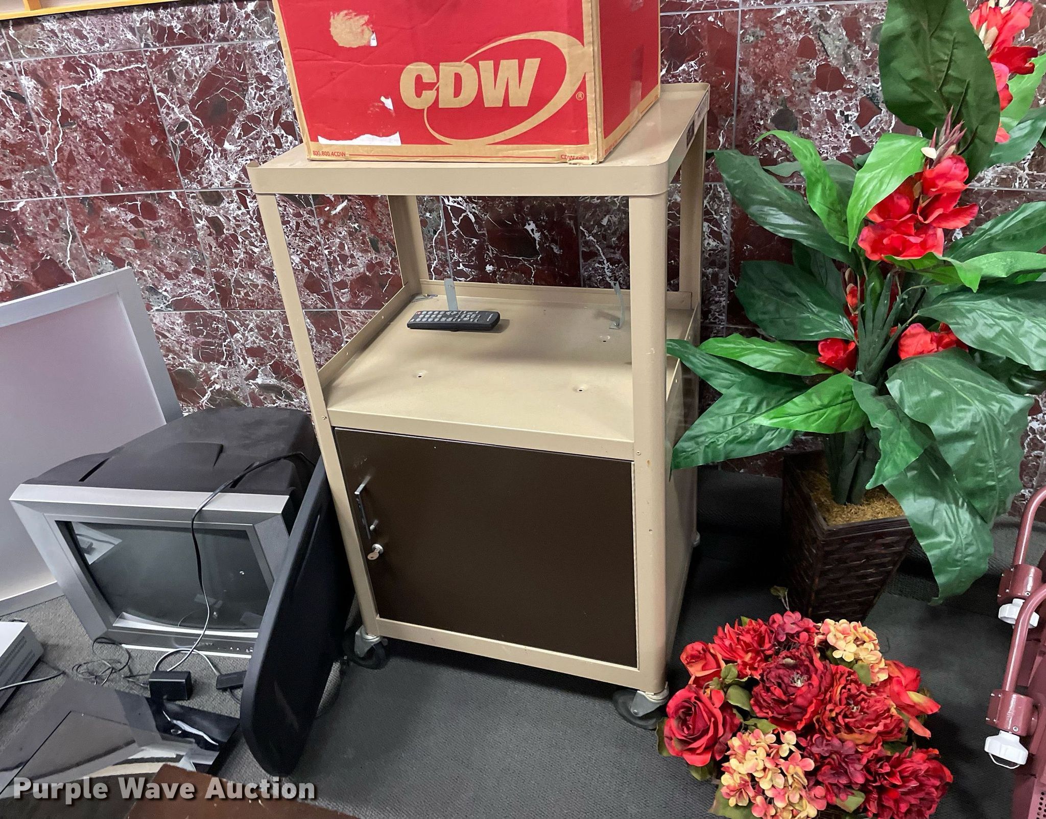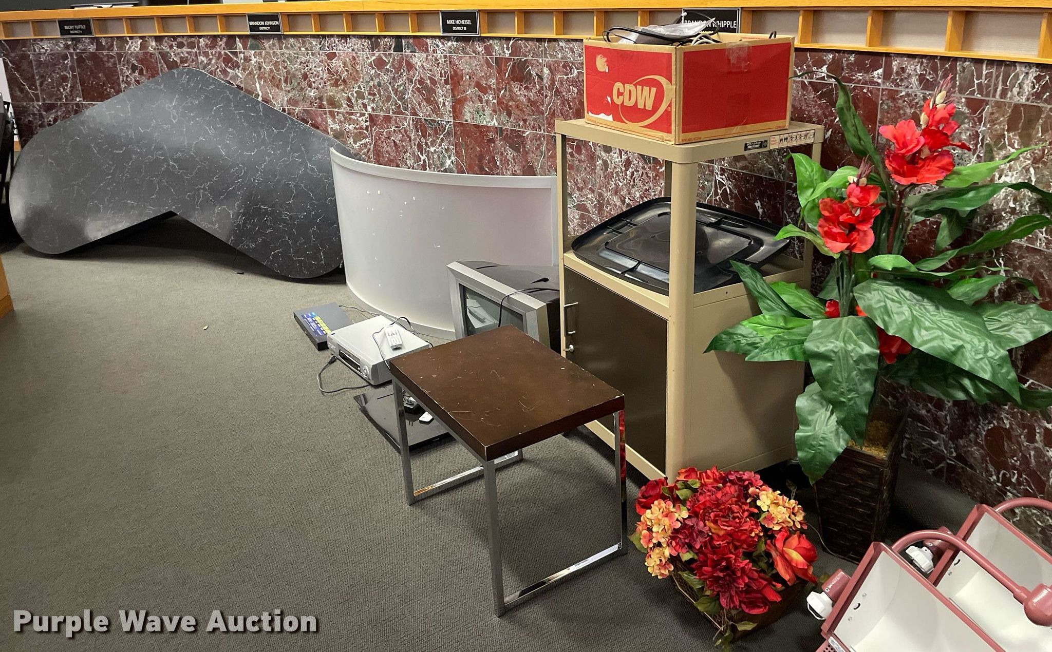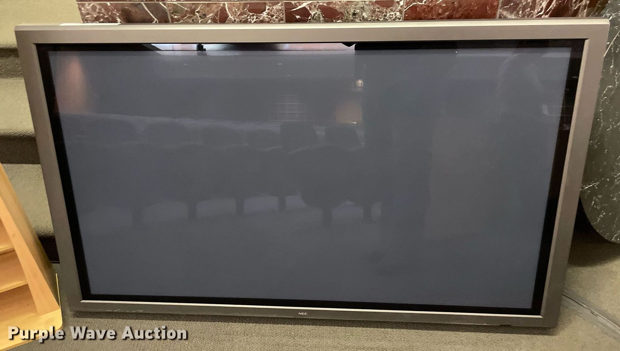 Purple Wave is selling a used Electronics in Kansas. This item is a Electronics with the following: NEC 60" plasma tv, Studio desk top with screen, Dunex 20" TV, PIX cart, Cables, Digital picture frame, DVD player, VCR, End table, Flowers