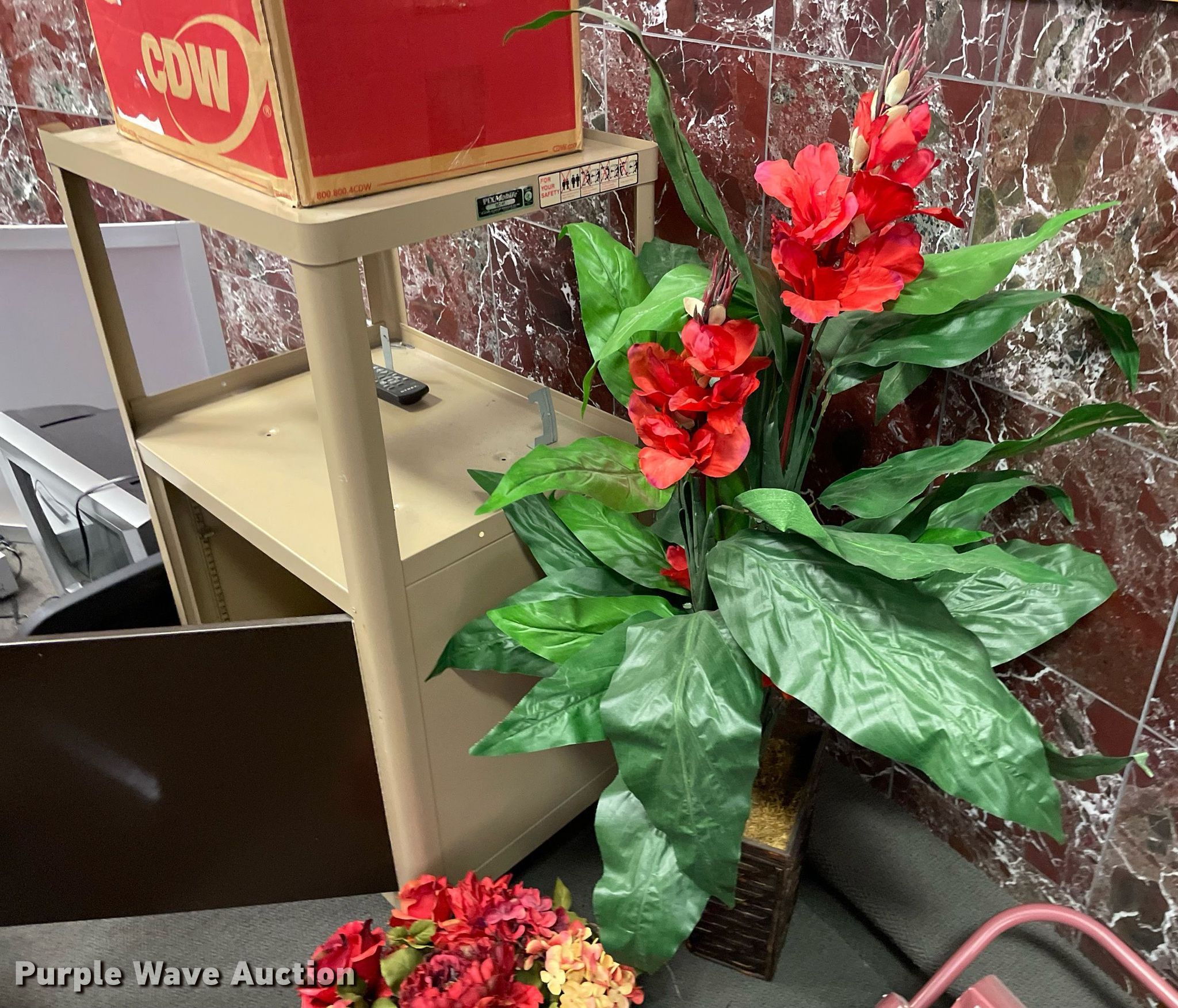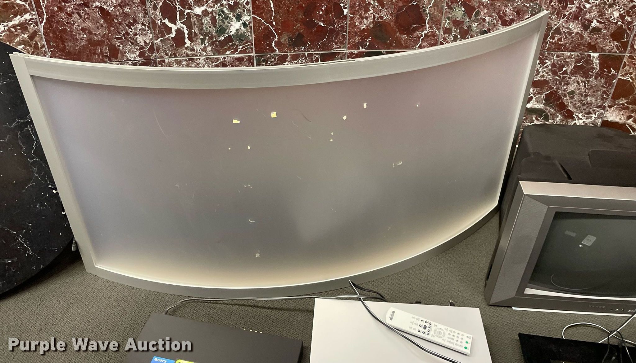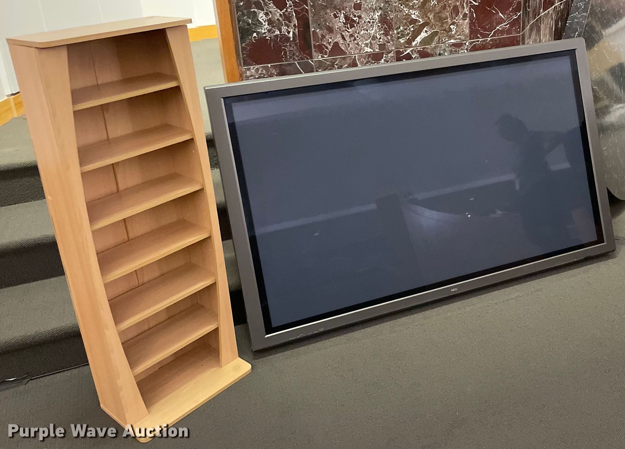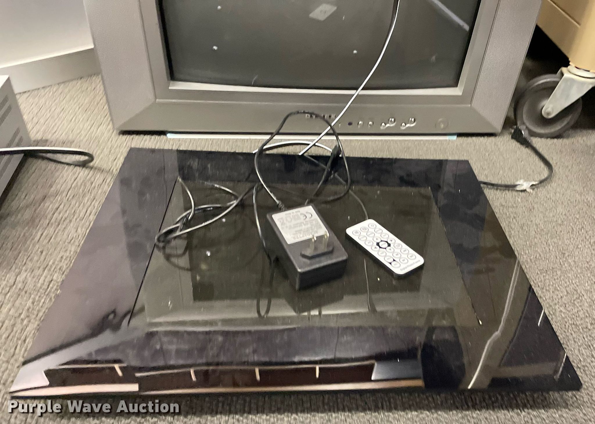 Purple Wave is selling a used Electronics in Kansas. This item is a Electronics with the following: NEC 60" plasma tv, Studio desk top with screen, Dunex 20" TV, PIX cart, Cables, Digital picture frame, DVD player, VCR, End table, Flowers