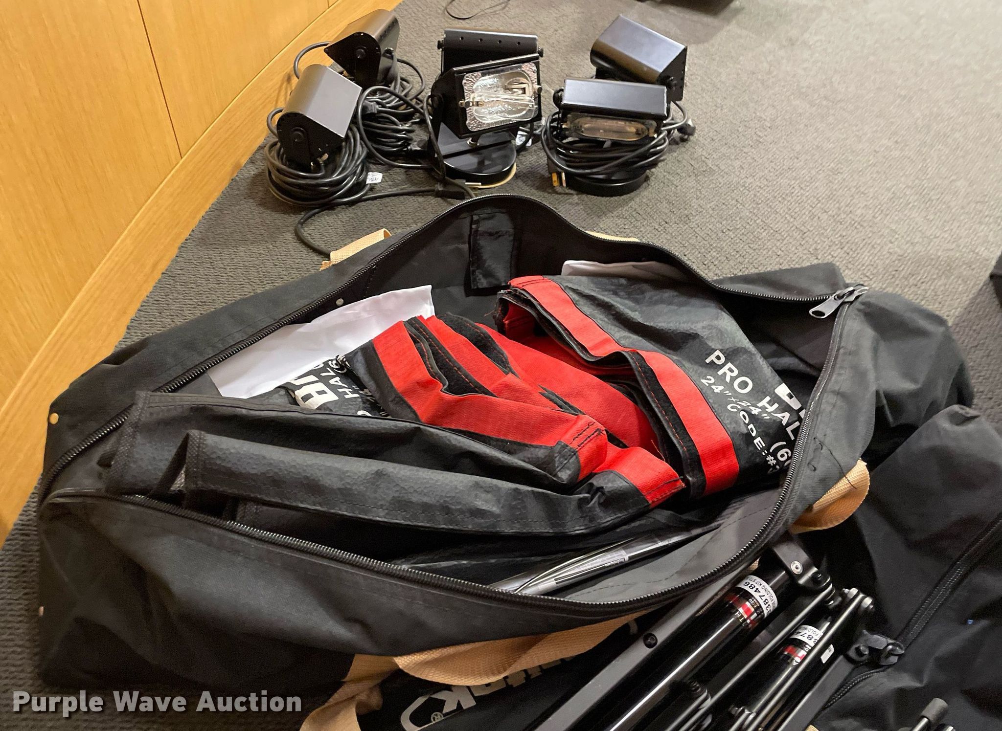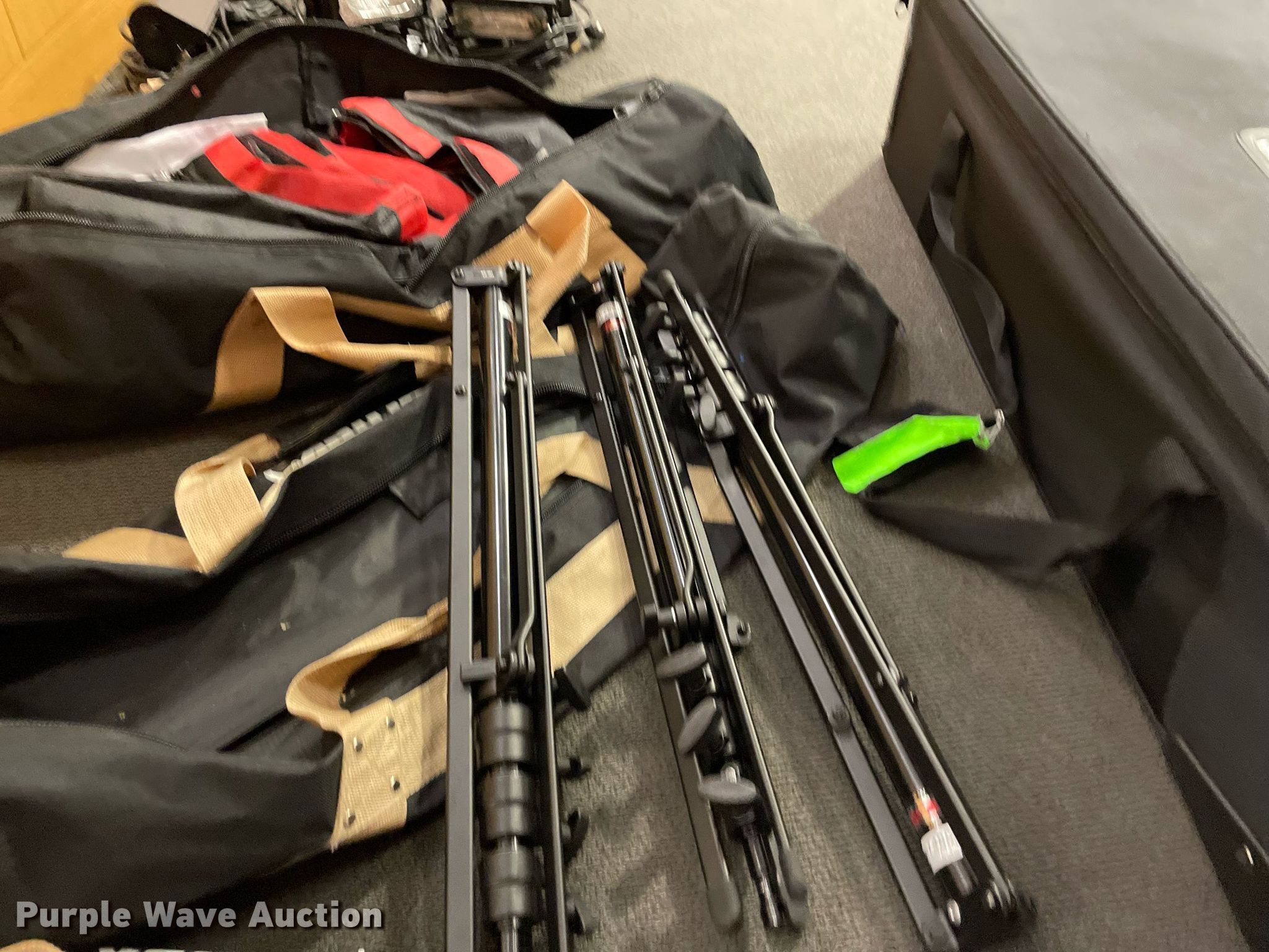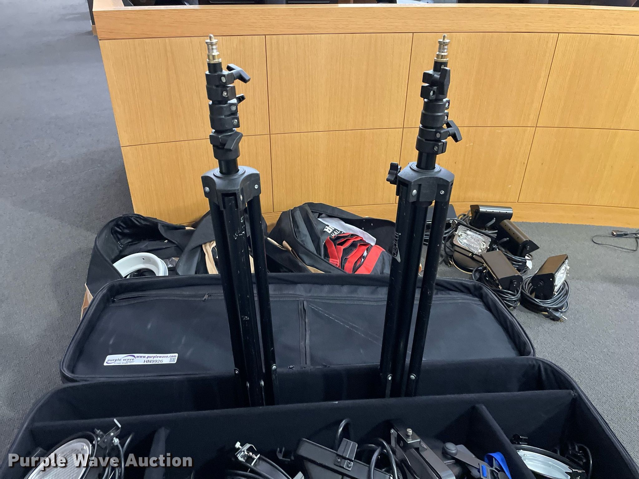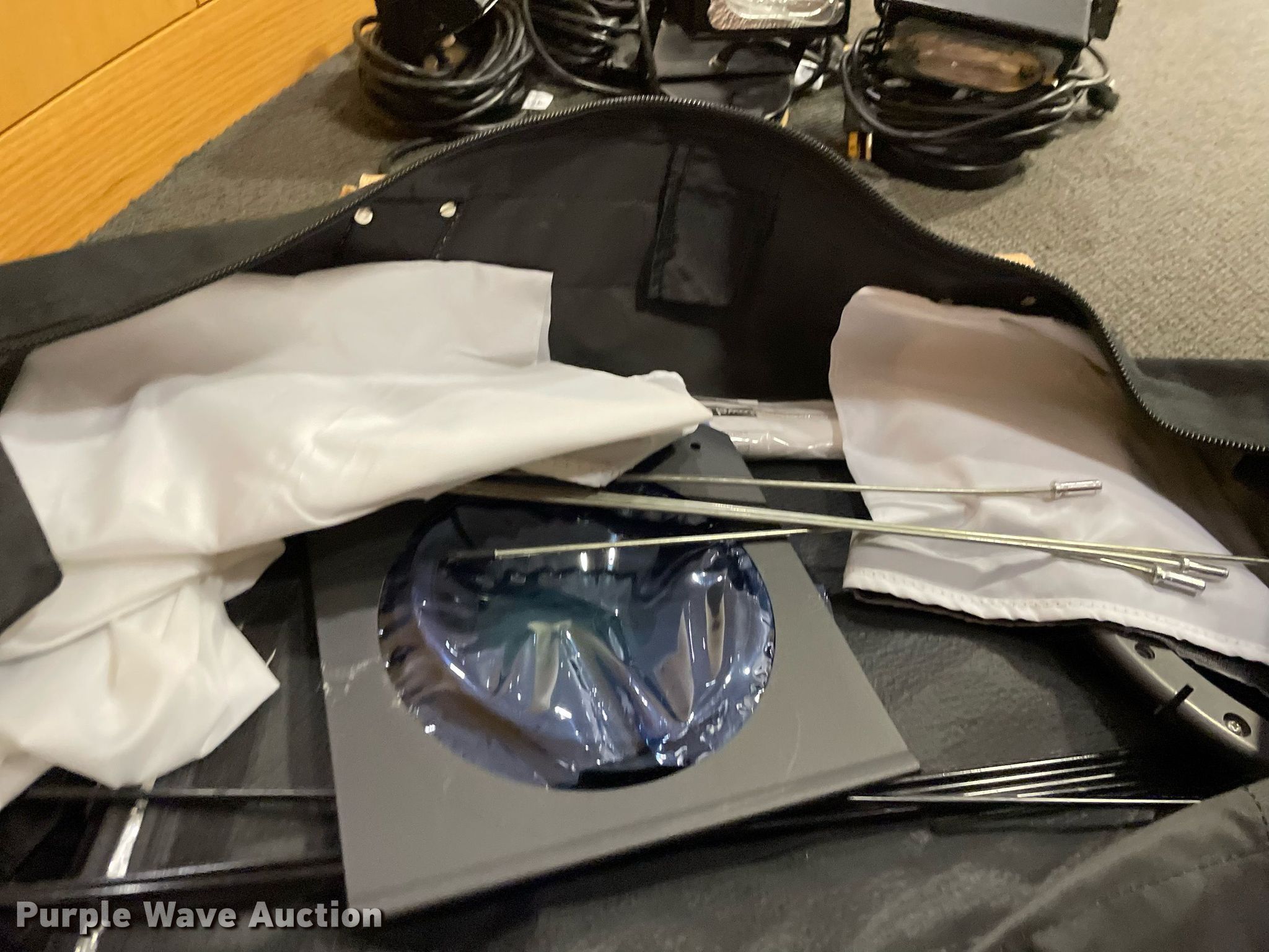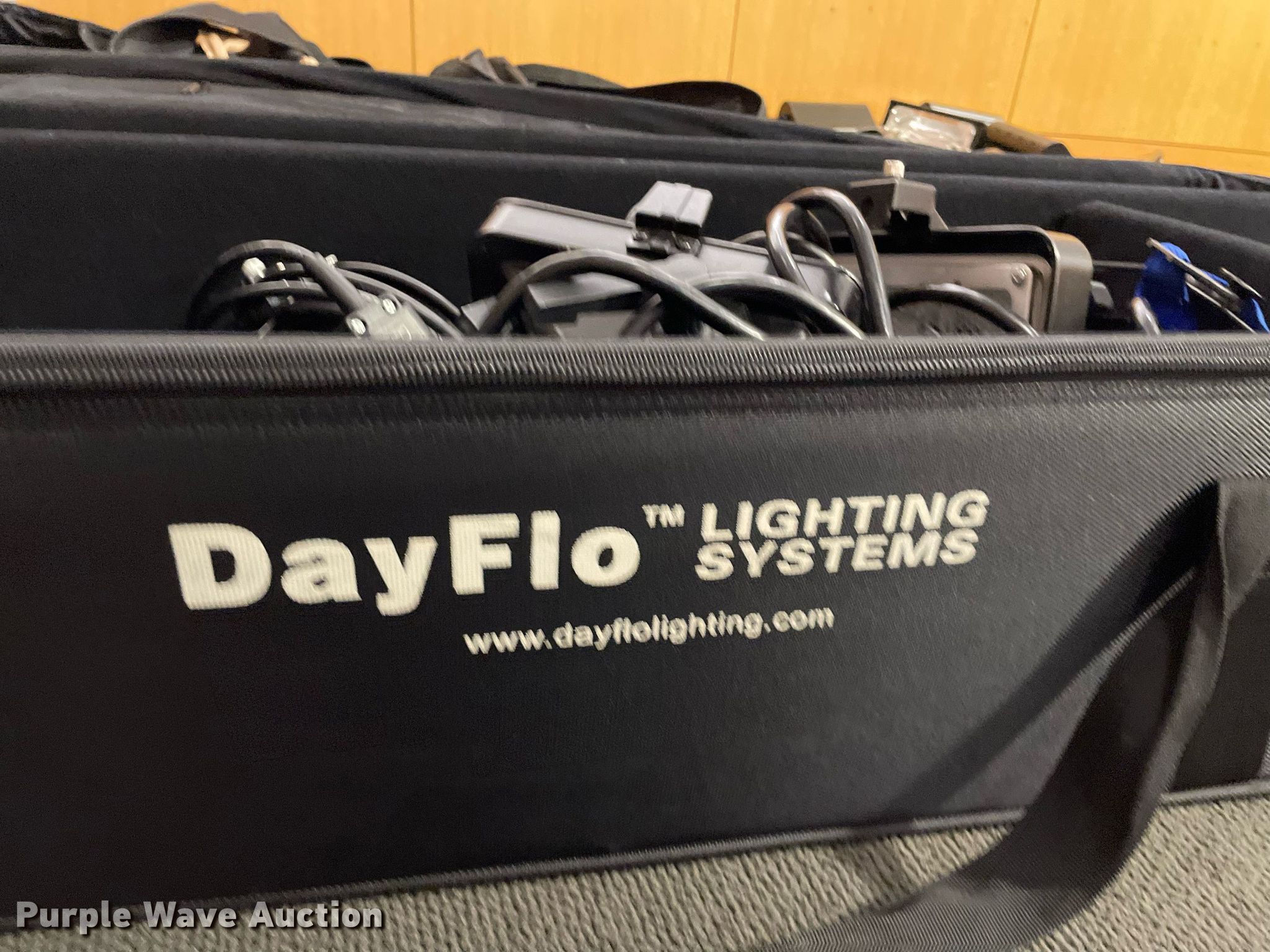 Purple Wave is selling a used Electronics in Kansas. This item is a Lighting with the following: Production lighting, (4) stage floor lights, Kino Flo image light, Light stand, (6) lights, Bags