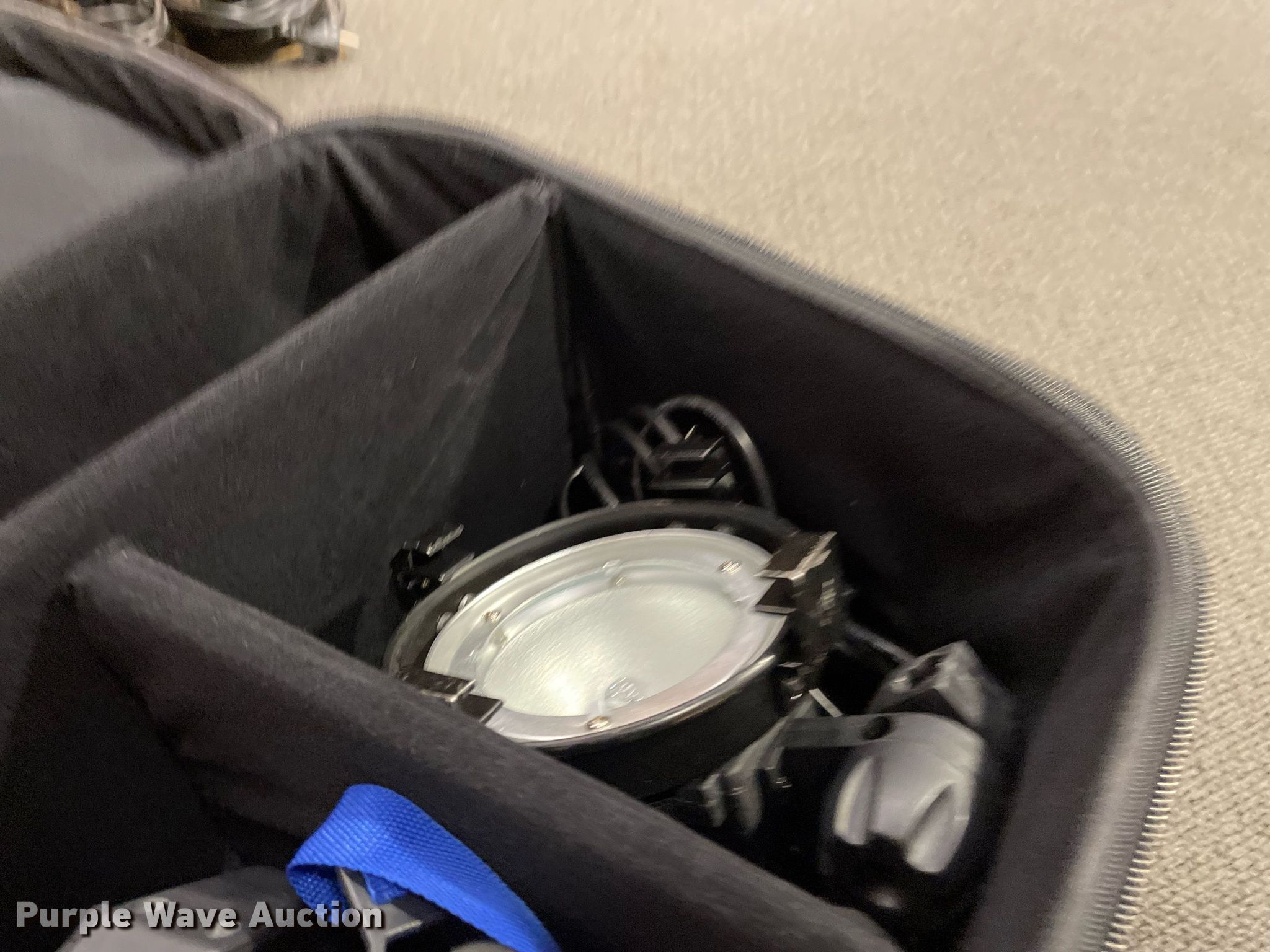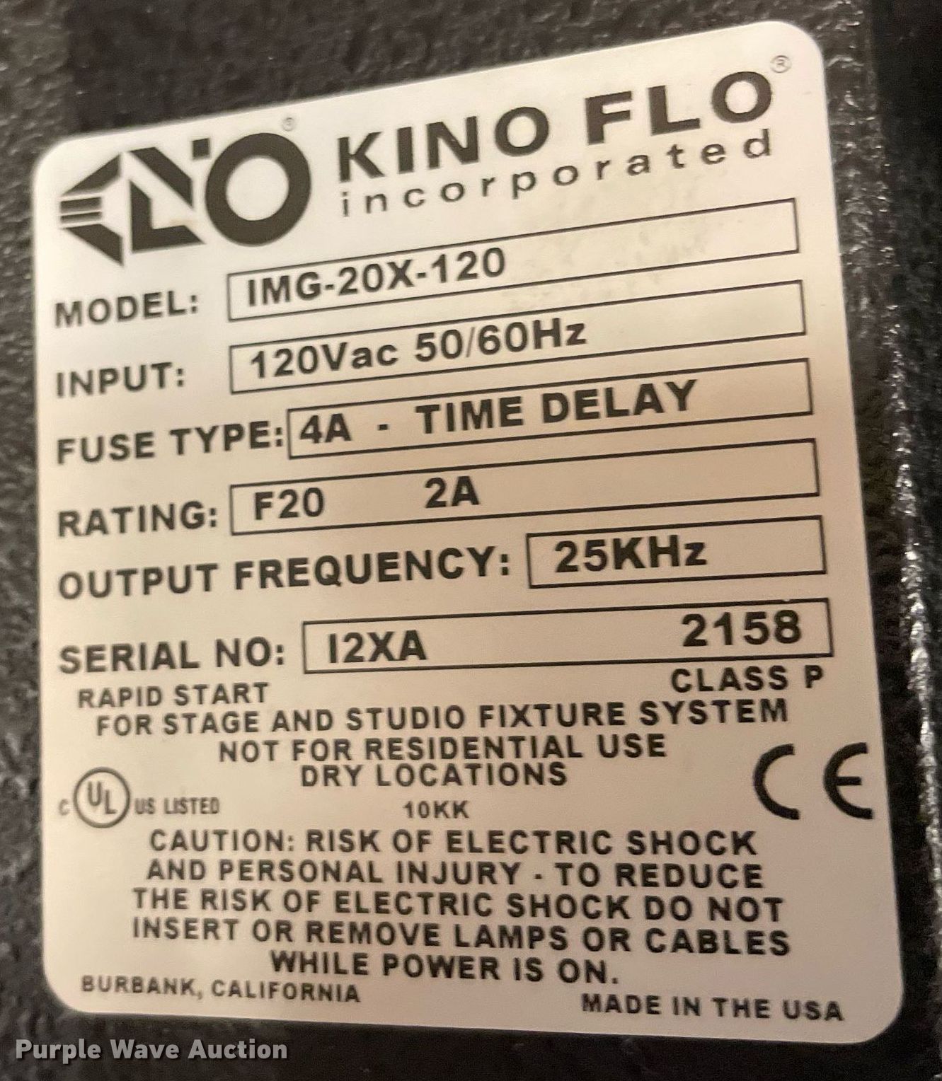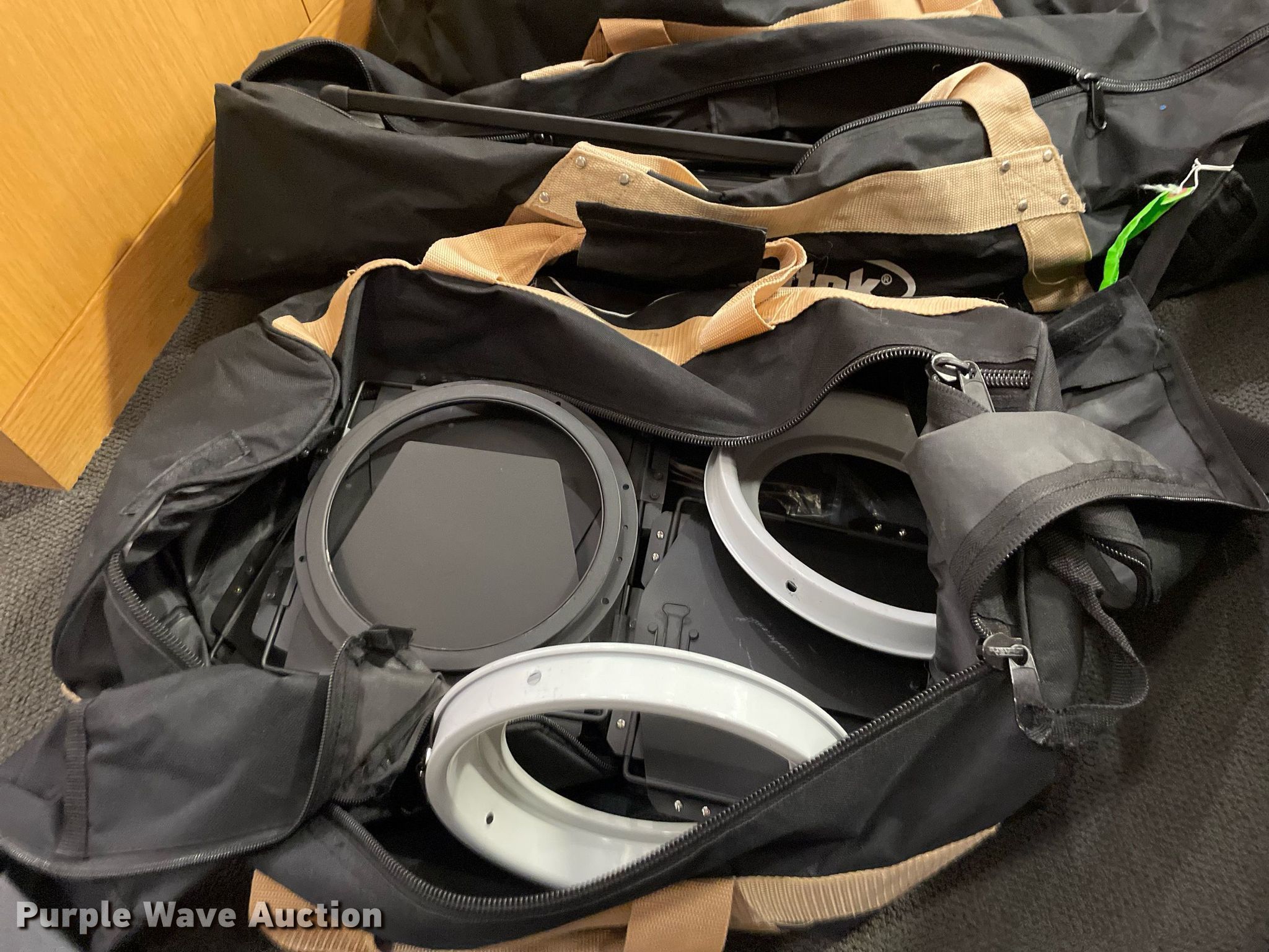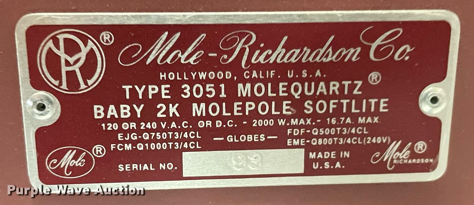 Purple Wave is selling a used Electronics in Kansas. This item is a Lighting with the following: Production lighting, (4) stage floor lights, Kino Flo image light, Light stand, (6) lights, Bags