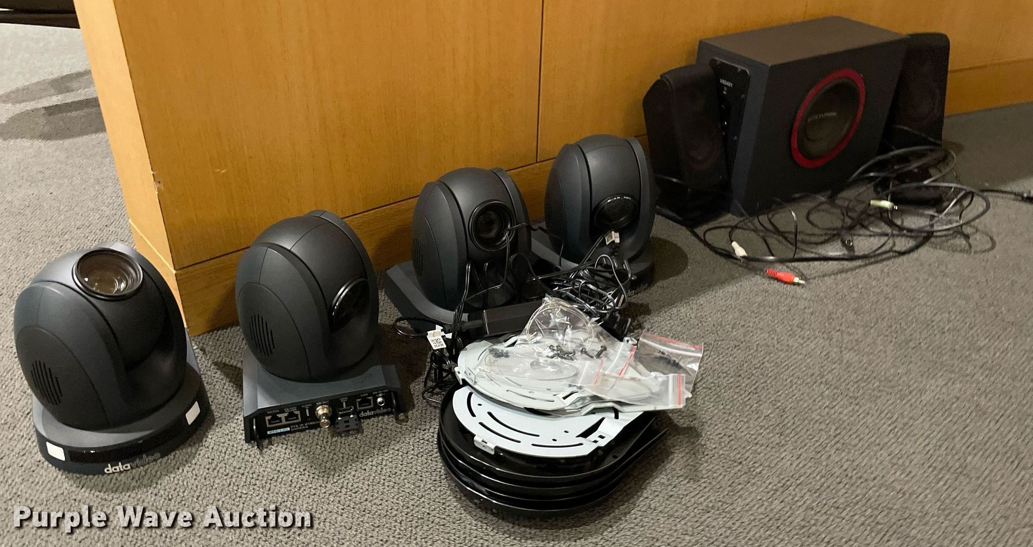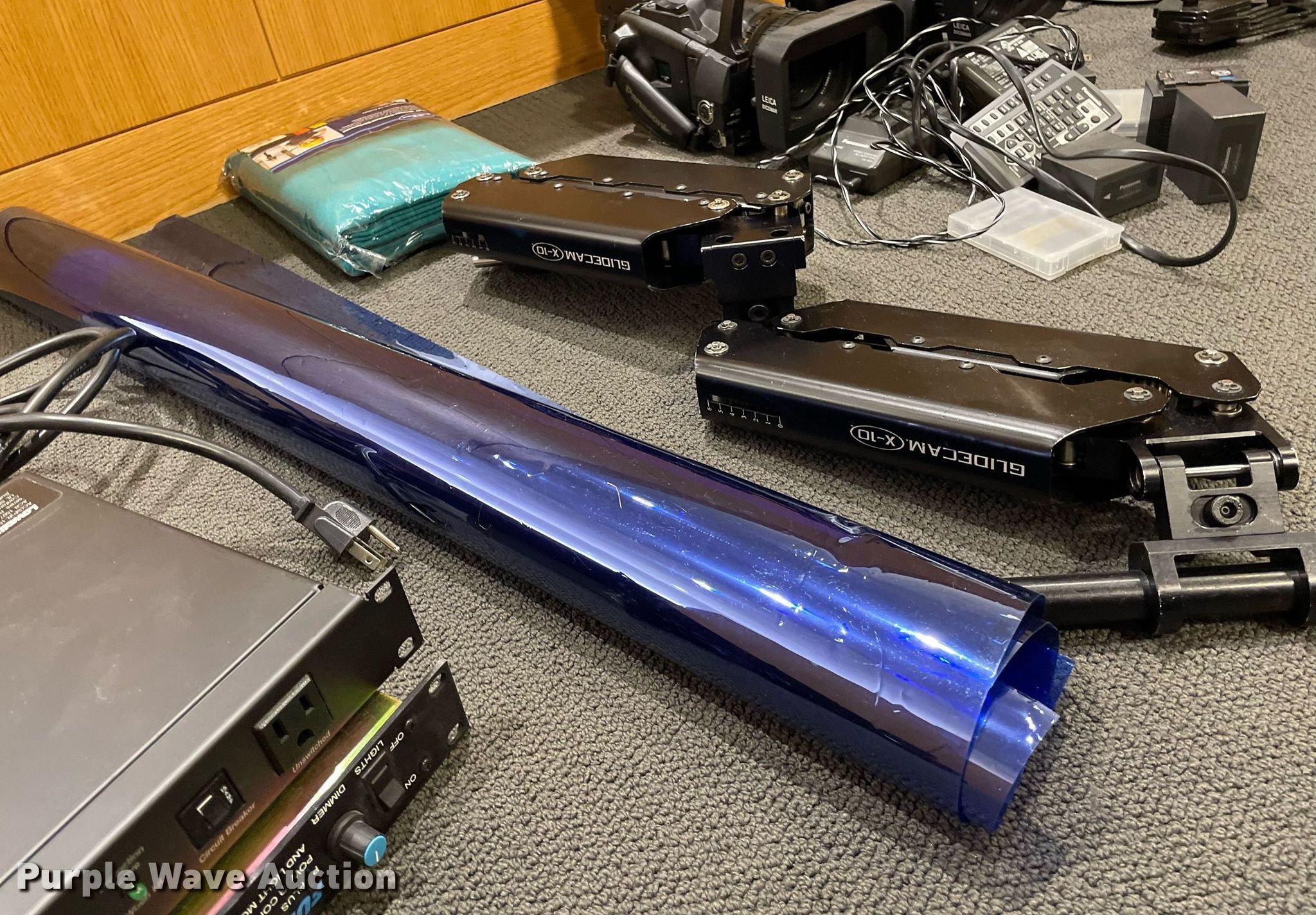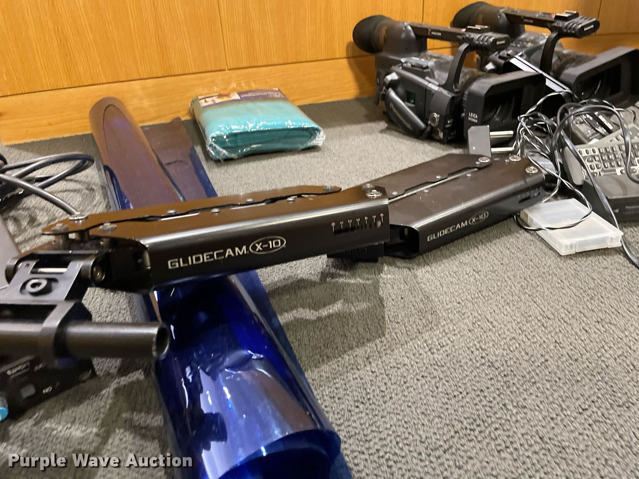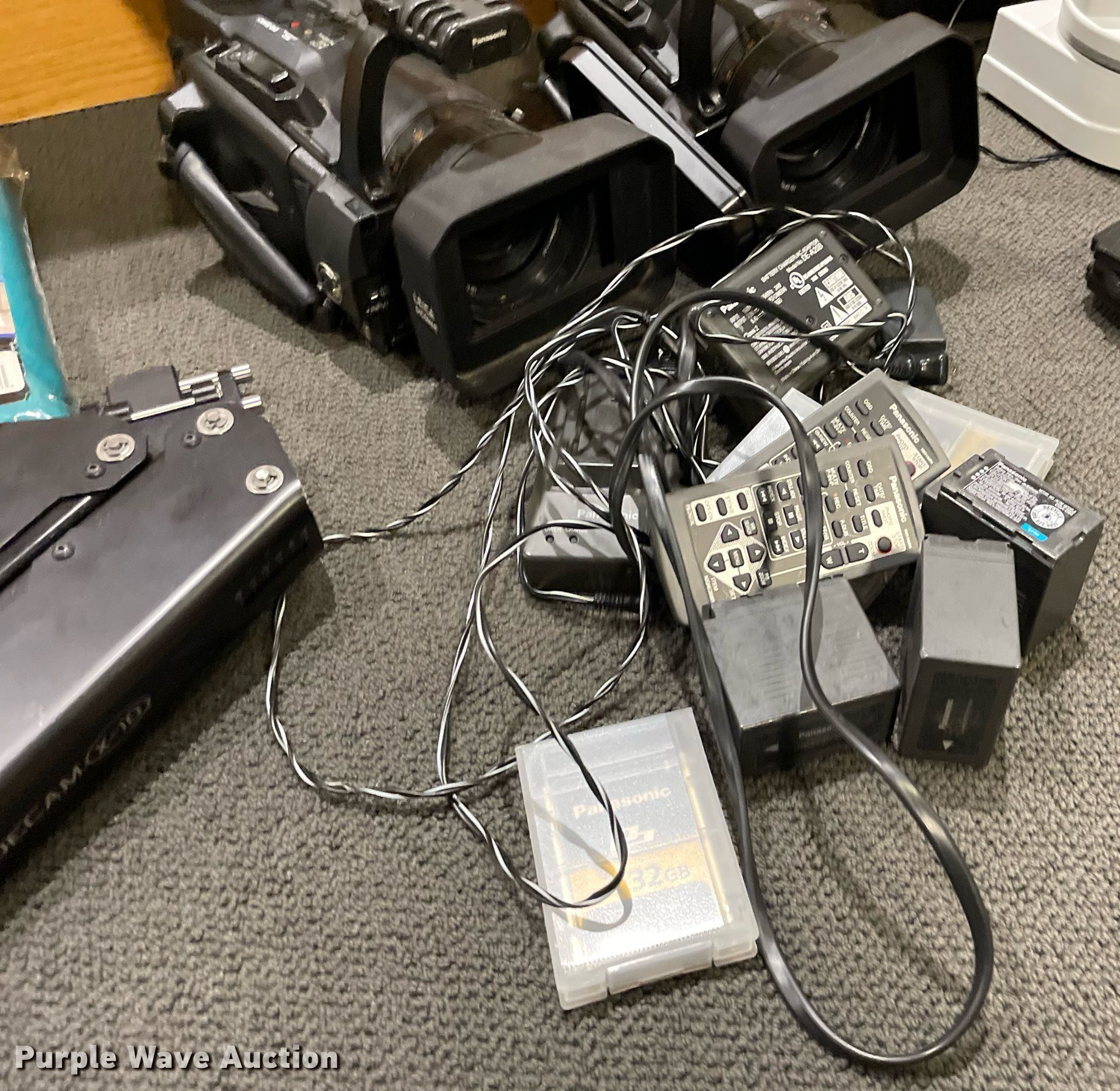 Purple Wave is selling a used Electronics in Kansas. This item is a Electronics with the following: Production equipment, Teleprompter, Camera stabilizer with vest, (2) power distributors, Light gels, Green screen, (2) Panasonic DVC Pro cameras, Video remote cameras, Desk top speakers
