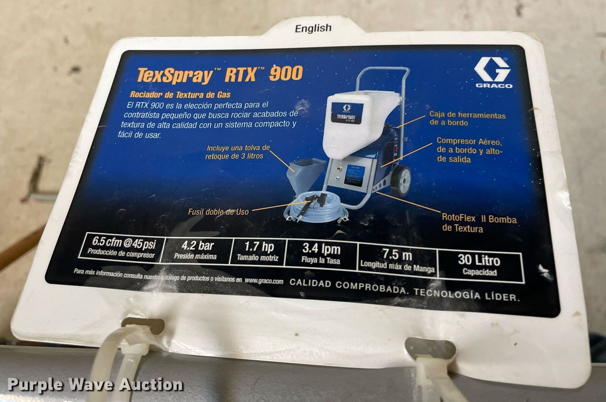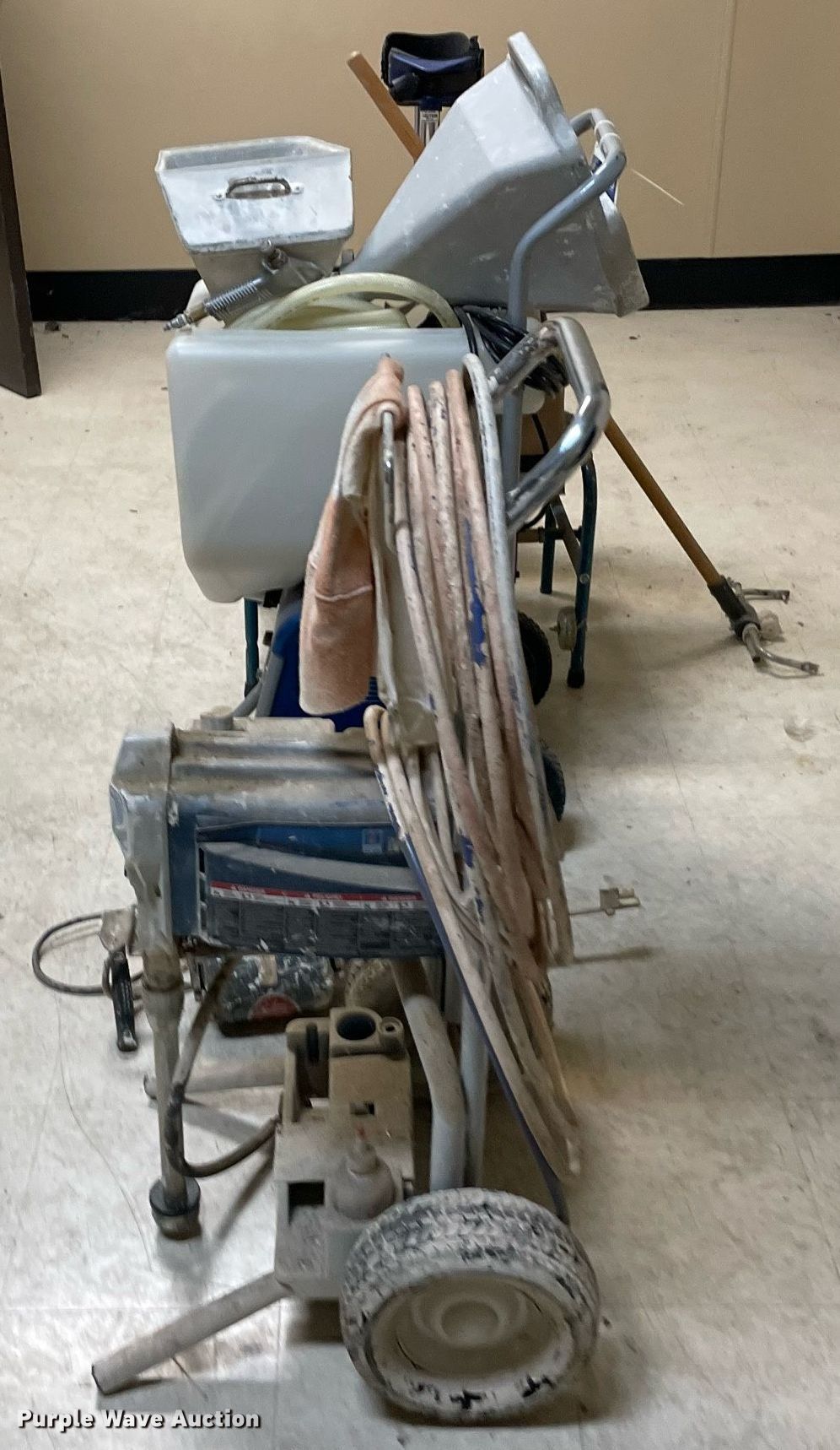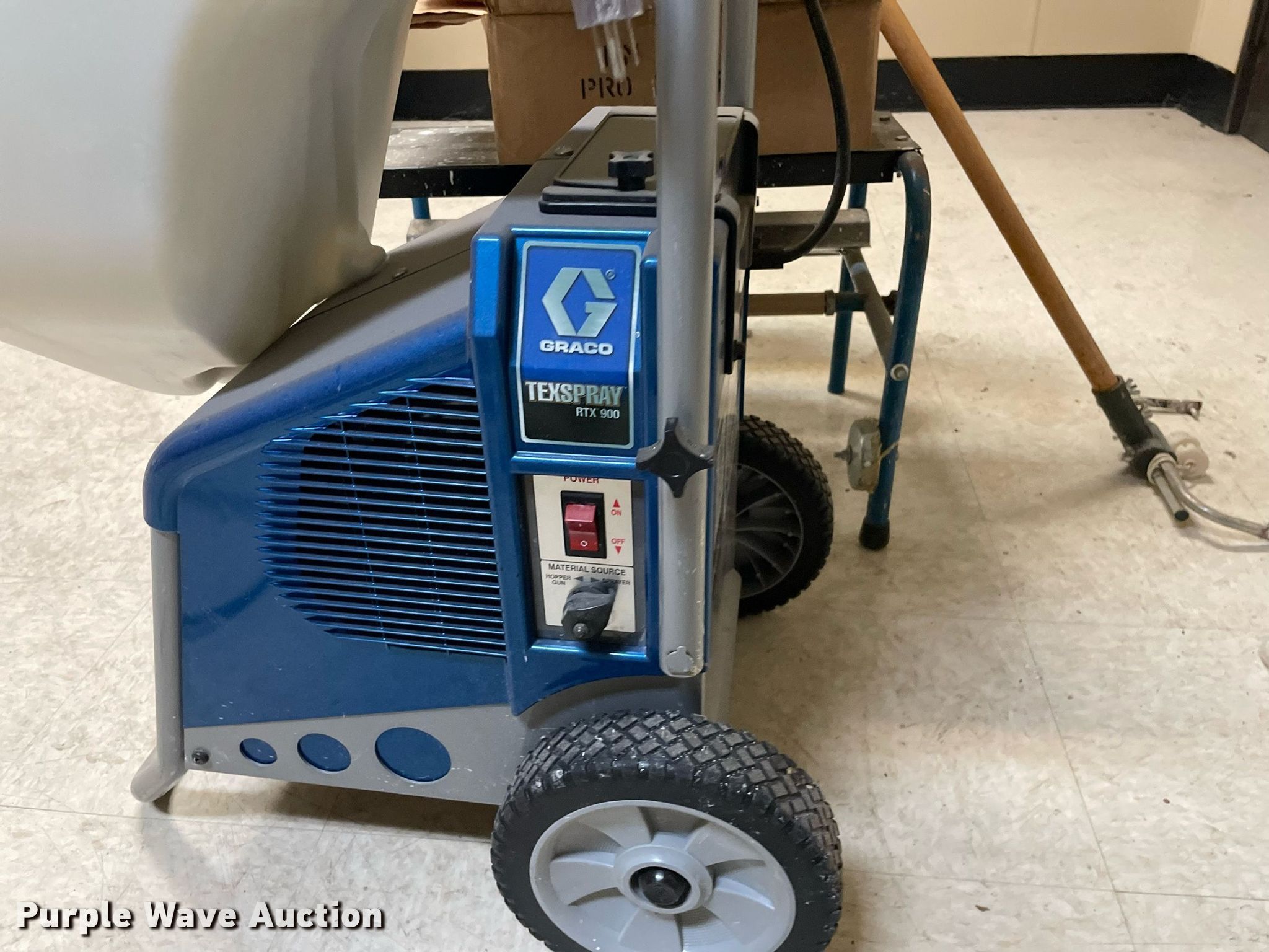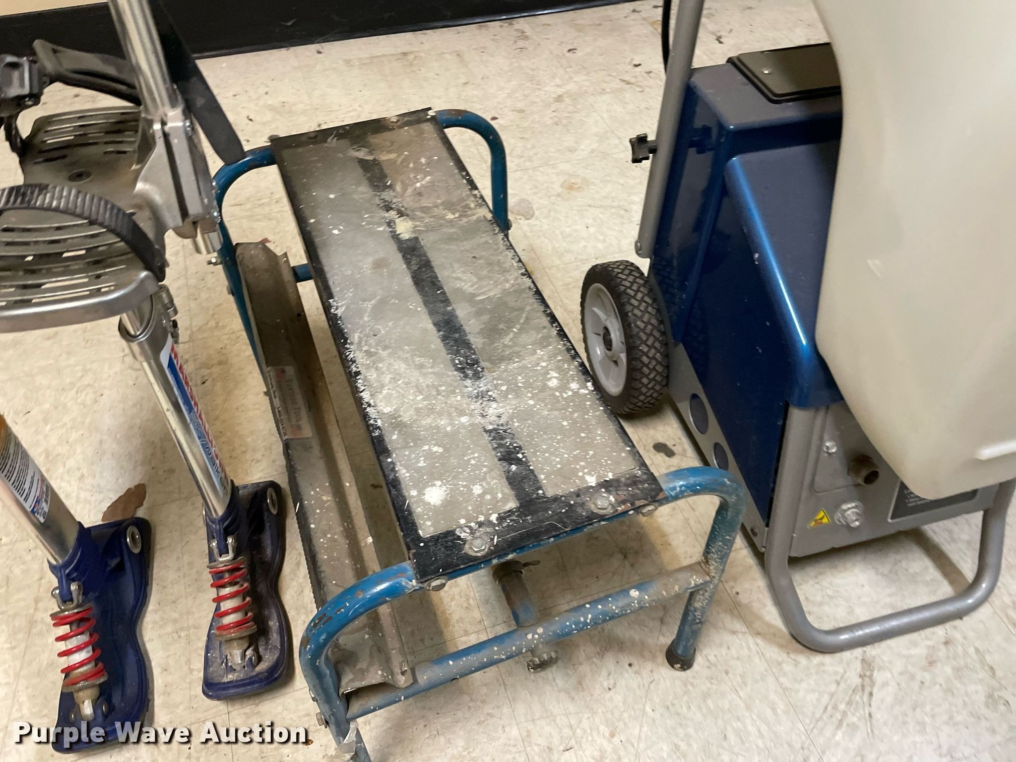 Purple Wave is selling a used Tools in Kansas. This item is a Painting equipment with the following: Graco Texspray RTX900 paint sprayer, Graco Nova smart control paint sprayer, Jetco paint mixer, Paint mitts, Step stool, Marshalltown Skywalker stilts