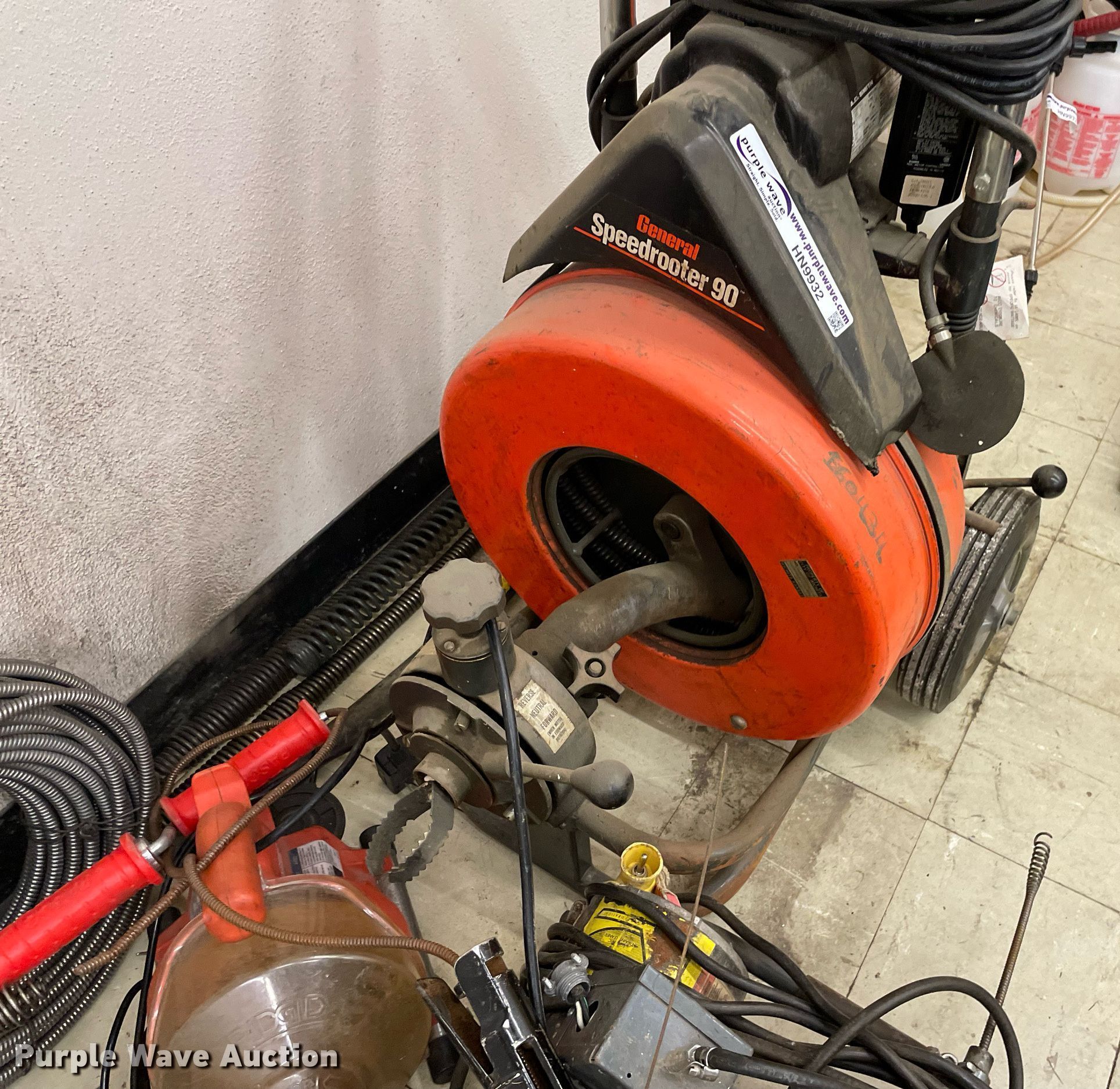 Purple Wave is selling a used Tools in Kansas. This item is a Tools with the following: Sewer plumbing snakes, General Speedrooter 90, Rigid snake, Electric snake, Sewer tape and more