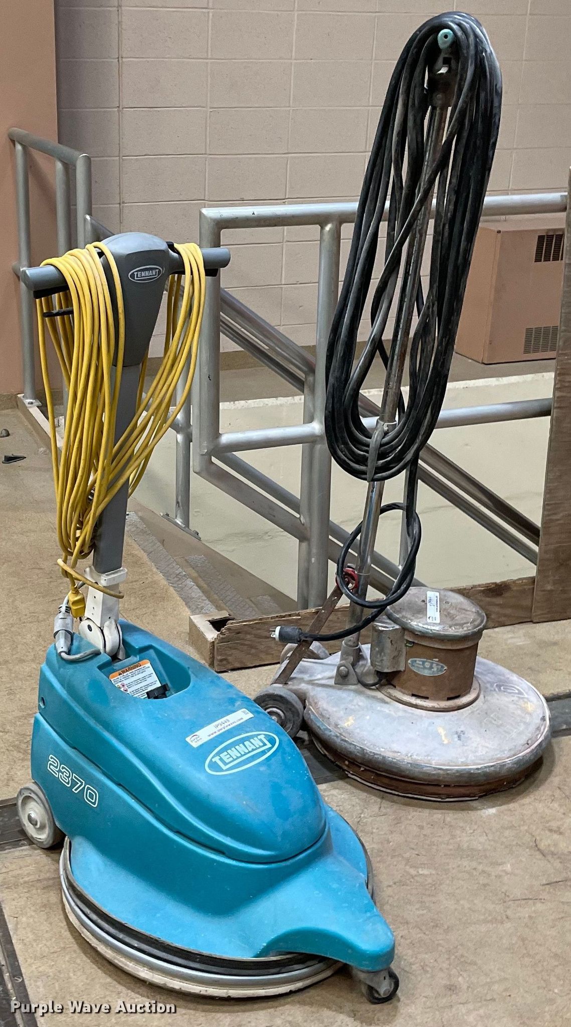 Purple Wave is selling a used Tools in Kansas. This item is a (2) floor scrubbers with the following: Tennant 2370, Diameter: 22", Volts: 120, HILD F, Diameter: 20", Volts: 120