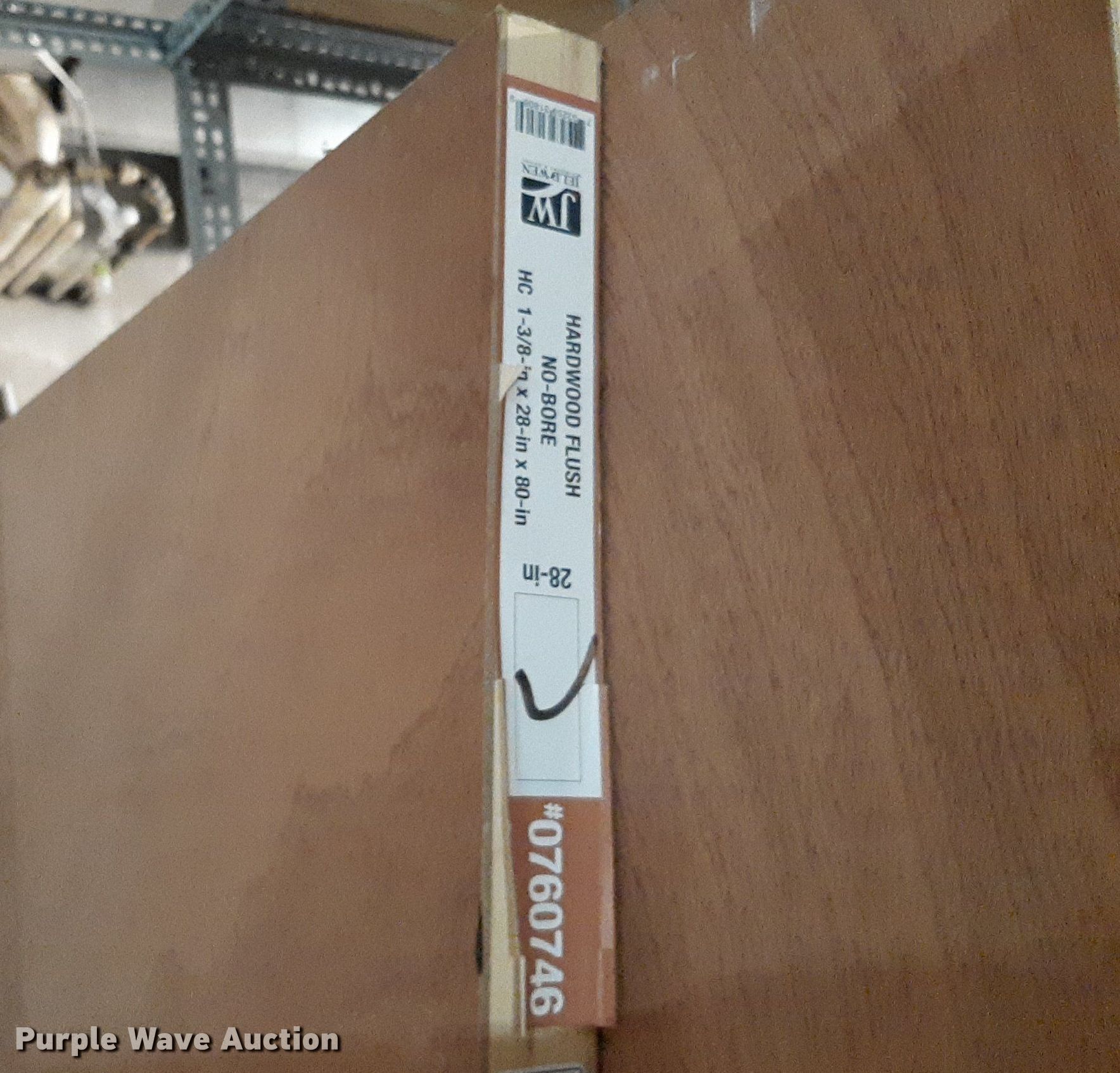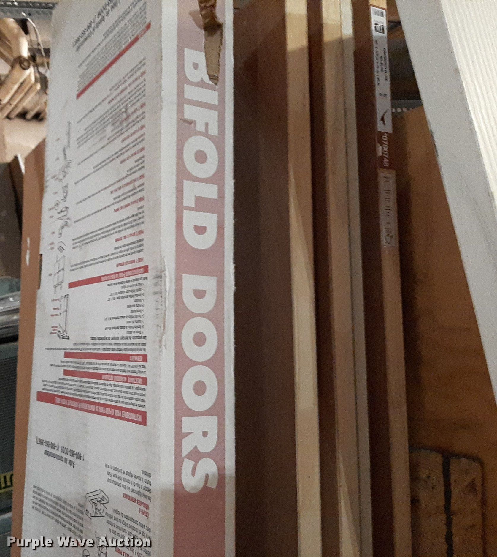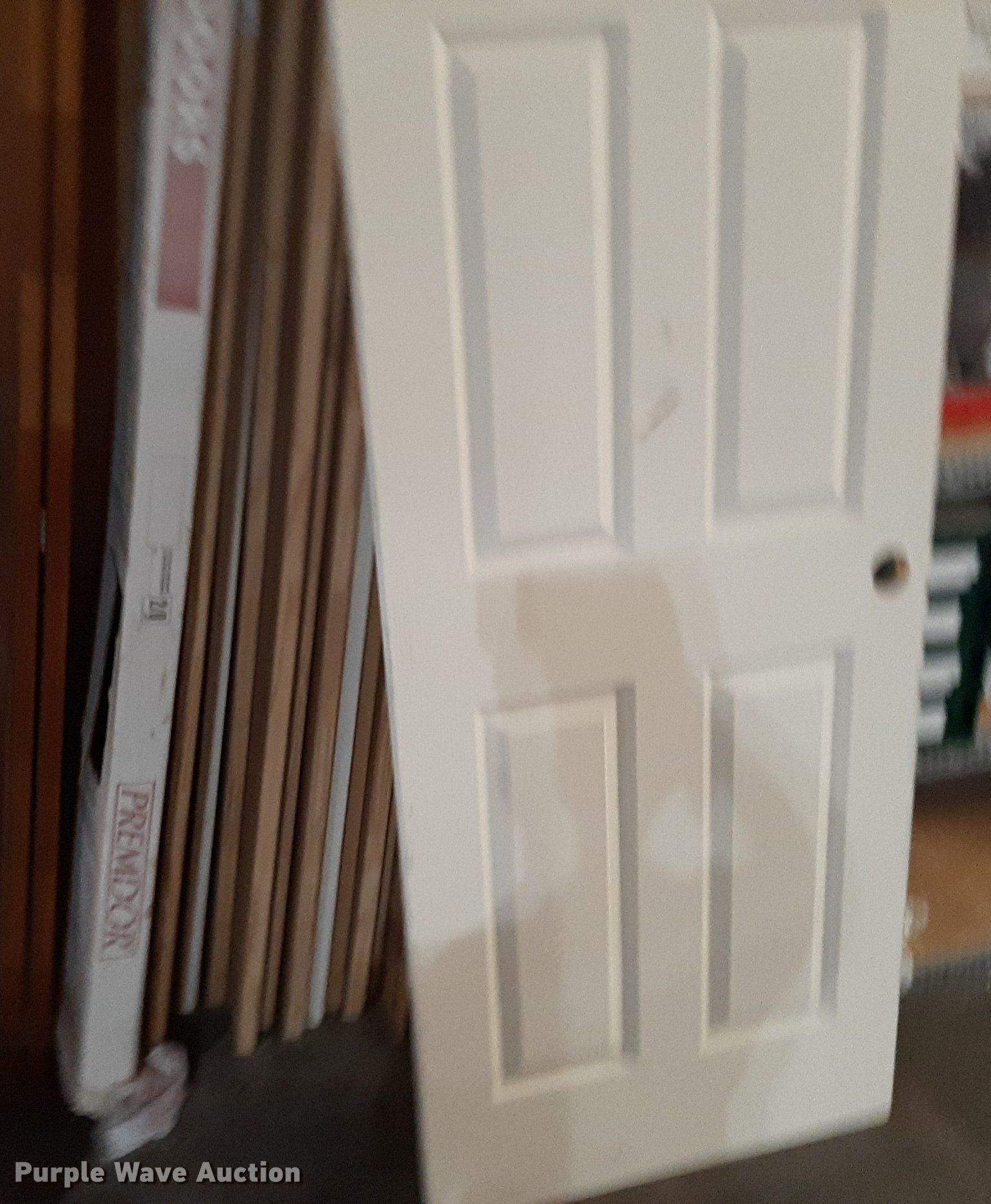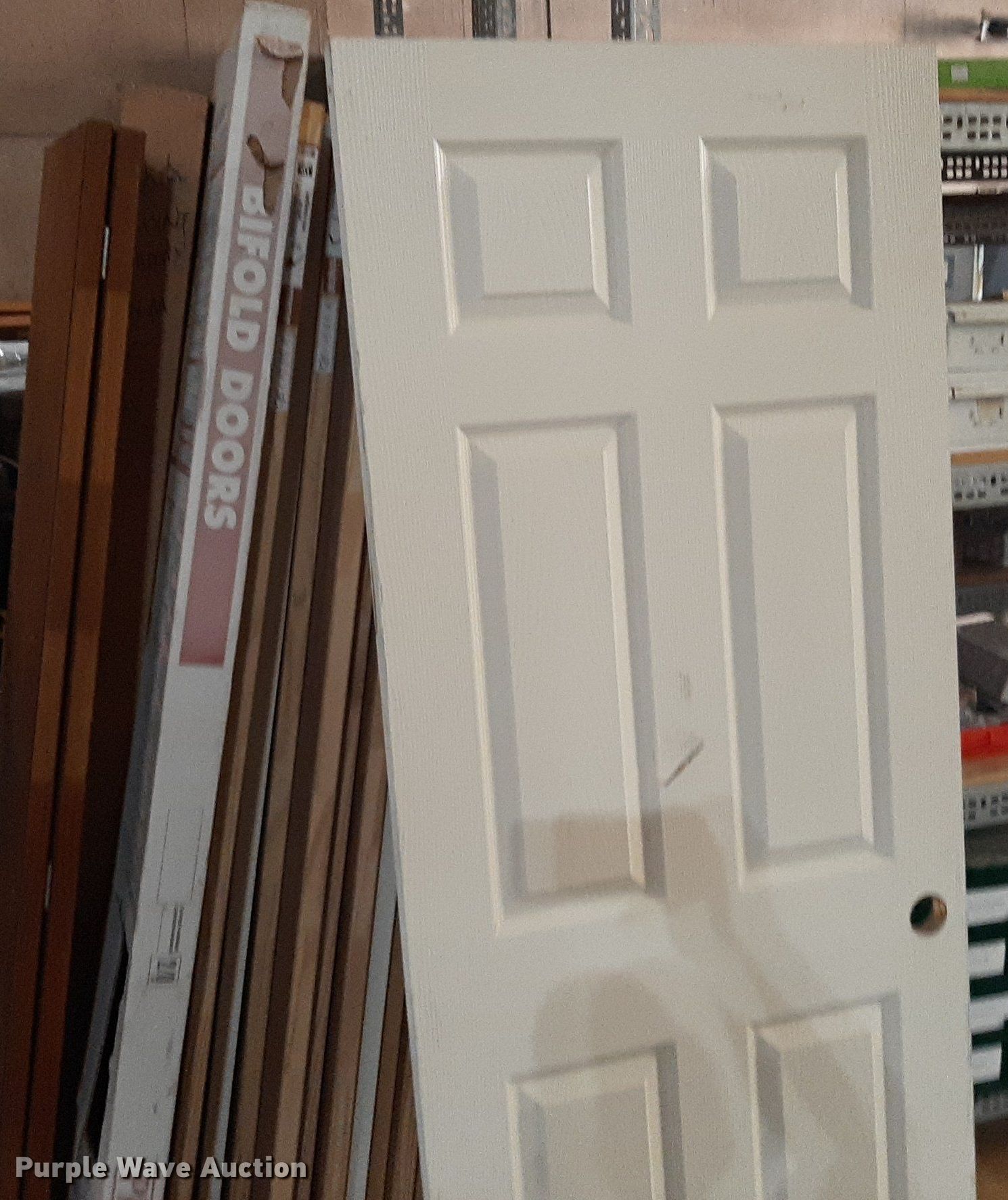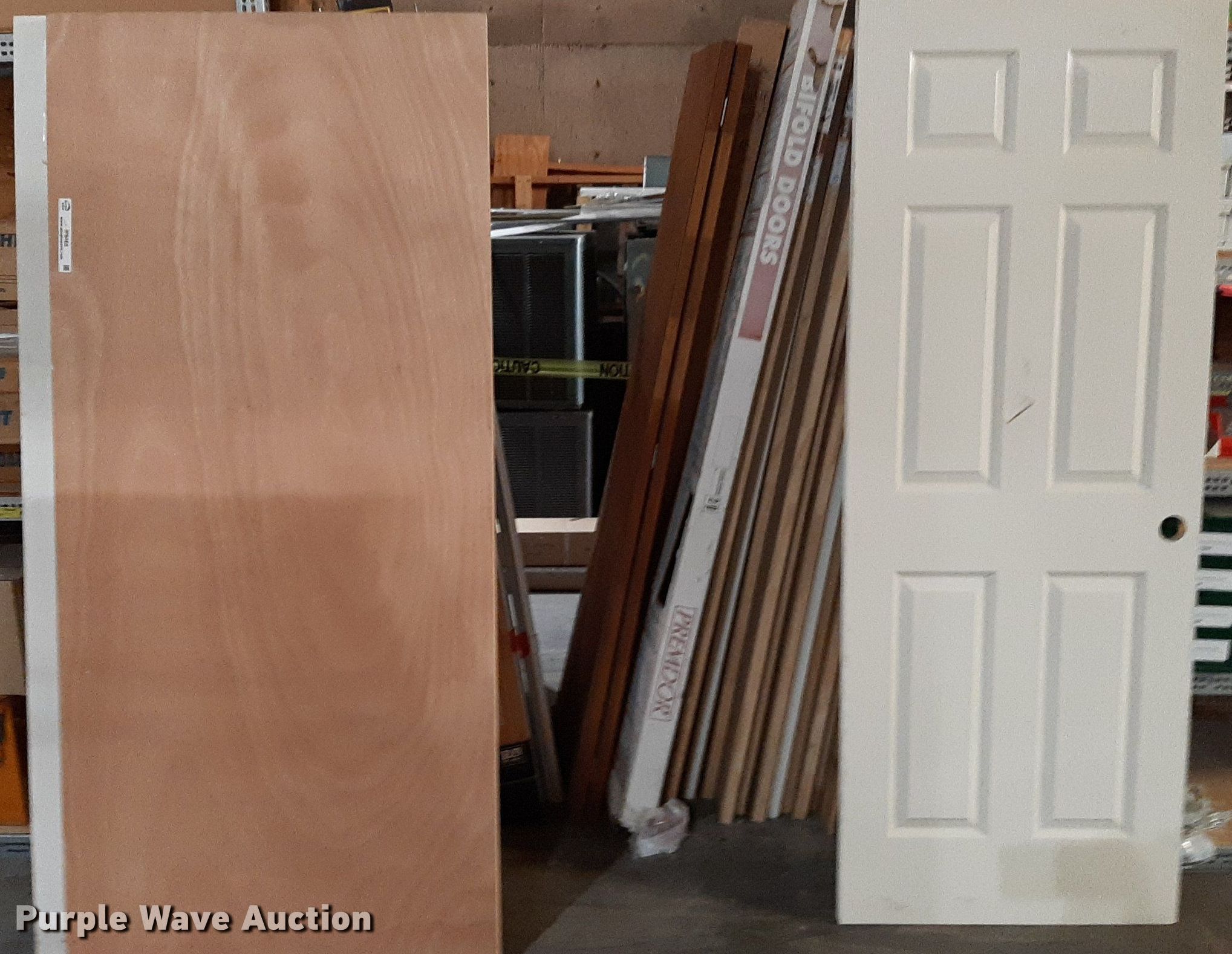 Purple Wave is selling a used Building Materials in Kansas. This item is a (18) interior doors with the following: 36", 30", Raised panel damage, 30", 32", Door frame, 20", Door frame, (6) 32", (2) 28", 34", (2) 32" storm doors, (3) 24" bifold doors