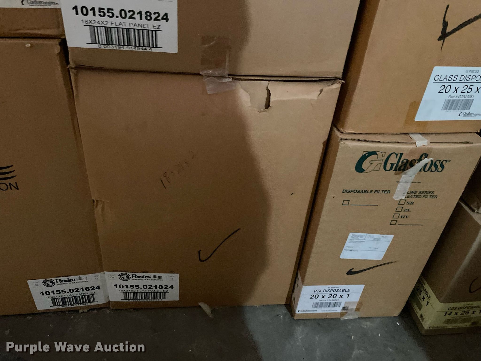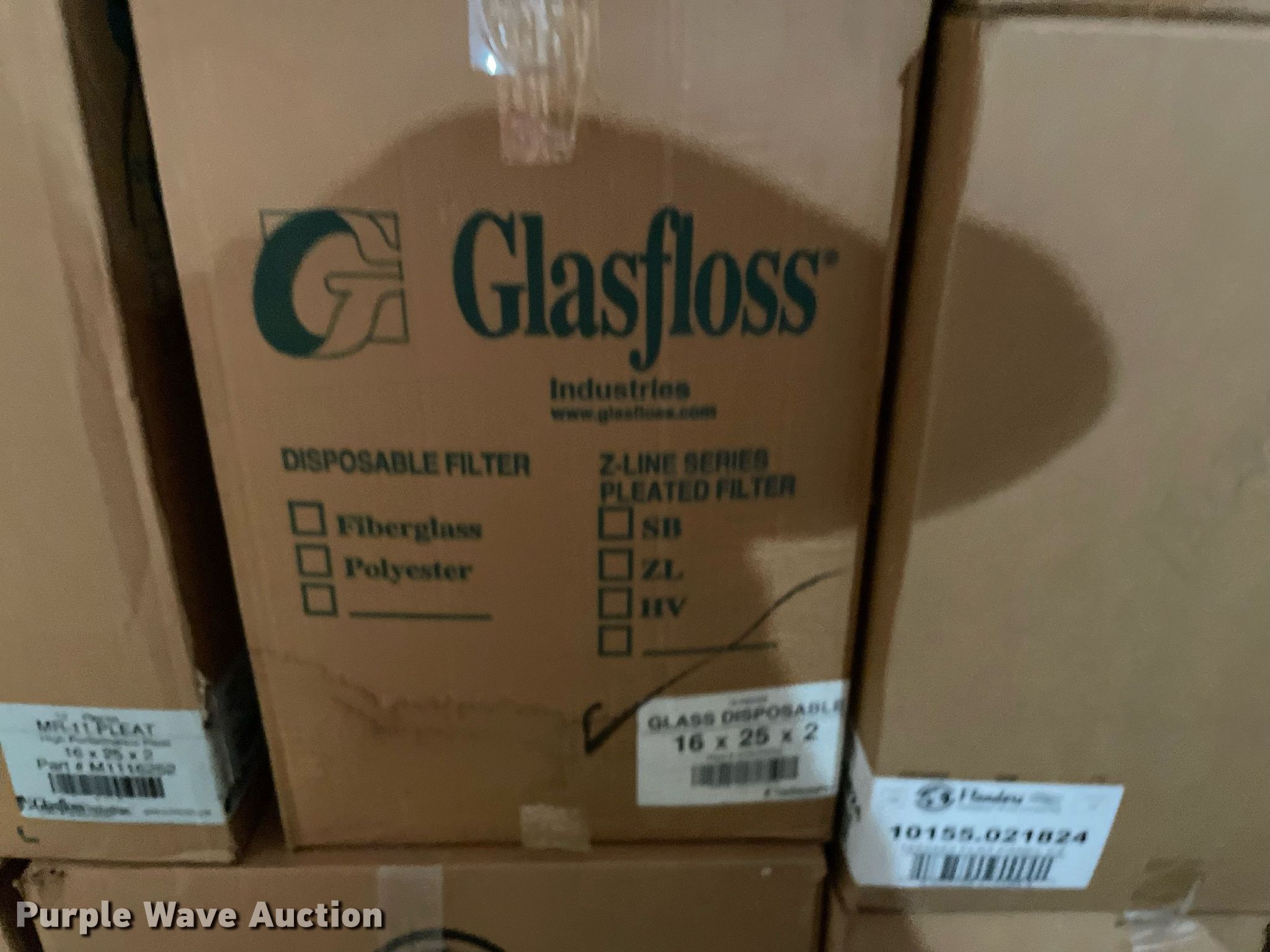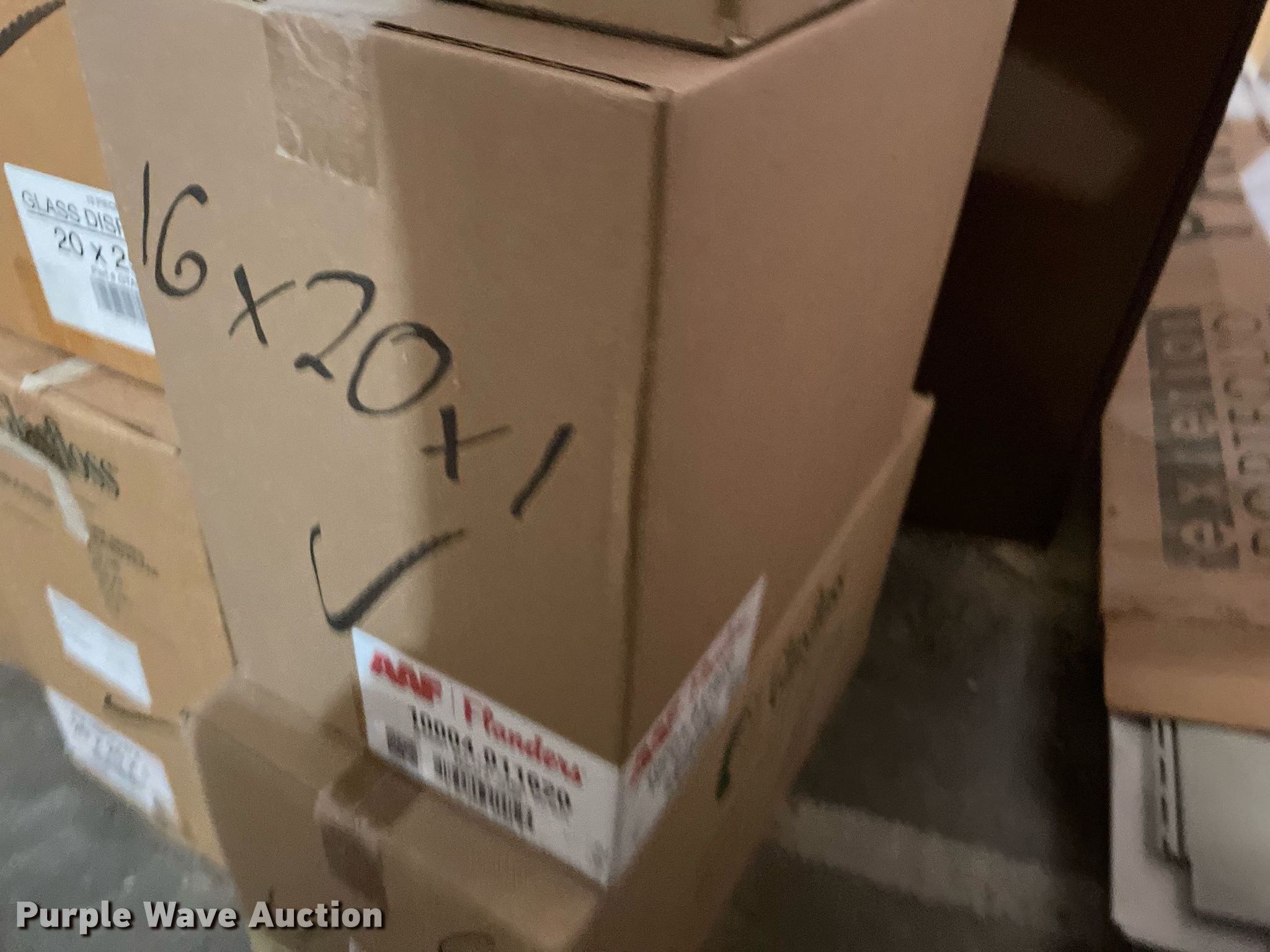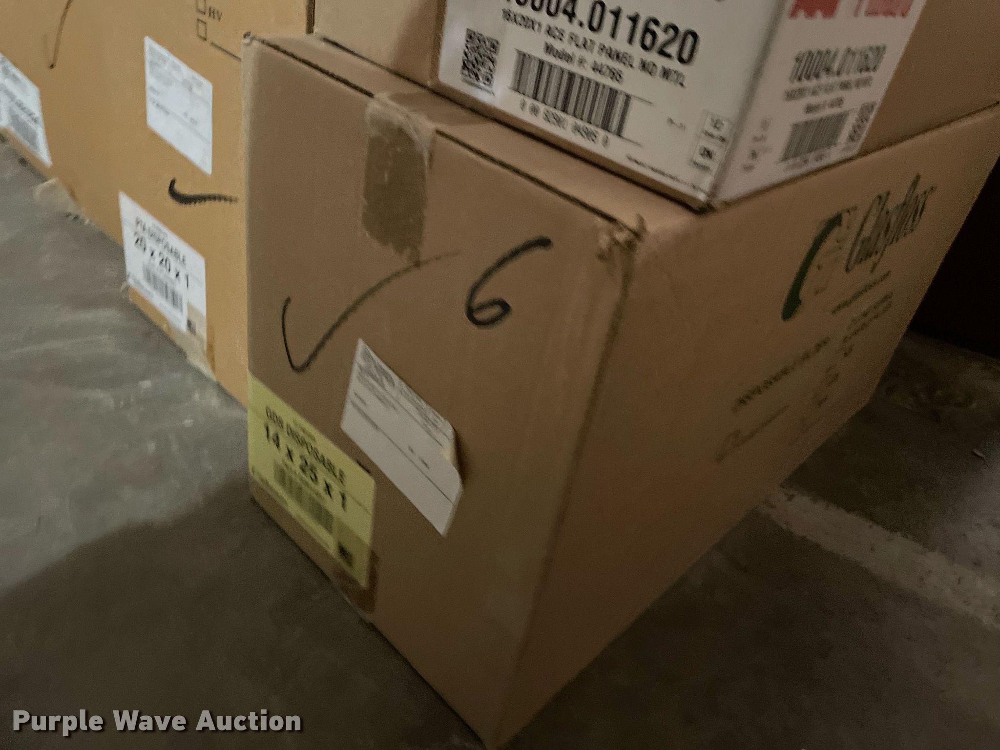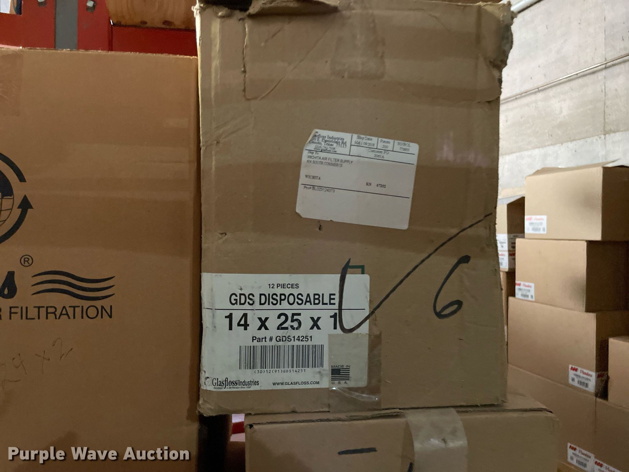 Purple Wave is selling a used Building Materials in Kansas. This item is a Building materials with the following: (16) boxes of air filters, Box of ceiling tile