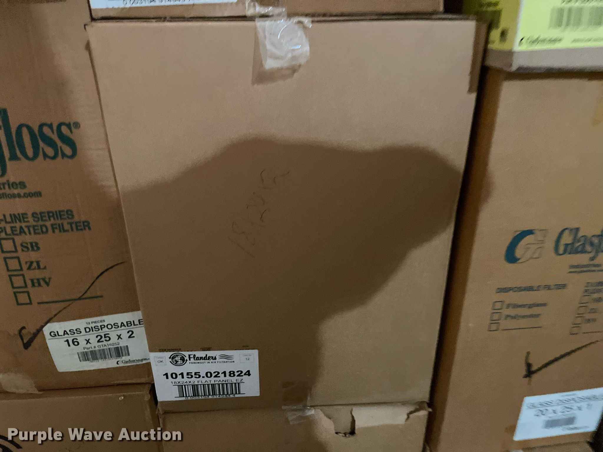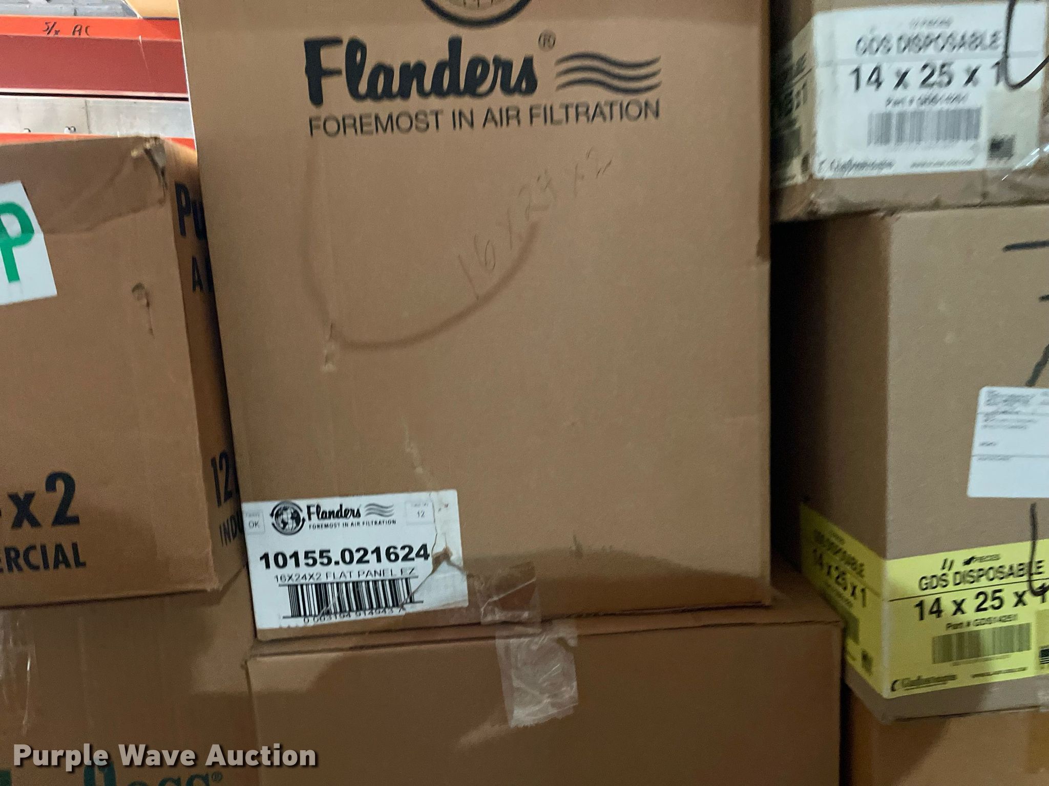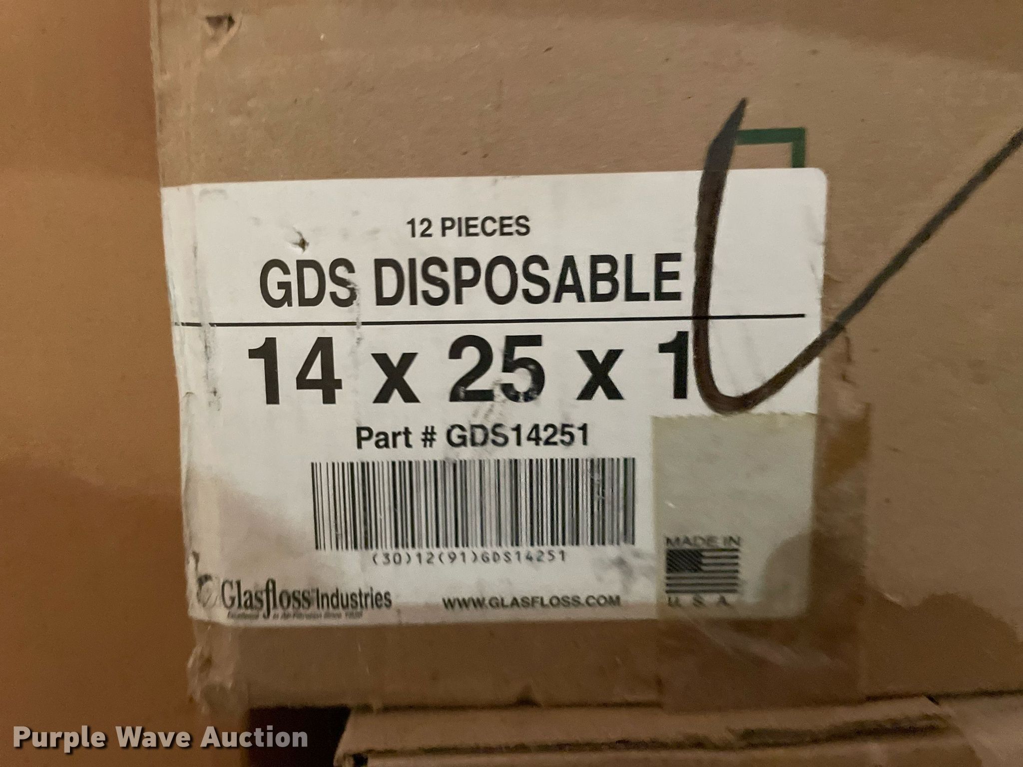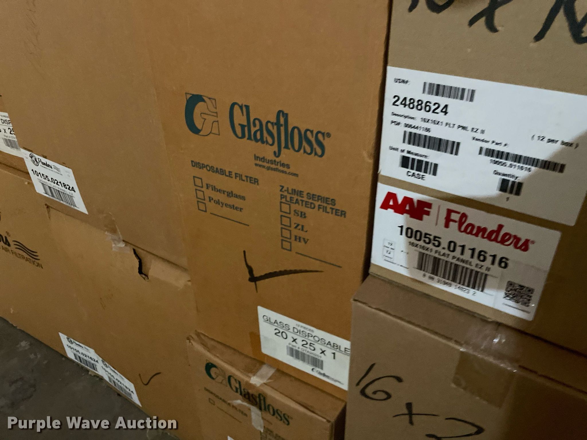 Purple Wave is selling a used Building Materials in Kansas. This item is a Building materials with the following: (16) boxes of air filters, Box of ceiling tile
