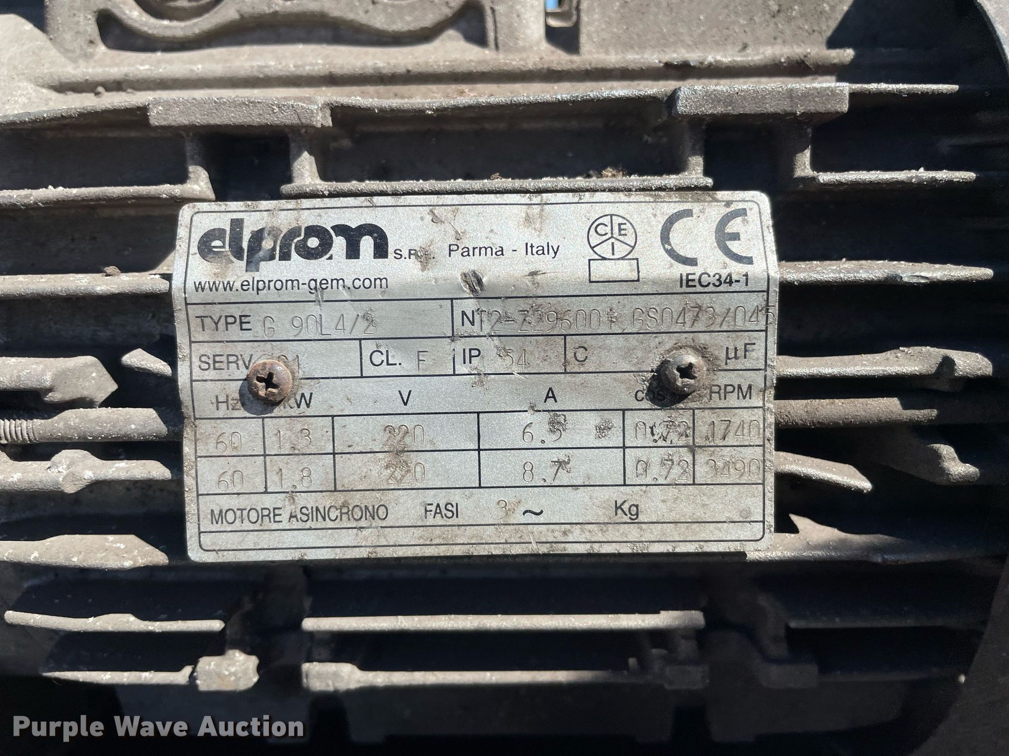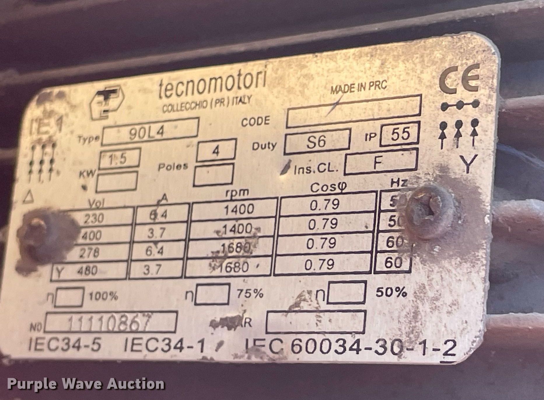 2012 CEMB SM56TXL tire changer. Electric Motor. Tecnomotori 90L4 kW: 2.4/2.9, Volts: 23, Phase: Three, Elpron G 90L4/2. Notes Unknown operating condition. City of Wichita Central Maintenance Facility - Open inspection Sept. 13, 16. 1801 S. McLean. Wichita, KS 67213