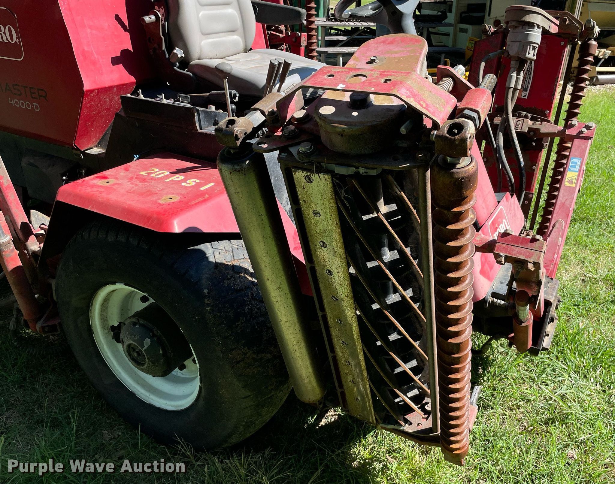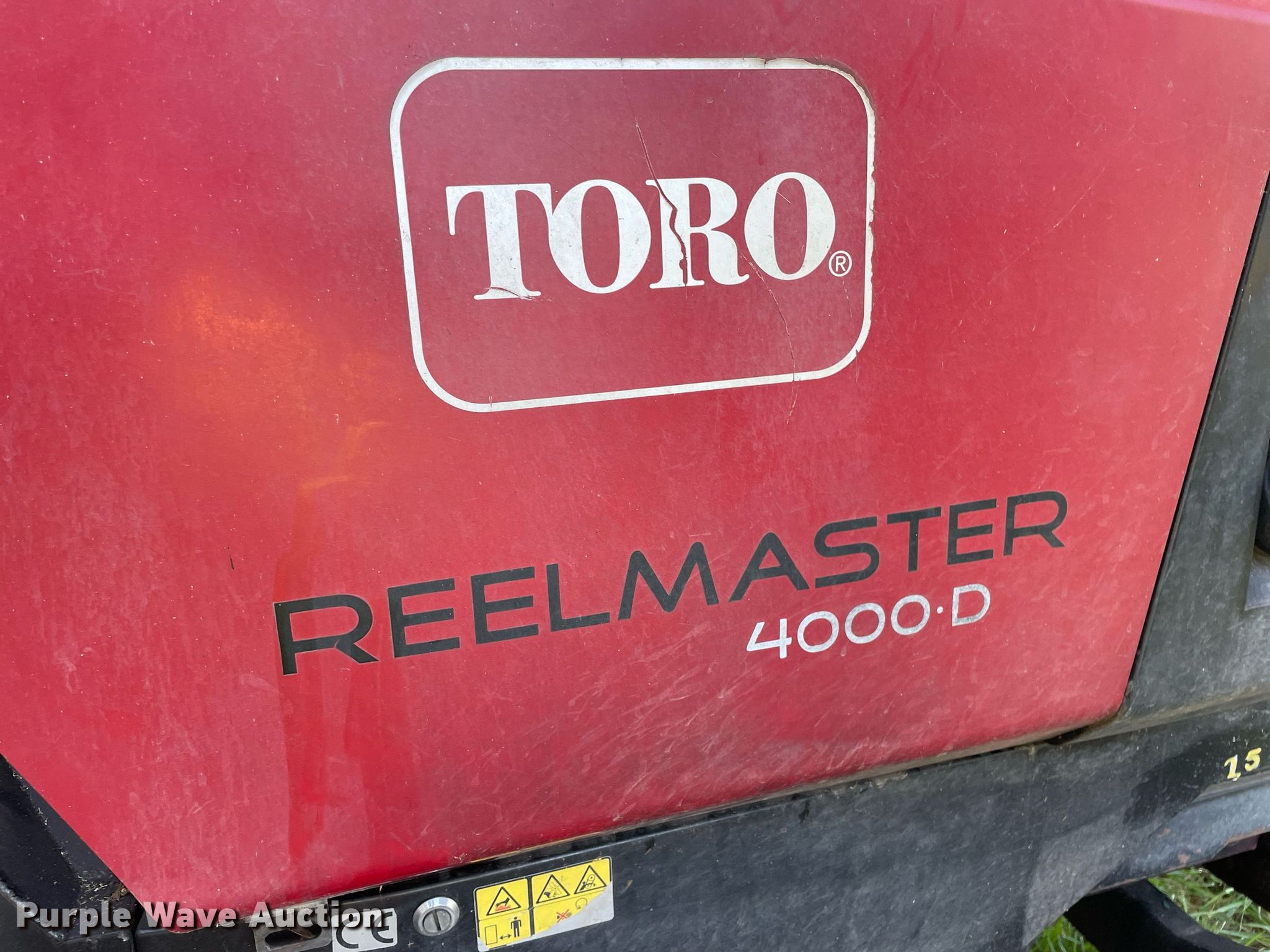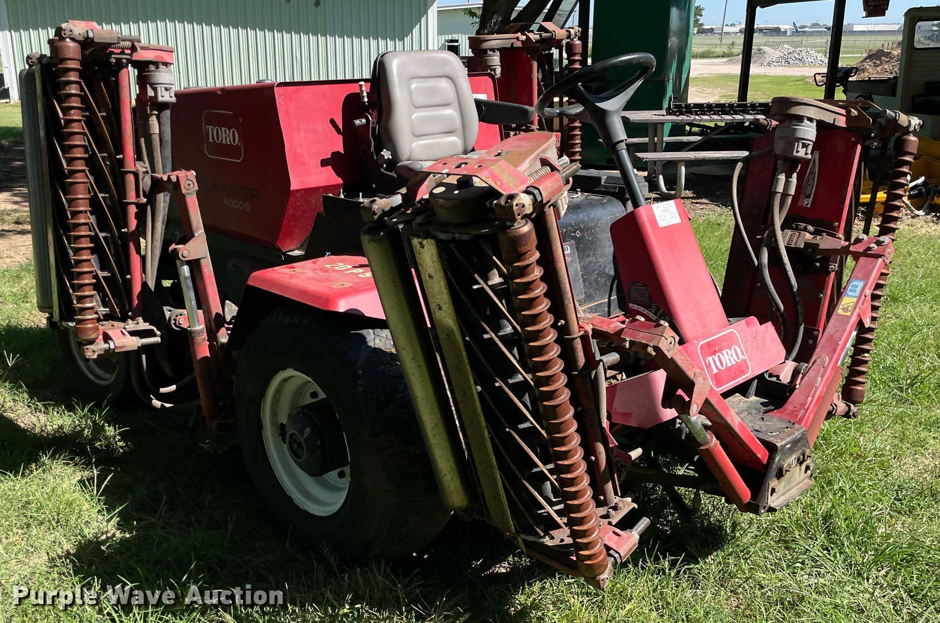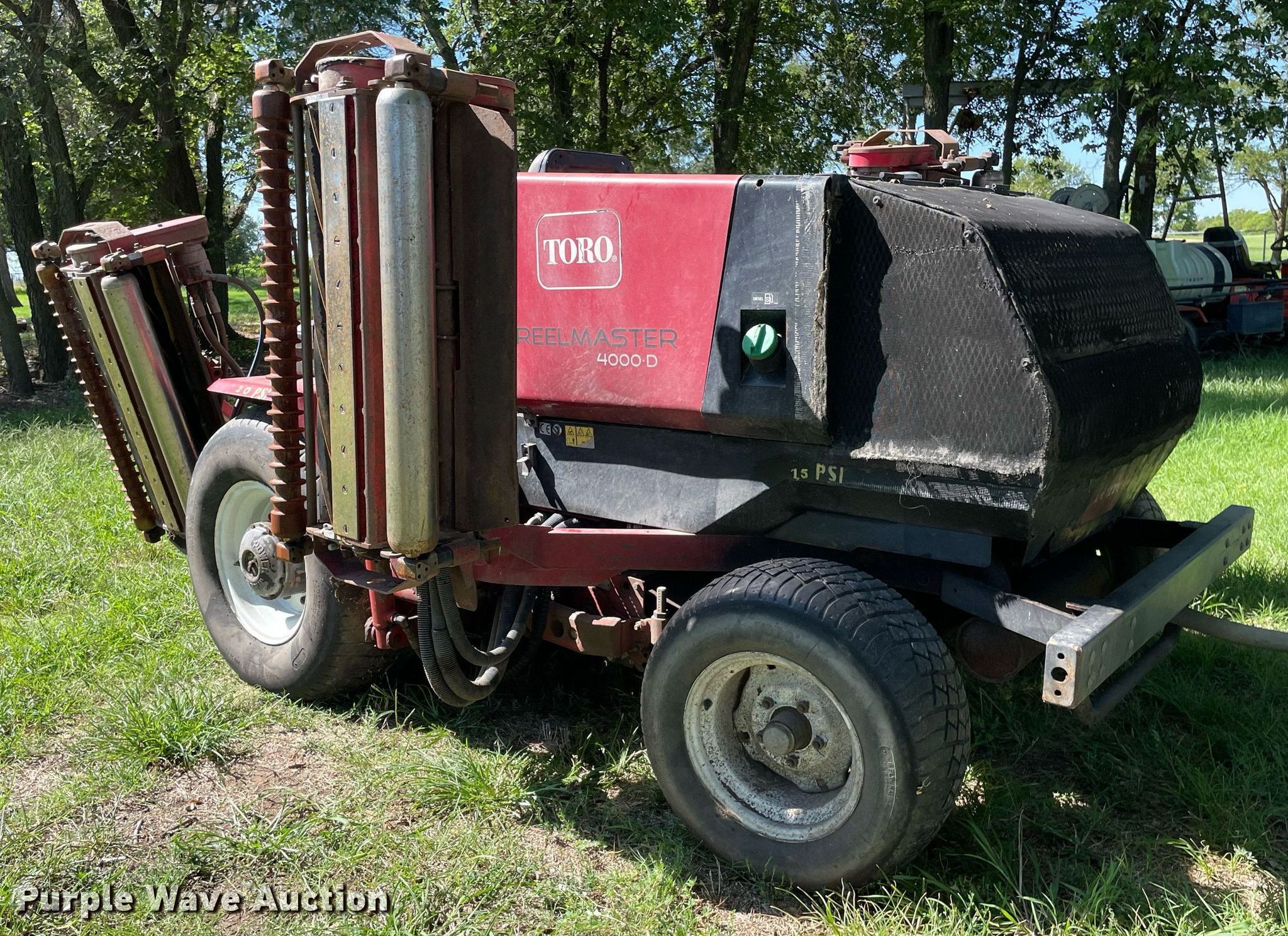 Purple Wave is selling a used Commercial Turf Mower in Kansas. This item is a Toro Reelmaster 400D reel mower with the following: Hours: 4,761 on meter, Cutting width: 138", Serial: 03706-230000223