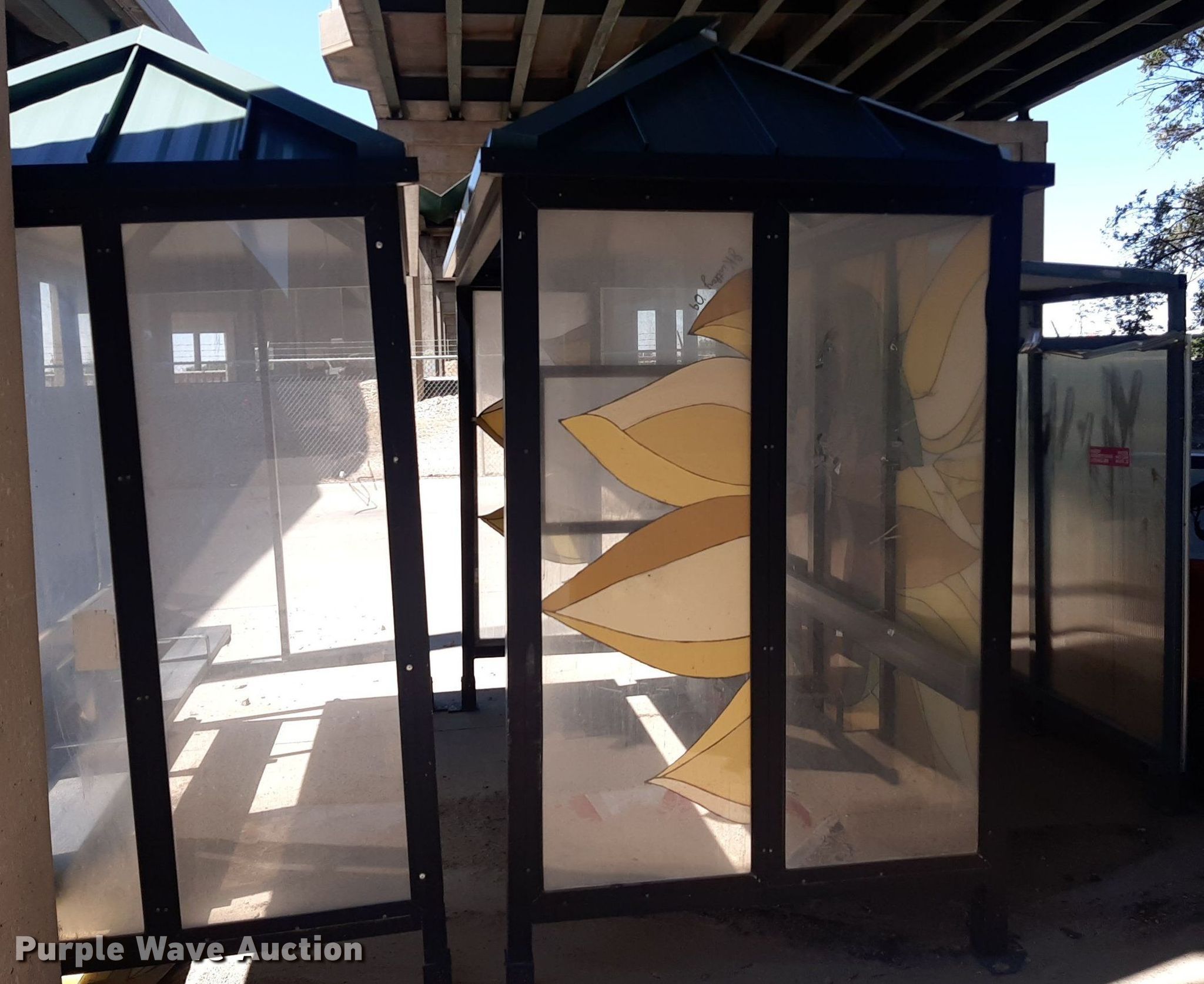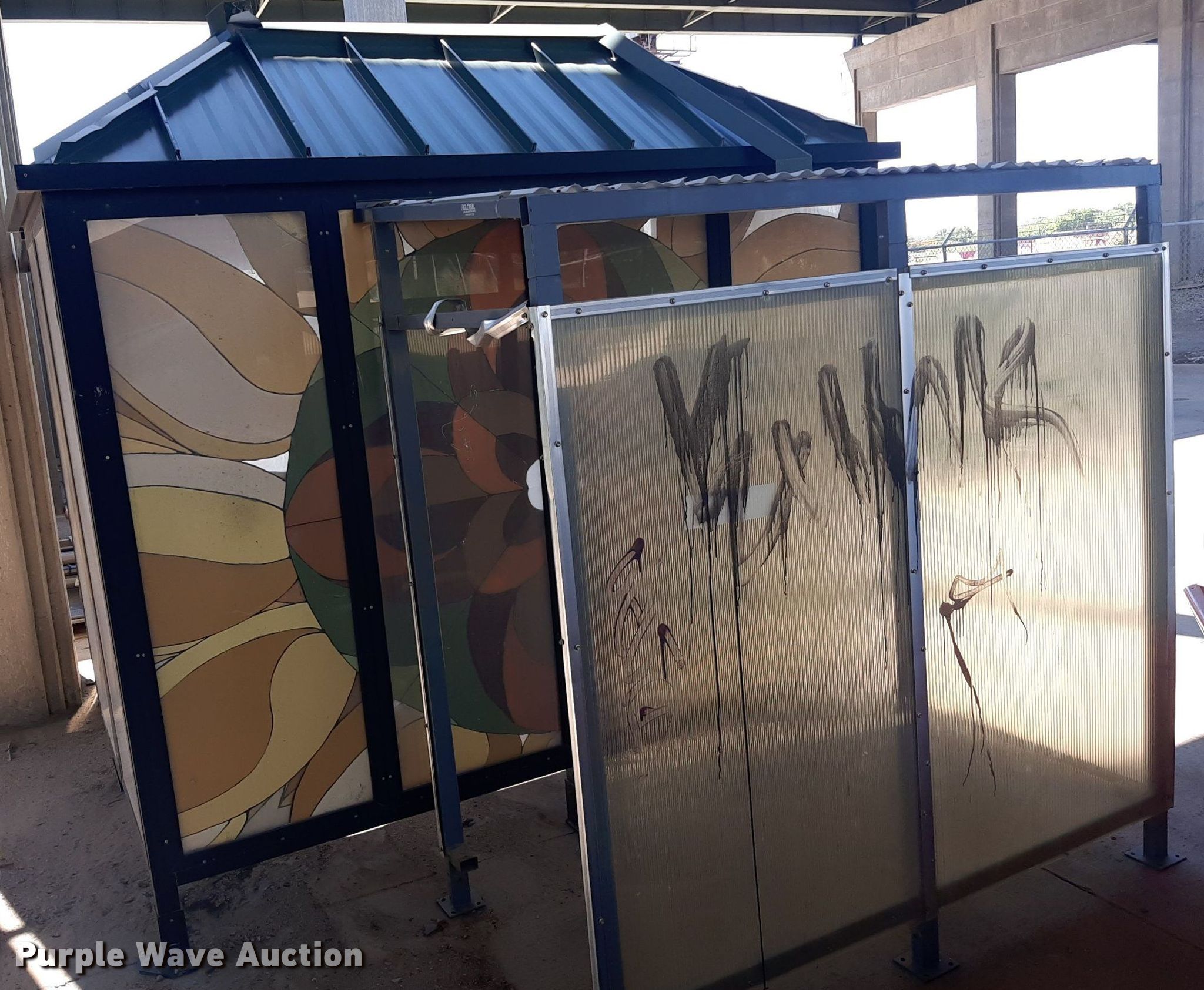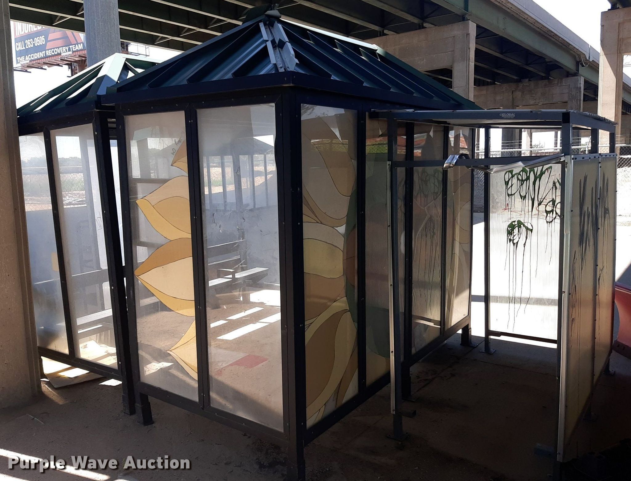 (3) shelters. (2) 9' L x 9' W x 8' H, 6' 4" L x 3' 5" W x 84" H. City of Wichita Transit. 777 E Waterman St. Wichita, KS 67202