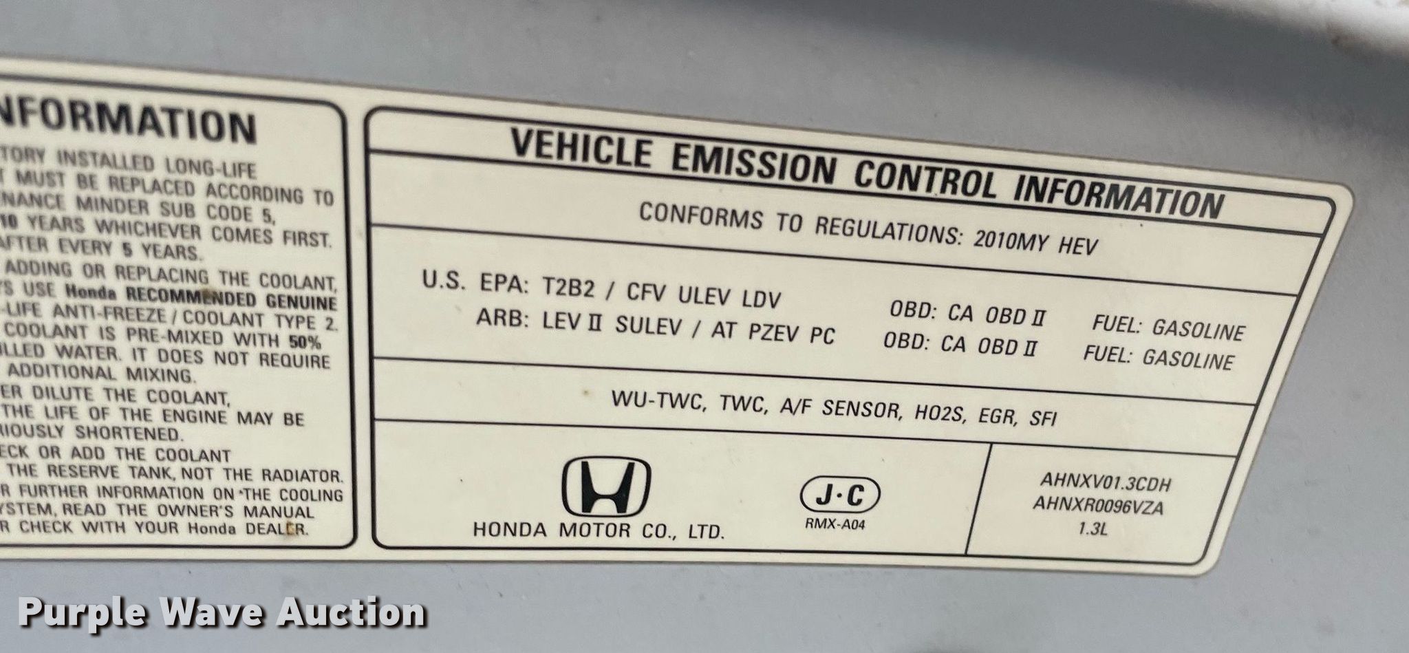 2010 Honda Civic. Miles: 66,641 on odometer, VIN: JHMFA3F23AS005862. Engine Displacement: 1.3L L4 SOHC, Cylinders: 4, Fuel type: Hybrid. Transmission Automatic. Interior AC, Heat, Power windows, Power locks, Cruise control. Tires Size: 195/65R15. Notes Contents not included, Decals will be removed prior to auction, Dash warning indicator: TPMS. Kansas title. City of Wichita Transit. 777 E Waterman St. Wichita, KS 67202