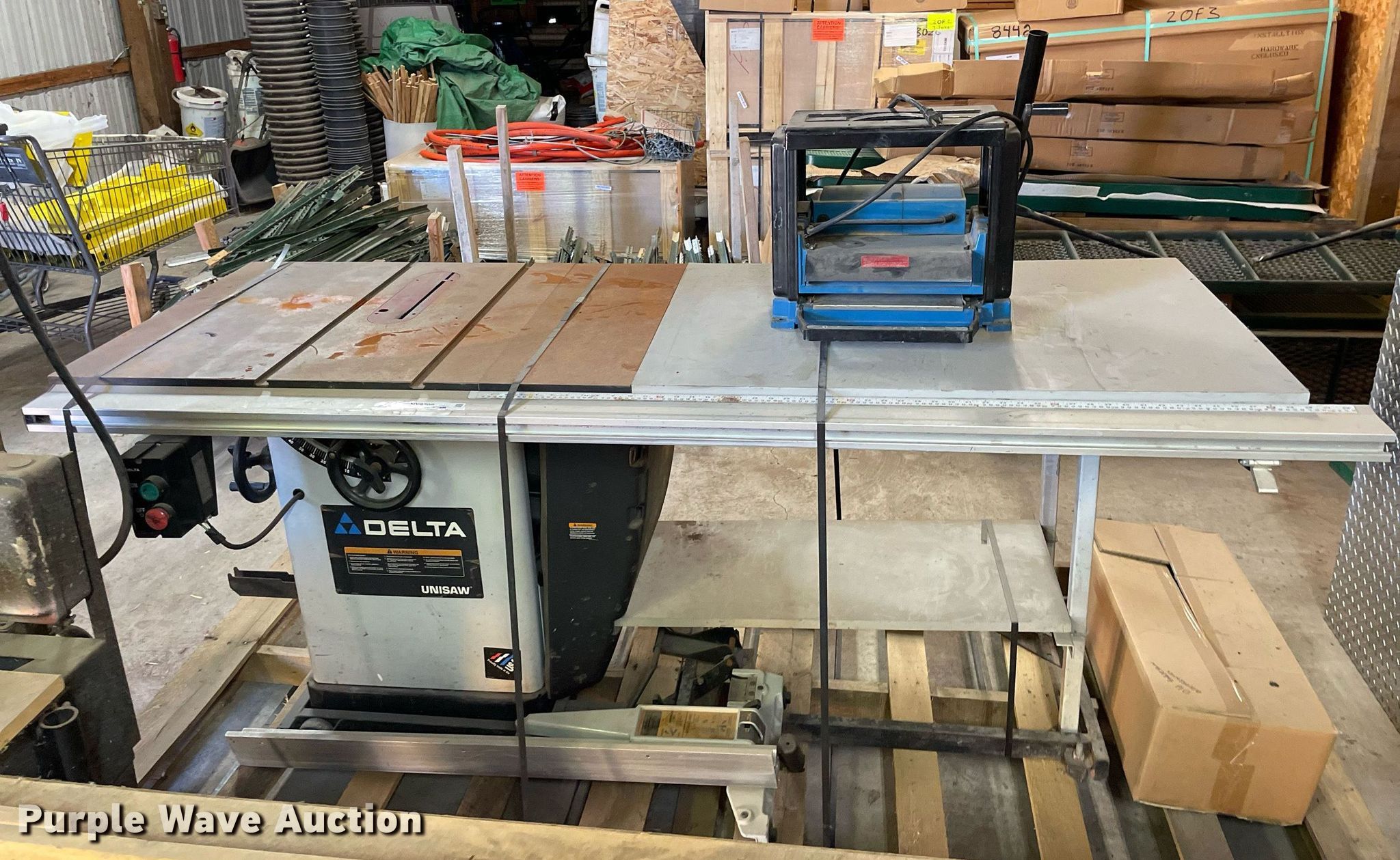 Purple Wave is selling a used Tools in Kansas. This item is a Delta unisaw with the following: Volts: 230, Phase: Single