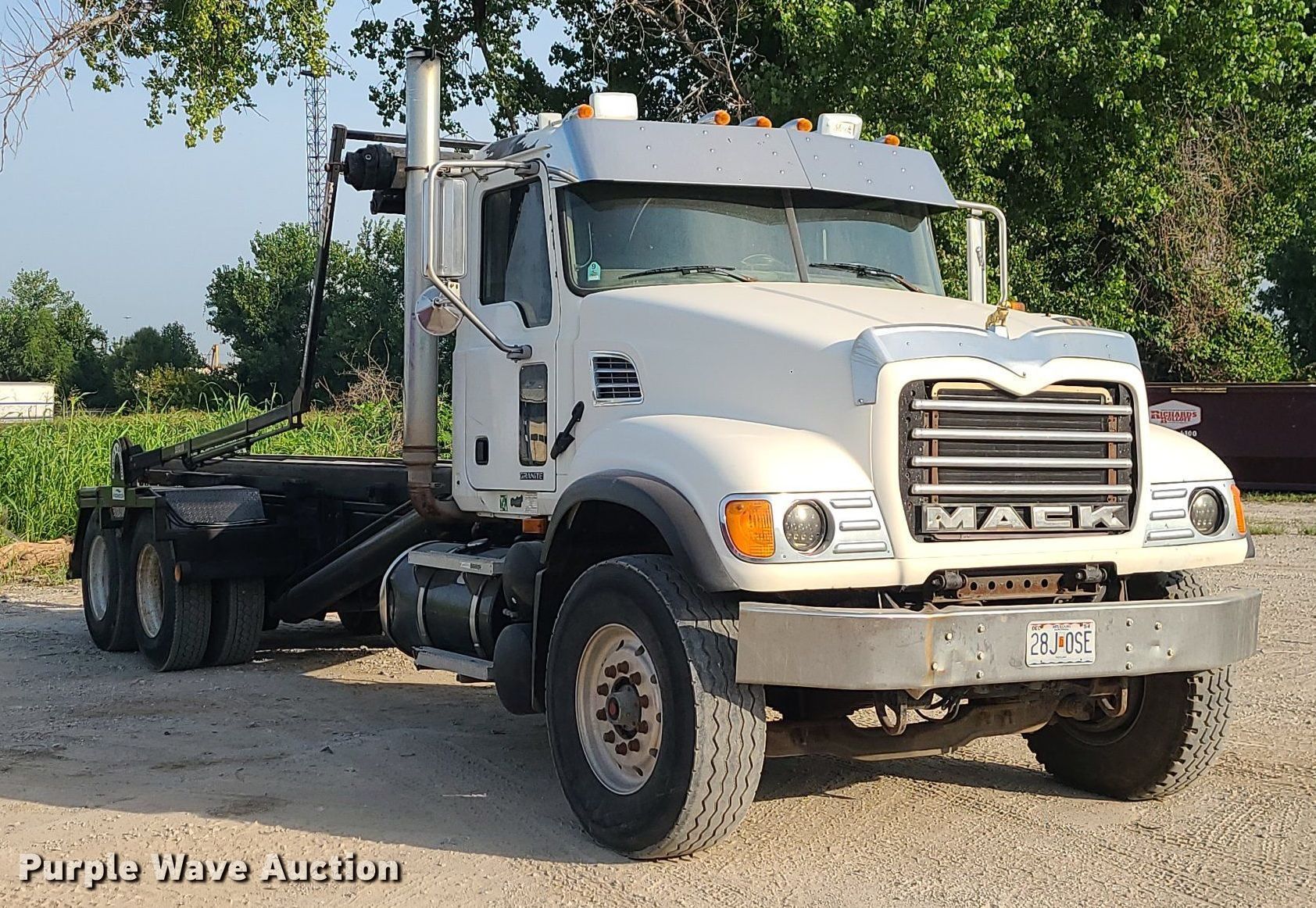 Purple Wave is selling a used Rollback or Tow Truck in Missouri. This item is a 2006 Mack CV713 roll-off container truck with the following: Miles: 185,714 on odometer, Hours: 25,088 on meter, VIN: 1M2AG11C26M025266