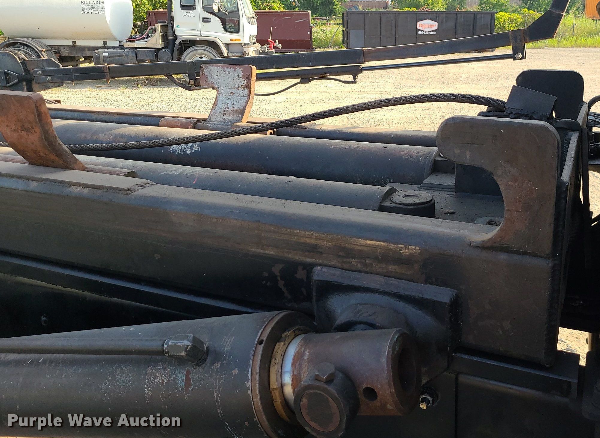2006 Mack CV713 roll-off container truck. Miles: 185,714 on odometer, Hours: 25,088 on meter, VIN: 1M2AG11C26M025266. Engine Displacement: 12.0L, Cylinders: 6, Fuel type: Diesel. Transmission Mack Maxitorque, Manual, Speed: 10. Chassis Axles: Tandem, Suspension: Camelback, Brakes: Air, PTO. Interior AC, Heat. Features Roll-off bed 23', Roll tarp, Ram: Double. Tires Front: 315/80R22.5, Rear: 11R22.5. Notes Hydraulic cylinder leak. Missouri title. Title distribution may be delayed up to 14 days from verification of funds. Richards Construction Company. 4910 Gardner Ave. Kansas City, MO 64136