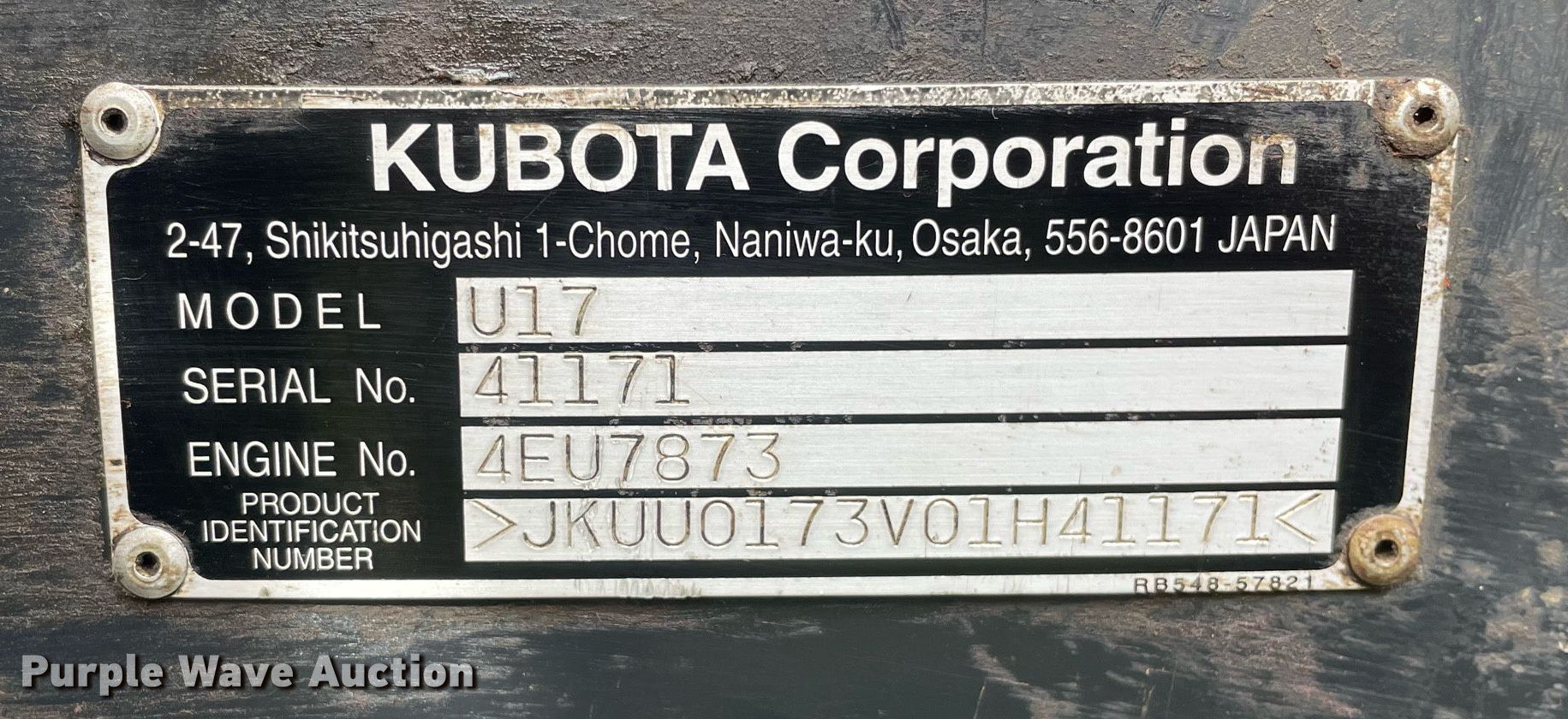 Purple Wave is selling a used Mini Excavator in Illinois. This item is a 2015 Kubota U17 mini excavator with the following: Hours: 2,626 on meter, Serial: 41171