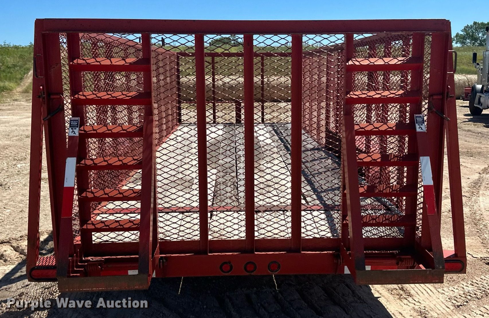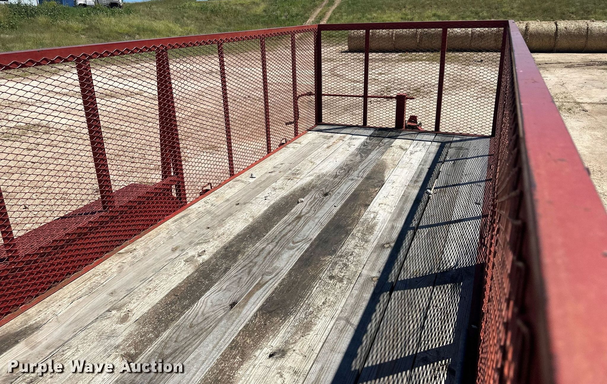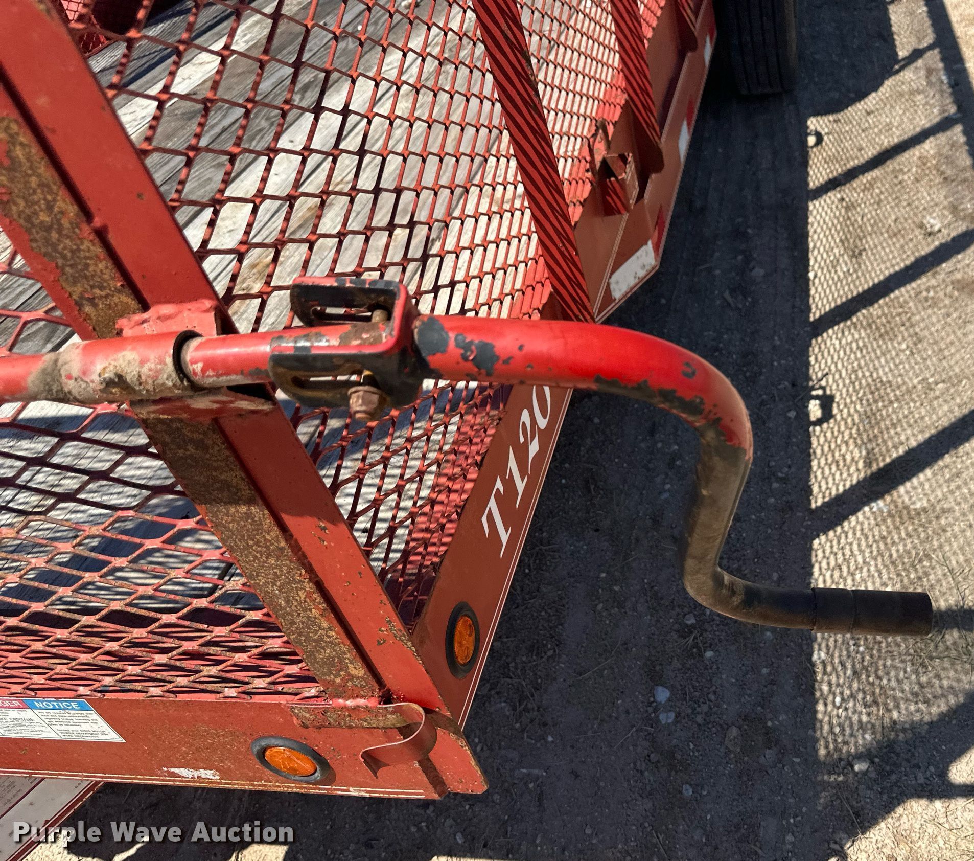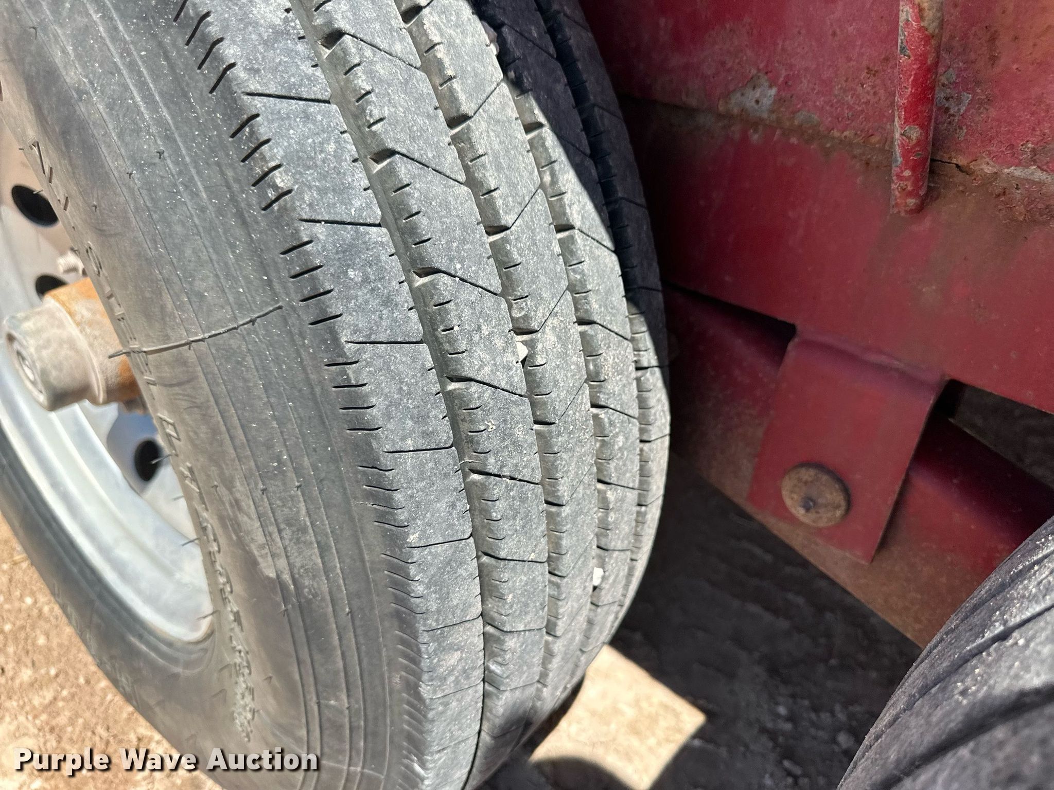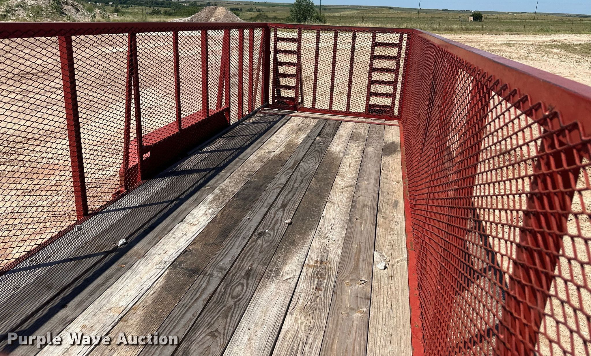 2014 Maxey utility trailer. VIN: 55DUT202XEM002729, Unit #: T120. Dimensions Overall: 24' L x 101" W, Deck: 20' L x 84" W, Side height: 48", Deck height: 28", Tail length: 24", Ramps: Manual Length: 51". Features Deck type: Wood. Chassis Ball hitch: 2 5/16", Landing gear: Single, Suspension: Spring, Brakes: Electric, Axles: Tandem, GVWR: 14,000 lbs, GAWR: 7,000 lbs. Tires Steel wheels, Size: LT235/85R16. Oklahoma title. Title distribution may be delayed up to 30 days from verification of funds. Evergreen Land and Cattle LLC. Shattuck, OK 73858