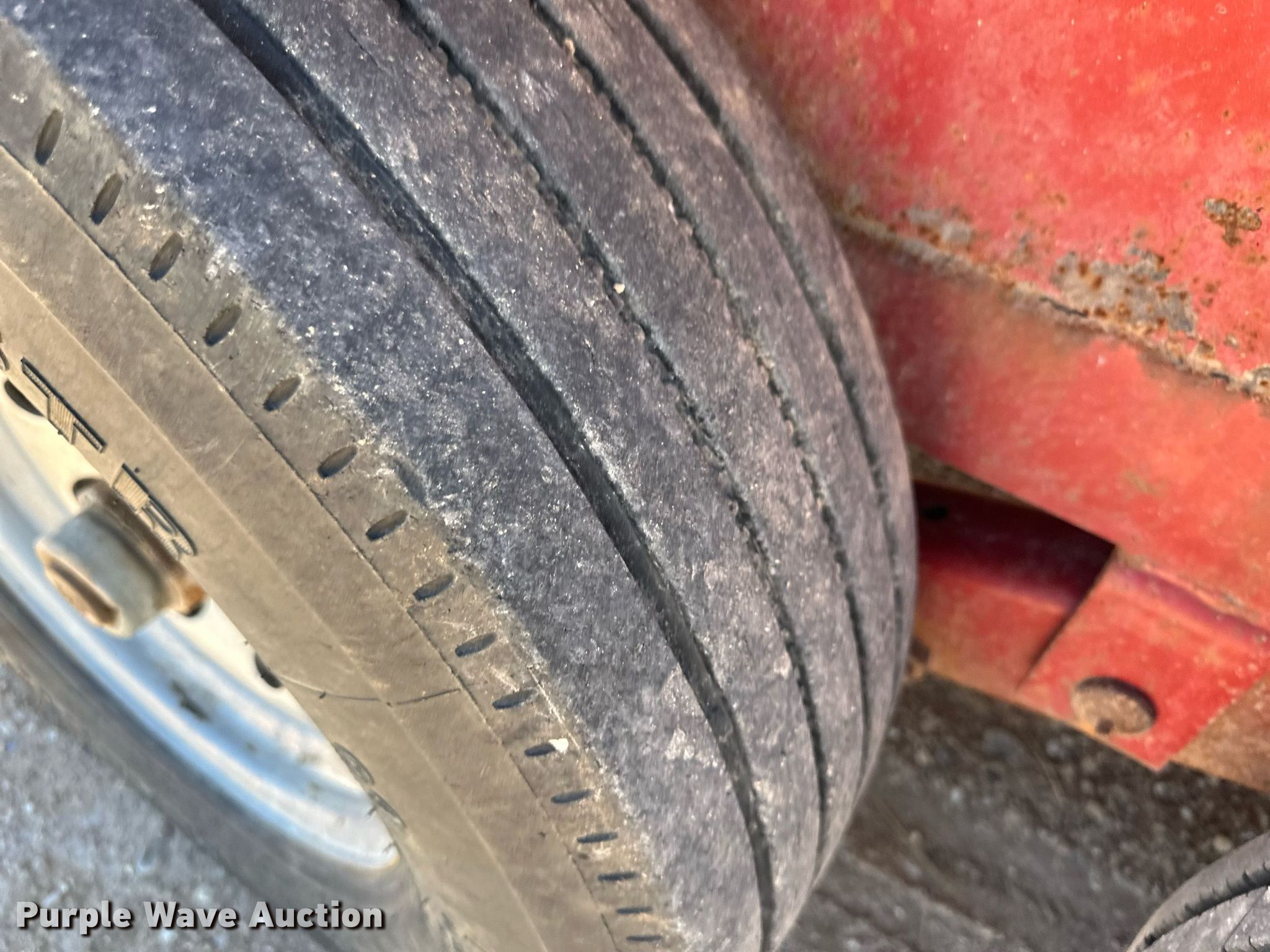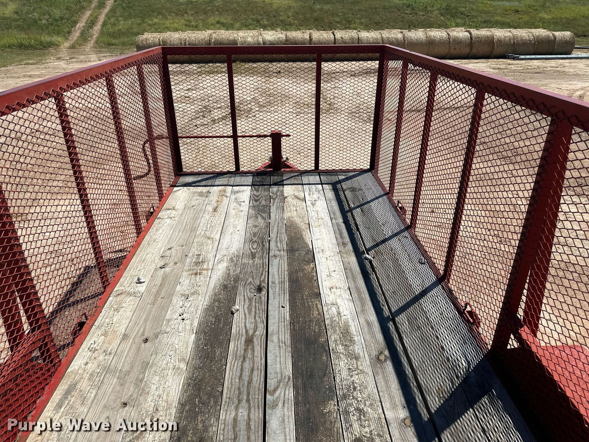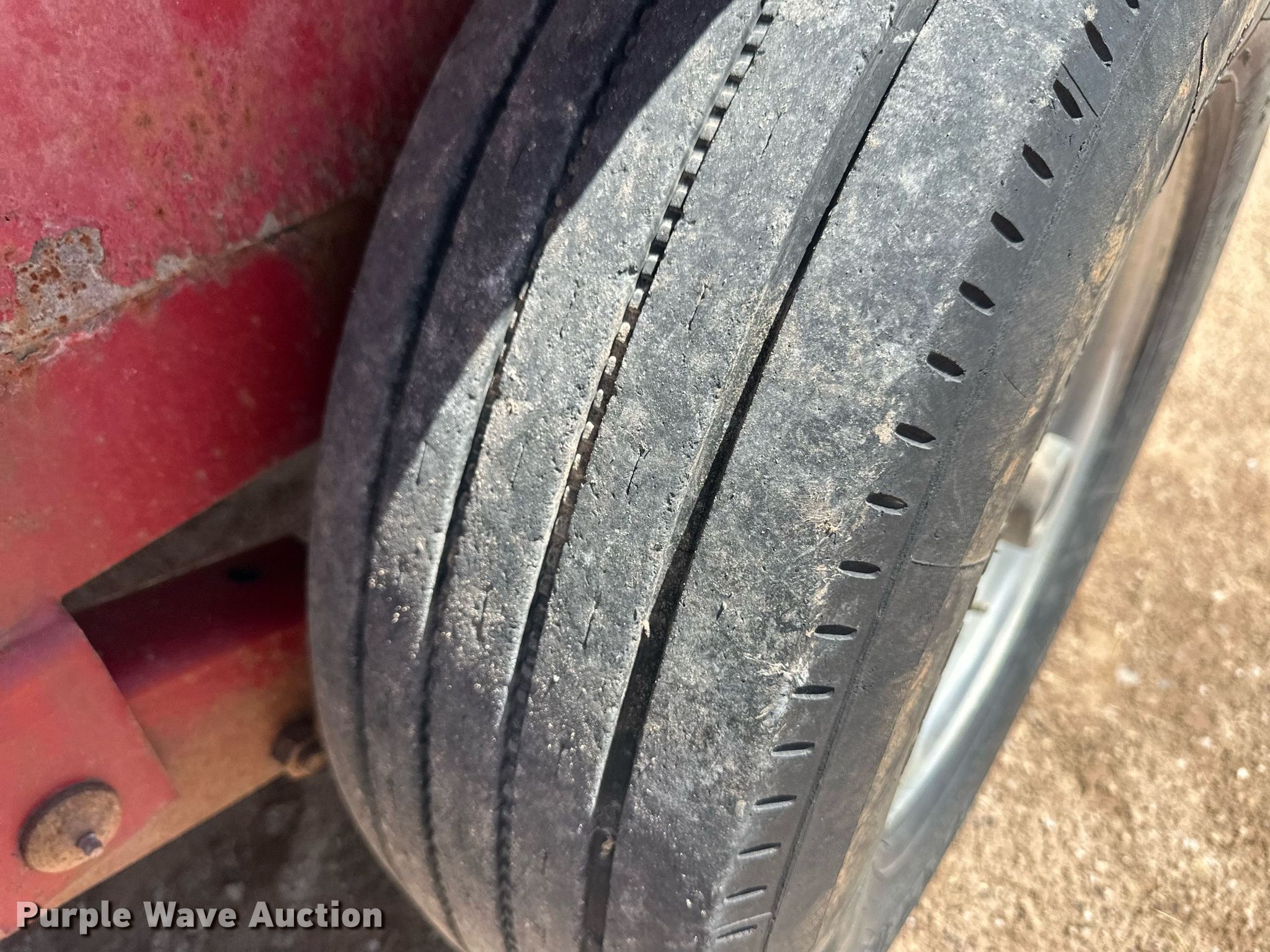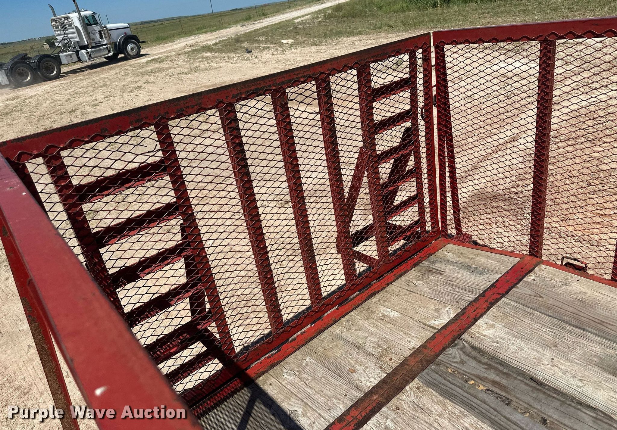2014 Maxey utility trailer. VIN: 55DUT202XEM002729, Unit #: T120. Dimensions Overall: 24' L x 101" W, Deck: 20' L x 84" W, Side height: 48", Deck height: 28", Tail length: 24", Ramps: Manual Length: 51". Features Deck type: Wood. Chassis Ball hitch: 2 5/16", Landing gear: Single, Suspension: Spring, Brakes: Electric, Axles: Tandem, GVWR: 14,000 lbs, GAWR: 7,000 lbs. Tires Steel wheels, Size: LT235/85R16. Oklahoma title. Title distribution may be delayed up to 30 days from verification of funds. Evergreen Land and Cattle LLC. Shattuck, OK 73858