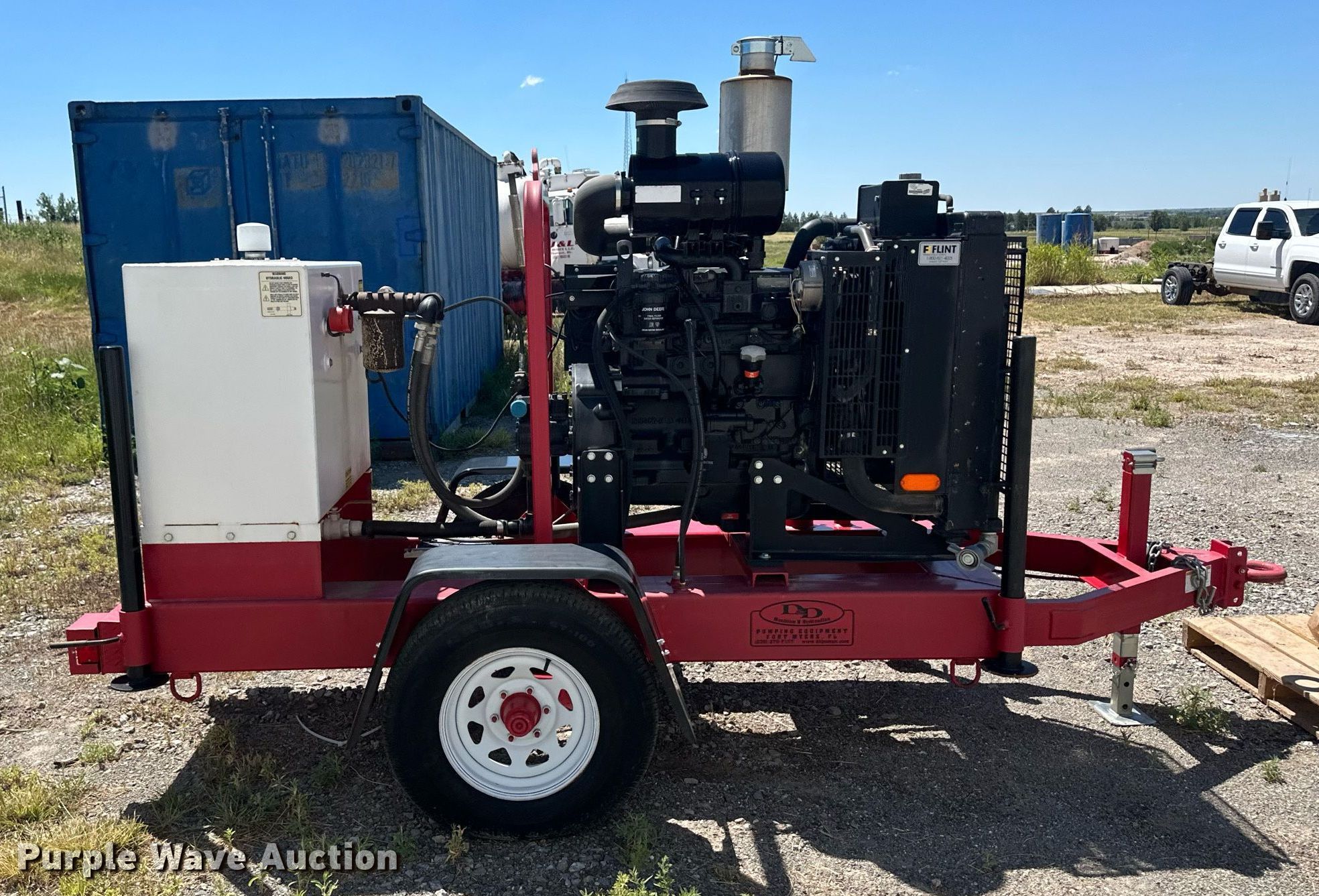 D&D power unit. Hours: 1 on meter, Serial: D1940, Displacement: 4.5L, Cylinders: 4, Fuel type: Diesel. Features Radiator, Fuel tank, 6" hydraulic lines. Trailer Hitch: Pintle, Axles: Single. Notes Dead battery. Evergreen Land and Cattle LLC. Shattuck, OK 73858