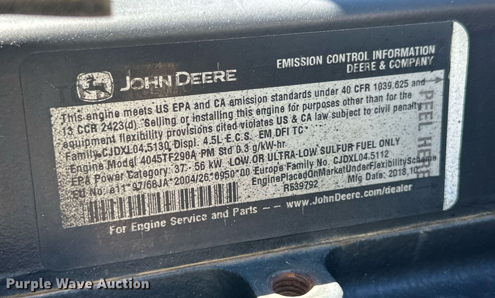 Purple Wave is selling a used Power Unit in Oklahoma. This item is a D&D power unit with the following: Hours: 1 on meter, Serial: D1940, Displacement: 4.5L, Cylinders: 4, Fuel type: Diesel